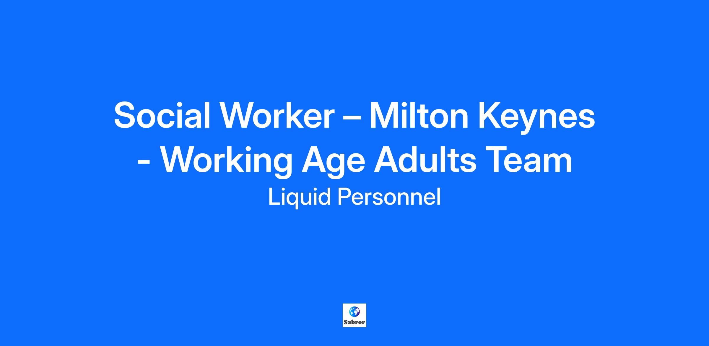 Job Title: Adults Community Social Worker – Working Age Adults Team Location: Milton Keynes Rate: Up to £35 per hour An exciting job role has recently become available at Milton Keynes. They are looking for a new member for their Working Age Adults Team. Responsibilities: Assess individuals in the community for care packages or support services. Collaborate with other professionals to create care plans. Provide support to adults with various needs, including physical disabilities, mental health issues, and learning disabilities. Engage in carers conversations. Manage safeguarding enquiries and ensure client safety. Participate in duty and duty back-up rota as required. Benefits: Flexible working available Long term contract Supportive team and management Progression opportunities 4 days in office, with 1 day working from home Qualifications and Experience: Social Work England registration Eligible to work in the UK Hold a full UK licence Post-qualified experience Degree level or equivalent in Social Work How to apply? If this is a job for you, feel free to click apply below or if you want to learn more about it, please contact 0345 241 9590. Why Liquid Personnel? New ‘Faster Pay’ service getting you paid more quickly Twice weekly payroll Free DBS and compliance service Access to exclusive roles that aren’t available from other agencies Free access to Liquid’s exclusive social work training and CPD portal Your own dedicated consultant with extensive social work knowledge Access to a wide selection of social work positions across the UK “Refer a Friend” bonus – get £500 for each social worker you refer who we successfully place* “Find your own job” bonus – get £250 for bringing your own position to us * Liquid Personnel is an equal opportunities employer. Liquid Personnel Ltd is acting as an Employment Business in relation to this vacancy. * Terms and conditions apply to our bonus schemes. Reasonable Adjustments: We are unable to support or accept applications from candidates who are residents within the Red or Amber list of the Code of practice for the international recruitment of health and social care personnel in England, based on the World Health Organisation (WHO) Workforce Support and Safeguard List. BH: 178115 GH: 22329