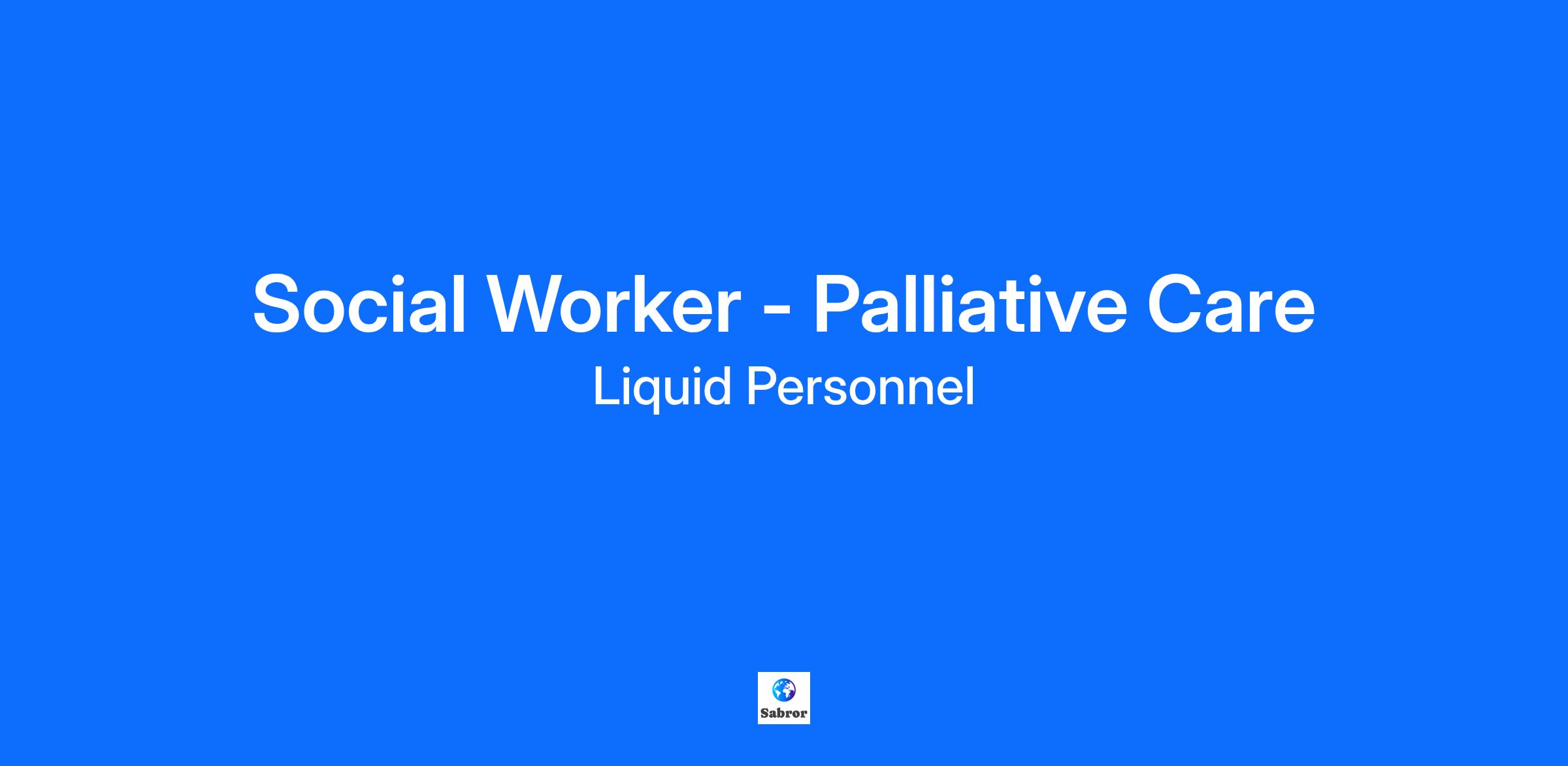 Job Title: Social Worker - Palliative Care Location: Calderdale Pay Rate: £35 per hour Job Description: Liquid Personnel is recruiting Social Worker for its client's Palliative Care Team at Calderdale. What will your responsibilities be? Holistic assessments and care planning: Work with individuals and families to assess emotional, social, and practical needs, ensuring care plans reflect dignity, comfort, and end-of-life wishes. Multi-disciplinary collaboration: Coordinate with healthcare professionals, hospices, and community services to deliver integrated support that addresses medical, psychological, and social aspects of palliative care. Advocacy and support for families: Provide guidance on benefits, housing, and care options, while offering emotional support to relatives during end-of-life care and bereavement. Benefits: Hybrid Work Initial 3 month contract with potential to extend Supportive and Friendly Team Qualifications & Experience: To be successful in this role you must have, Social Work England registration Eligible to work in the UK Hold a full UK driving licence Post-qualified experience Degree level or equivalent in Social Work Why Liquid Personnel? Free DBS and compliance service Twice weekly payroll and ‘Faster Pay’ service, getting you paid more quickly Access to exclusive roles that aren’t available from other agencies Free access to Liquid’s exclusive social work training and CPD portal Your own dedicated consultant with extensive social work knowledge Access to a wide selection of social work positions across the UK “Refer a Friend” bonus – get £500 for each social worker you refer who we successfully place* “Find your own job” bonus – get £250 for bringing your own position to us * Liquid Personnel is an equal opportunities employer. Liquid Personnel Ltd is acting as an Employment Business in relation to this vacancy. * Terms and conditions apply to our bonus schemes. Reasonable Adjustments: If you consider yourself to have a disability or require any reasonable adjustment during the recruitment process or within the workplace, please highlight this at the earliest opportunity by contacting our team. With this information, we will provide appropriate support to you throughout the process and into your work placement. We are unable to support or accept applications from candidates who are residents within the Red or Amber list of the Code of practice for the international recruitment of health and social care personnel in England, based on the World Health Organisation (WHO) Workforce Support and Safeguard List. BH - 195364 GH - 33676
