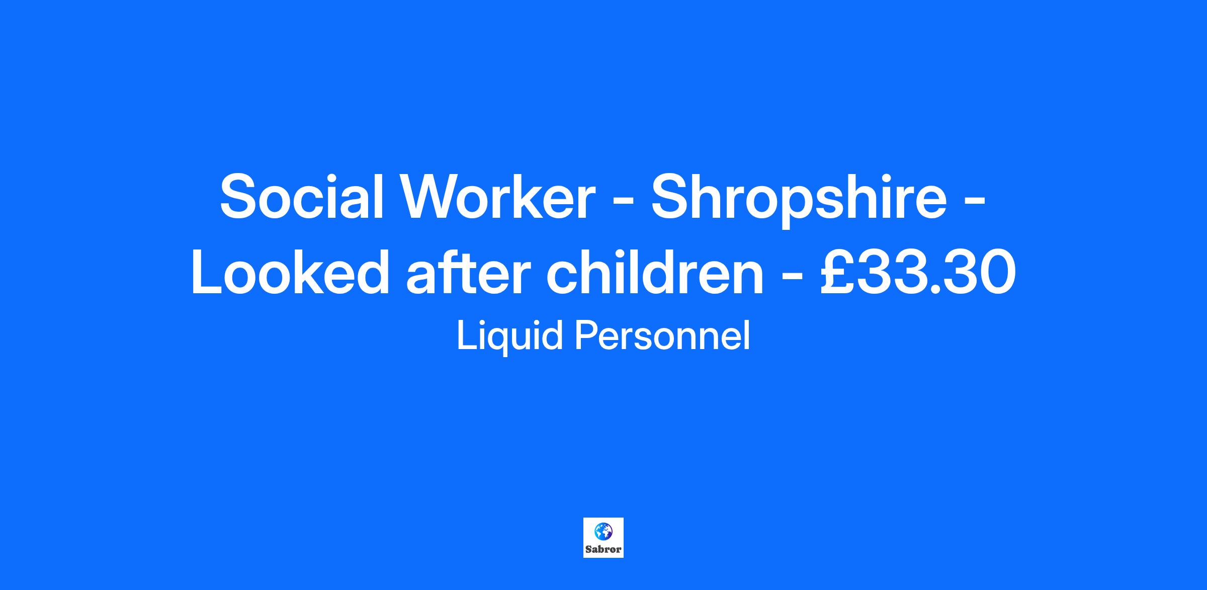 Job Title: Qualified Social Worker – Shropshire – Looked after Children Team Location: Shropshire Rate: £33.30 Liquid Personnel is currently recruiting registered and experienced Qualified Social Workers to join a busy team at a Shropshire based Looked after Children Team. What will your responsibilities be? In this role, you will be responsible for completing Child in Need and Child Protection work, conducting risk assessments, and creating Child in Need plans. You will also complete Child and Family assessments and have experience working with Section 47 enquiries. You will promote and model effective working arrangements with Mental Health services and other voluntary and community partners to support Care Experienced young people. You will develop a good understanding of evidence-based practice and integrate models of best practice into day-to-day service delivery. Participation in clinical supervision and clinical risk assessing, as well as liaising with mental health services across different boroughs and areas, will be essential. Additionally, you will bring together, develop, and regularly review a multi-agency Pathway Plan with the young person, proactively working with them to achieve their targets. Benefits include: Flexible working Stable management Supportive staff Regular supervision Qualifications and Experiences: To be eligible for this role, you must have Social Work England registration and be eligible to work in the UK. Additionally, you need to hold a full UK driving licence and possess post-qualified experience. A degree or equivalent qualification in Social Work is also required. How to apply? If this is a job for you, feel free to click apply below or if you want to learn more about it, please contact 0345 241 9590. Why Liquid Personnel? New ‘Faster Pay’ service getting you paid more quickly Twice weekly payroll Free DBS and compliance service Access to exclusive roles that aren’t available from other agencies Free access to Liquid’s exclusive social work training and CPD portal Your own dedicated consultant with extensive social work knowledge Access to a wide selection of social work positions across the UK “Refer a Friend” bonus – get £500 for each social worker you refer who we successfully place* “Find your own job” bonus – get £250 for bringing your own position to us * Liquid Personnel is an equal opportunities employer. Liquid Personnel Ltd is acting as an Employment Business in relation to this vacancy. *Terms and conditions apply to our bonus schemes. Reasonable Adjustments: If you consider yourself to have a disability or require any reasonable adjustment during the recruitment process or within the workplace, please highlight this at the earliest opportunity by contacting our team. With this information, we will provide appropriate support to you throughout the process and into your work placement. We are unable to support or accept applications from candidates who are residents within the Red or Amber list of the Code of practice for the international recruitment of health and social care personnel in England, based on the World Health Organisation (WHO) Workforce Support and Safeguard List GH - 25367 BH - 185724
