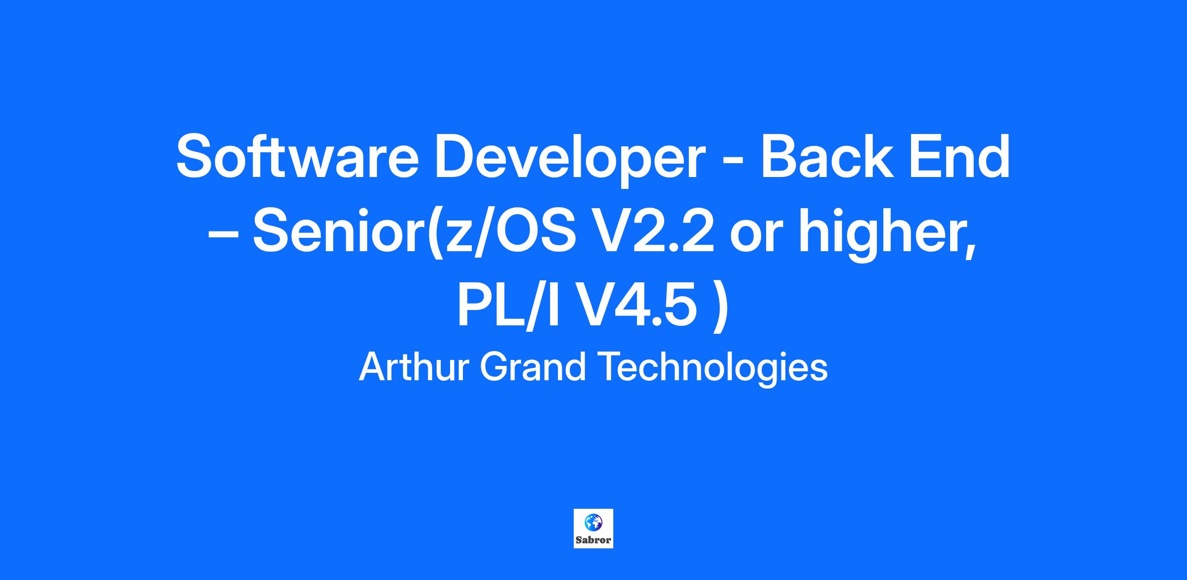 Position: Software Developer - Back End – Senior(z/OS V2.2 or higher, PL/I V4.5 )