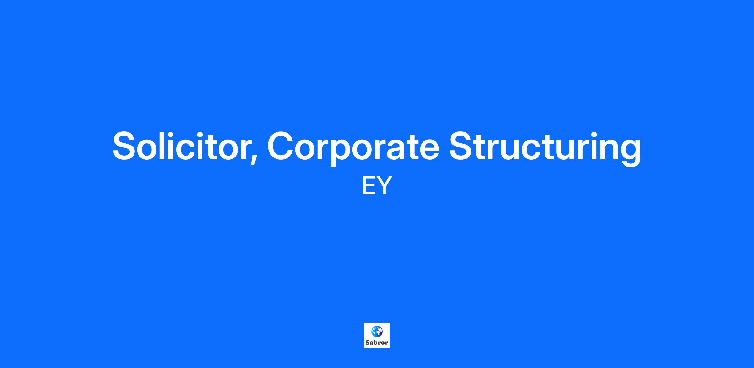 At EY, we’re all in to shape your future with confidence. We’ll help you succeed in a globally connected powerhouse of diverse teams and take your career wherever you want it to go. Join EY and help to build a better working world. Solicitor - Corporate StructuringThe OpportunityWe are looking for corporate lawyers interested in joining a Tier 1-accredited corporate structuring law team in the UK, based in London. This is a fast-growth business with a varied and dynamic range of work, a strong international dimension and acting for some of the largest household-name groups in the world.To qualify for the role, the requirements are: English law-qualified corporate solicitor with between circa 2-8 years PQE experience, some of which should have been gained in the UK in a private practice law business Strong technical, research and drafting skills, with a good eye for detail A genuine interest in problem-solving for clients and working in a multi-disciplinary environment alongside both lawyers and non-lawyers on a day-to-day basis Effective communication skills and ability to work collaboratively Skills And Attributes For Success Good working knowledge of company law in the UK, particularly relating to share capital, distributions, governance, fiduciary duties, intra-group transactions and legal entity rationalisations Knowledge of or interest in deal-related structuring such as company law issues concerning carve-outs or post-deal integration Good experience in co-ordinating advice and legal documentation provided by advisers in multiple jurisdictions Effective time management and ability to remain calm when under pressure to meet deadlines An innovative mindset (supporting the use of technology to improve service delivery) Business development skills, able to build productive peer group business relationships Enthusiastic team player - someone who enjoys working with others Ability to solve problems creatively and pragmatically Good commercial awareness of the wider context in which legal advice is given Ideally, you’ll also have Project management skills, planning and prioritising work, meeting deadlines and monitoring own and team budget and time Ability to get up to speed quickly on technical and often challenging areas of law and be keen to continue developing legal skills and engage in new areas of work A proven ability to work with a wide range of stakeholders An inclusive and collaborative working style What We Look ForThis role is suitable for candidates who have worked in established law firms or in-house legal departments and who are looking to progress their career by being part of a fast-growing, Tier 1 ranked specialist team in a global organisation. We are looking for talented and motivated people, who want to continue to develop themselves and others when they join the firm. Ours is a diverse, dynamic and collaborative culture and this opportunity offers a chance to help play an important role in the next phase of our ambitious growth story.What Working At EY OffersWe offer a competitive remuneration package where you’ll be rewarded for your individual and team performance. Our comprehensive Total Rewards package includes support for flexible working and career development, and with FlexEY you can select benefits that suit your needs, covering holidays, health and well-being, insurance, savings and a wide range of discounts, offers and promotions. Plus, we offer: Continuous learning: You’ll develop the mindset and skills to navigate whatever comes next. Success as defined by you: We’ll provide the tools and flexibility, so you can make a meaningful impact, your way. Transformative leadership: We’ll give you the insights, coaching and confidence to be the leader the world needs. Diverse and inclusive culture: You’ll be embraced for who you are and empowered to use your voice to help others find theirs. If you can demonstrate that you meet the criteria above, please contact us as soon as possible. The exceptional EY experience. It’s yours to build. Please note: Prior to finalising your application, you will be asked to provide personal information across several dimensions of diversity and inclusiveness. The information you provide is kept entirely confidential and will not be used to evaluate your candidacy. We collect this data to help us analyse our recruitment process holistically and implement actions that promote diversity and inclusiveness. While optional, we encourage you to provide this information to hold us accountable towards our goal of building a better working world. Read more about our commitment to diversity& inclusiveness here . We ask because it matters! EY exists to build a better working world, helping to create long-term value for clients, people and society and build trust in the capital markets. Enabled by data and technology, diverse EY teams in over 150 countries provide trust through assurance and help clients grow, transform and operate. Working across assurance, consulting, law, strategy, tax and transactions, EY teams ask better questions to find new answers for the complex issues facing our world today. EY | Building a better working world EY is building a better working world by creating new value for clients, people, society and the planet, while building trust in capital markets. Enabled by data, AI and advanced technology, EY teams help clients shape the future with confidence and develop answers for the most pressing issues of today and tomorrow. EY teams work across a full spectrum of services in assurance, consulting, tax, strategy and transactions. Fueled by sector insights, a globally connected, multi-disciplinary network and diverse ecosystem partners, EY teams can provide services in more than 150 countries and territories.