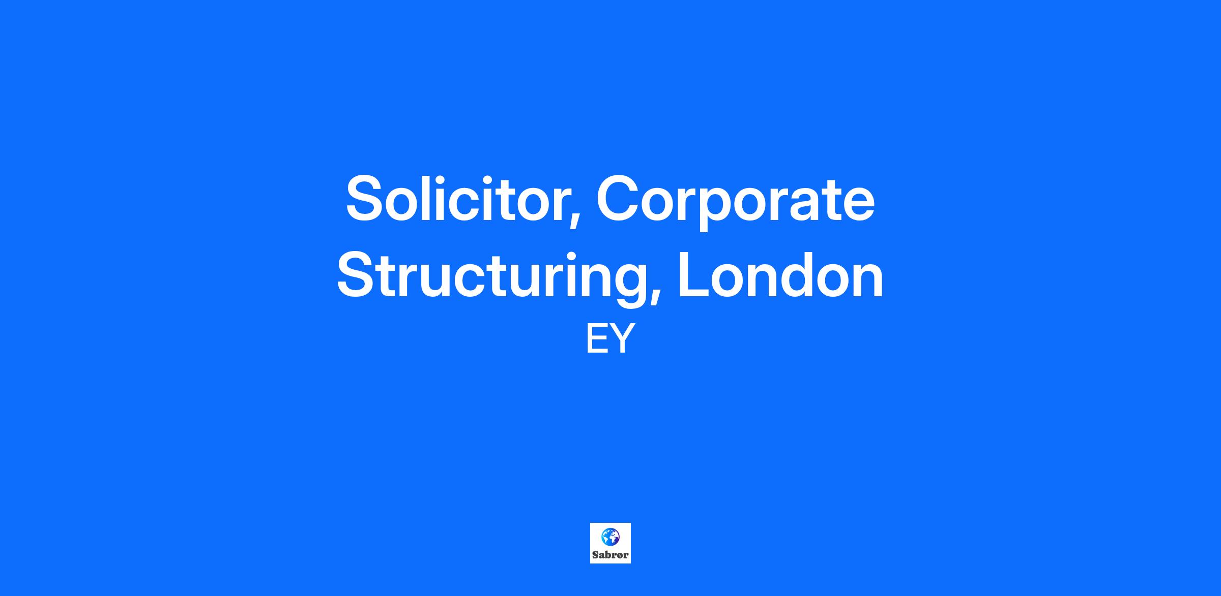 At EY, we’re all in to shape your future with confidence.  We’ll help you succeed in a globally connected powerhouse of diverse teams and take your career wherever you want it to go.  Join EY and help to build a better working world.    Solicitor - Corporate StructuringThe OpportunityWe are looking for corporate lawyers interested in joining a Tier 1-accredited corporate structuring law team in the UK, based in London. This is a fast-growth business with a varied and dynamic range of work, a strong international dimension and acting for some of the largest household-name groups in the world.To qualify for the role, the requirements are:   English law-qualified corporate solicitor with between circa 2-8 years PQE experience, some of which should have been gained in the UK in a private practice law business Strong technical, research and drafting skills, with a good eye for detail A genuine interest in problem-solving for clients and working in a multi-disciplinary environment alongside both lawyers and non-lawyers on a day-to-day basis Effective communication skills and ability to work collaboratively   Skills And Attributes For Success   Good working knowledge of company law in the UK, particularly relating to share capital, distributions, governance, fiduciary duties, intra-group transactions and legal entity rationalisations Knowledge of or interest in deal-related structuring such as company law issues concerning carve-outs or post-deal integration Good experience in co-ordinating advice and legal documentation provided by advisers in multiple jurisdictions Effective time management and ability to remain calm when under pressure to meet deadlines An innovative mindset (supporting the use of technology to improve service delivery) Business development skills, able to build productive peer group business relationships Enthusiastic team player - someone who enjoys working with others Ability to solve problems creatively and pragmatically Good commercial awareness of the wider context in which legal advice is given   Ideally, you’ll also have Project management skills, planning and prioritising work, meeting deadlines and monitoring own and team budget and time Ability to get up to speed quickly on technical and often challenging areas of law and be keen to continue developing legal skills and engage in new areas of work A proven ability to work with a wide range of stakeholders An inclusive and collaborative working style   What We Look ForThis role is suitable for candidates who have worked in established law firms or in-house legal departments and who are looking to progress their career by being part of a fast-growing, Tier 1 ranked specialist team in a global organisation. We are looking for talented and motivated people, who want to continue to develop themselves and others when they join the firm. Ours is a diverse, dynamic and collaborative culture and this opportunity offers a chance to help play an important role in the next phase of our ambitious growth story.What Working At EY OffersWe offer a competitive remuneration package where you’ll be rewarded for your individual and team performance. Our comprehensive Total Rewards package includes support for flexible working and career development, and with FlexEY you can select benefits that suit your needs, covering holidays, health and well-being, insurance, savings and a wide range of discounts, offers and promotions. Plus, we offer:   Continuous learning: You’ll develop the mindset and skills to navigate whatever comes next. Success as defined by you: We’ll provide the tools and flexibility, so you can make a meaningful impact, your way. Transformative leadership: We’ll give you the insights, coaching and confidence to be the leader the world needs. Diverse and inclusive culture: You’ll be embraced for who you are and empowered to use your voice to help others find theirs. If you can demonstrate that you meet the criteria above, please contact us as soon as possible.   The exceptional EY experience. It’s yours to build.   Please note:   Prior to finalising your application, you will be asked to provide personal information across several dimensions of diversity and inclusiveness. The information you provide is kept entirely confidential and will not be used to evaluate your candidacy. We collect this data to help us analyse our recruitment process holistically and implement actions that promote diversity and inclusiveness. While optional, we encourage you to provide this information to hold us accountable towards our goal of building a better working world. Read more about our commitment to diversity& inclusiveness here . We ask because it matters!   EY exists to build a better working world, helping to create long-term value for clients, people and society and build trust in the capital markets.   Enabled by data and technology, diverse EY teams in over 150 countries provide trust through assurance and help clients grow, transform and operate.   Working across assurance, consulting, law, strategy, tax and transactions, EY teams ask better questions to find new answers for the complex issues facing our world today.     EY | Building a better working world EY is building a better working world by creating new value for clients, people, society and the planet, while building trust in capital markets. Enabled by data, AI and advanced technology, EY teams help clients shape the future with confidence and develop answers for the most pressing issues of today and tomorrow. EY teams work across a full spectrum of services in assurance, consulting, tax, strategy and transactions. Fueled by sector insights, a globally connected, multi-disciplinary network and diverse ecosystem partners, EY teams can provide services in more than 150 countries and territories.