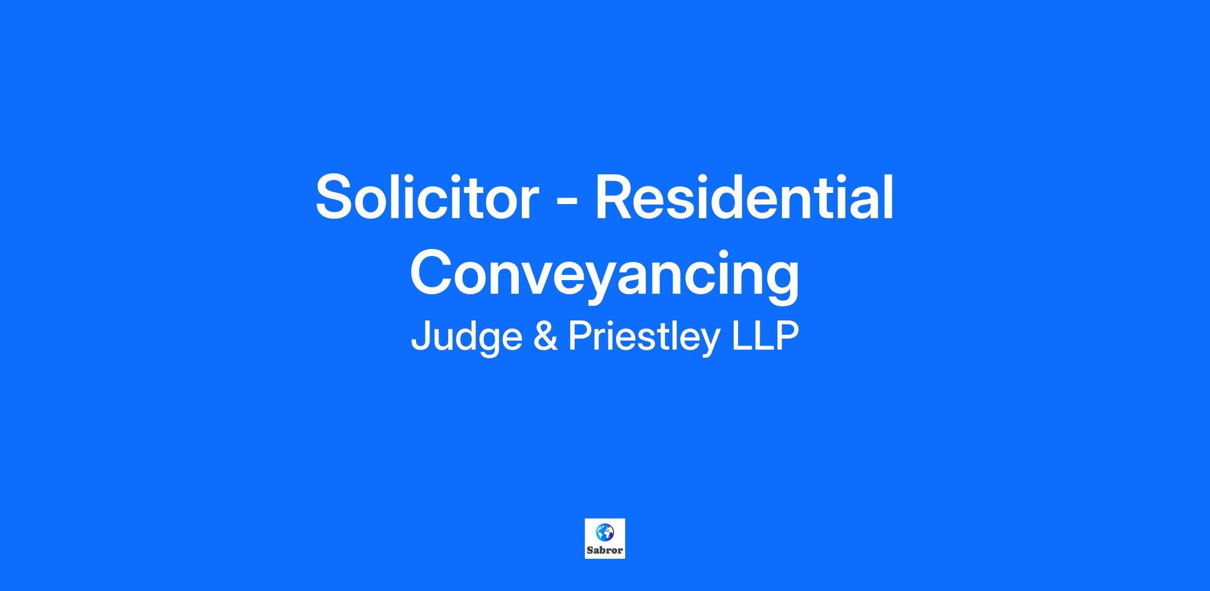 Solicitor - Residential Conveyancing Department: Conveyancing Employment Type: Permanent - Full Time Location: Bromley Description Exciting Opportunity at Judge and Priestley Solicitors LLP Our Values Expert -We will invest in the continual development of our people, team and also technology to ensure that we continue to be experts in all that we do. Professional- We are accountable to our clients, colleagues, and all those with whom we engage to ensure that we are open, transparent and act with integrity in all that we do. Friendly - Whilst at all times being professional, we will ensure that we are approachable and seek to put those with whom we deal, at ease in their dealings with us. Are you an experienced Residential Conveyancing Solicitor with exceptional customer service and interpersonal skills? Are you a hands on/roll your sleeves up individual who loves being part of a busy and dynamic team? Then this could be the job for you! Key Responsibilities Our close knit, diverse and friendly Residential Conveyancing Team are looking for a highly skilled solicitor who has a special touch with people. You will be joining a wonderful team that has some 85 years PQE! You will be using your experience to work with the team to support the conveyancing team and manage your own caseload. You will use your high level of interpersonal skills and knowledge to provide clients with appropriate and up-to-date legal advice for Sale and Purchase of freehold and leasehold property and Landlord and Tenant transactions including negotiated leases. This is an exciting development opportunity to work closely with a very well respected and experienced Partner in a dynamic client focussed team. *Please see attached the job description for further information. Skills, Knowledge and Expertise Experience: Minimum 2 years’ experience in a similar field (or ability to demonstrate equivalent skills) Experience of delivering excellent customer care in a legal environment Qualifications To be qualified and eligible to practice as a solicitor in England Benefits Solicitor Bonus Up to 10% Solicitor Bonus Profit Share Scheme We want all our employees to have a share in the success of the firm. This non contractual bonus is paid in June based on the profit from the previous financial year. Private Healthcare You’ll have access to private medical insurance. Medicash You will be enrolled into our scheme which provides cashback on a range of health services. Pension All employees are entitled to join our auto enrolment pension scheme. You will be enrolled in the pension after 3 months of employment dependent on age and salary. Generous & Flexible Annual leave We have a minimum of 25 days across the firm and you will receive an additional day’s holiday after every completed year of service to a total maximum of 30 days. You are also able to carry over up top 5 days of unused holiday entitlement. Long Service Awards We recognise long service through special lunches, extra time off and a monetary reward. Birthday off If your birthday falls on a working day, you can have that day off as an extra day’s leave. Maternity, Paternity and Adoption Leave We include family friendly policies when after two years’ service you will be eligible for our enhanced maternity, paternity and adoption leave. Death in Service Insurance All employees will be entitled to 2 x salary. Volunteer Sabbatical We offer our employees up to 2 days paid leave a year to contribute towards our CSR efforts. Worklife Central This multi-format programme covers four main topic areas: Careers, Families, Wellbeing and Inclusion. Support and resources are available through a wide range of online live talks, support groups and workshops, long and short-form videos accessible on demand and a library of articles, blogs and podcasts. Legal Fees After one years’ service, you will be entitled to a contribution towards legal fees. Recruitment Incentive We offer up to £2,000 (dependent on level of seniority) referral bonus to say thank you for introducing a job candidate that becomes employed by J&P and passes their probation. Season Ticket Loan After probation, you are entitled to apply for an interest free advance for a season ticket to use public transport to reach your place of work. Cycle to Work Scheme Allows you to make a saving of 25% - 39% on the retail price of a bike.