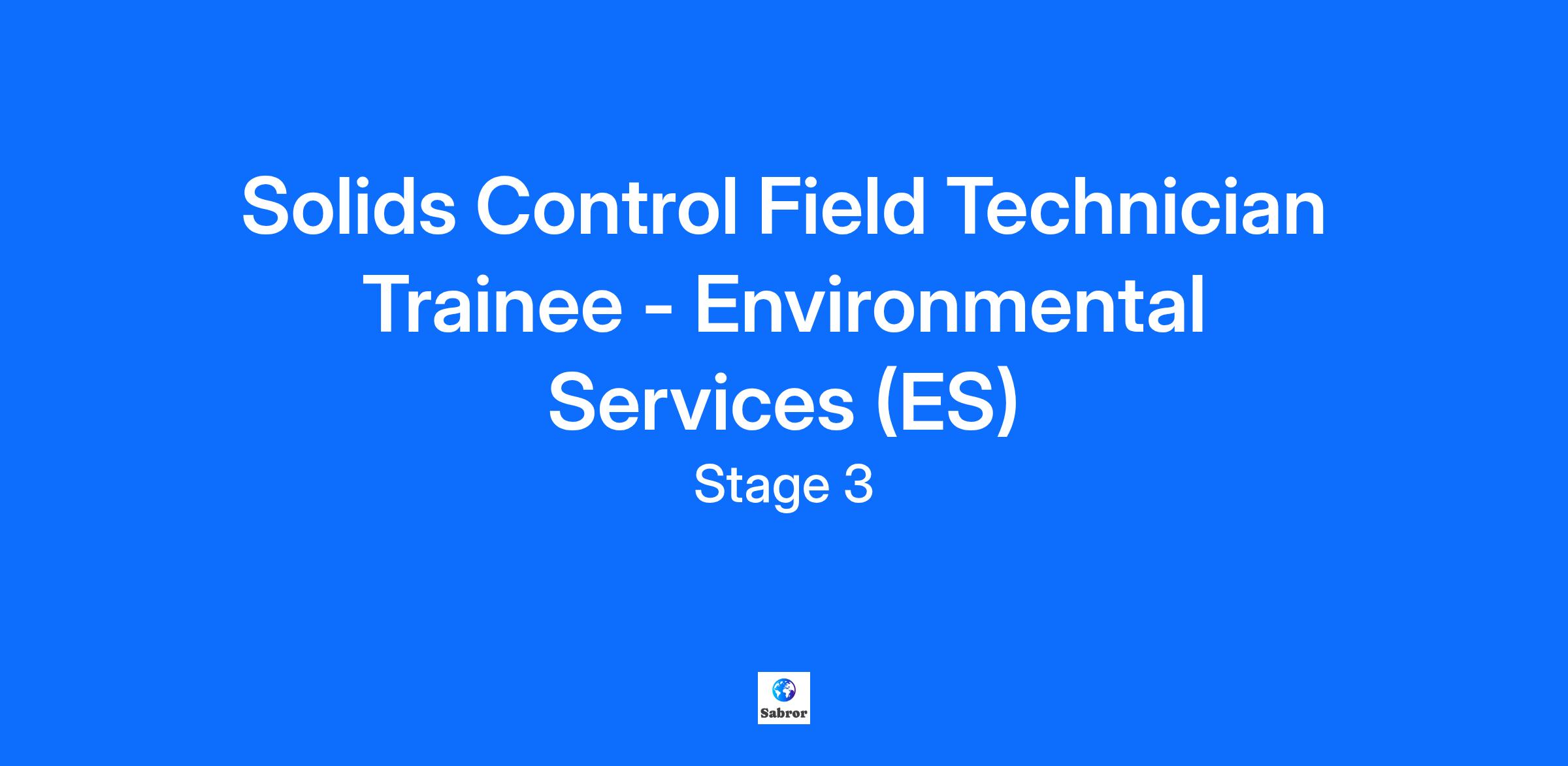 The Solids Control Field Technician Trainee - Environmental Services, will work alongside other Environmental Services Field Technician’s, will report directly to a rotating Field Leader position.