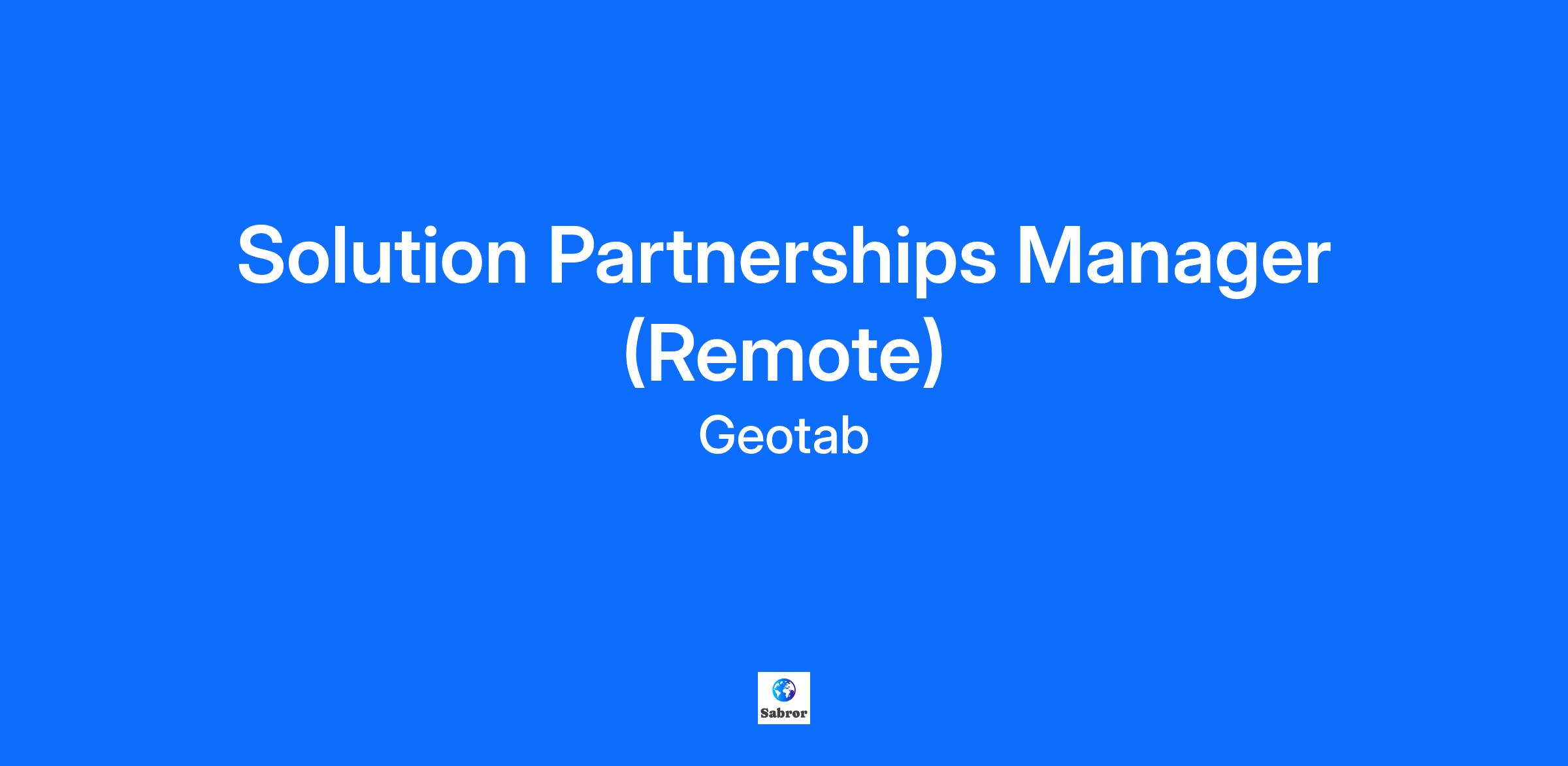 Who we are: Geotab ® is a global leader in IoT and connected transportation and certified “Great Place to Work™.” We are a company of diverse and talented individuals who work together to help businesses grow and succeed, and increase the safety and sustainability of our communities. Geotab is advancing security, connecting commercial vehicles to the internet and providing web-based analytics to help customers better manage their fleets. Geotab’s open platform and Geotab Marketplace ®, offering hundreds of third-party solution options, allows both small and large businesses to automate operations by integrating vehicle data with their other data assets. Processing billions of data points a day, Geotab leverages data analytics and machine learning to improve productivity, optimize fleets through the reduction of fuel consumption, enhance driver safety and achieve strong compliance to regulatory changes. Our team is growing and we’re looking for people who follow their passion, think differently and want to make an impact. Ours is a fast paced, ever changing environment. Geotabbers accept that challenge and are willing to take on new tasks and activities - ones that may not always be described in the initial job description. Join us for a fulfilling career with opportunities to innovate, great benefits, and our fun and inclusive work culture. Reach your full potential with Geotab. To see what it’s like to be a Geotabber, check out our blog and follow us @InsideGeotab on Instagram. Join our talent network to learn more about job opportunities and company news. Who you are: We are always looking for amazing talent who can contribute to our growth and deliver results! Geotab is seeking a Solution Partnerships Manager, a pivotal role responsible for supporting and expanding relationships with existing revenue-generating partners.This position serves as the centralized point at Geotab for managing key integration partners, OEM partners, and platform partners. The primary responsibility of the Solution Partnerships Manager is to drive revenue growth by providing account management services and spearheading business development initiatives. If you love technology, and are keen to join an industry leader — we would love to hear from you! What you'll do: The Solution Partnerships Manager will manage 3rd party partners, ensuring that these relationships are not only maintained but also expanded to maximize revenue opportunities. The Manager will develop and implement comprehensive strategic plans tailored to each partner, aligning these plans with Geotab's overall business objectives. This involves collaborating closely with internal teams to ensure seamless communication and coordination, as well as identifying and pursuing new partnership opportunities to drive business development. How you'll make an impact: Manage each of the assigned Partners from an account management perspective. Ensure each Partner is successful in navigating across internal Geotab departments and distribution channels. Develop an annual Business Plan with the Partner and own delivery of having quarterly reviews with each partner in conjunction with other stakeholders. Proactively identify and recommend improved integrations and business opportunities. Own, nurture, and fully own the relationships with each level within the partner. Work with your manager to create measurable target metrics and measurable sales goals related to assigned partners. Master internal processes to help your partner navigate the internal Geotab systems and teams. Be the internal champion for your partners within Geotab and with the resellers. Work in conjunction with other internal teams that interact with your partners in managing the overarching relationship with the partner. Work with the Partner to develop and improve training and marketing materials targeting PAMs, resellers and customers. Support Geotab global strategic initiatives. What you'll bring to the role: 5- 8 years of experience in Sales, Partner Management, Business Development, Account Management, or a related field. Bachelor’s Degree in Business, Commerce, Engineering, or a related field is highly valued. Equivalent combination of education and/or work experience in related field may be substituted. Strong understanding of distribution channels, partner ecosystems, fleet/telematics trends, and competitor landscape. Skilled in positioning products, tailoring value propositions, and applying sales/marketing strategies. Anticipate market shifts, analyze root causes, and deliver practical solutions aligned with business goals. Build trusted partnerships, collaborate cross-functionally, and communicate effectively through presentations, negotiations, and training. Manage initiatives, resources, and timelines efficiently while thriving in dynamic environments. Proven ability to persuade, shape direction, and align stakeholders on strategy. Ability to travel up to 20% of the time. If you got this far, we hope you're feeling excited about this role! Even if you don't feel you meet every single requirement, we still encourage you to apply. Please note: Geotab does not accept agency resumes and is not responsible for any fees related to unsolicited resumes. Please do not forward resumes to Geotab employees. Why job seekers choose Geotab: Flex working arrangements Home office reimbursement program Baby bonus & parental leave top up program Online learning and networking opportunities Electric vehicle purchase incentive program Competitive medical and dental benefits Retirement savings program *The above are offered to full-time permanent employees only How we work: At Geotab, we have adopted a flexible hybrid working model in that we have systems, functions, programs and policies in place to support both in-person and virtual work. However, you are welcomed and encouraged to come into our beautiful, safe, clean offices as often as you like. When working from home, you are r