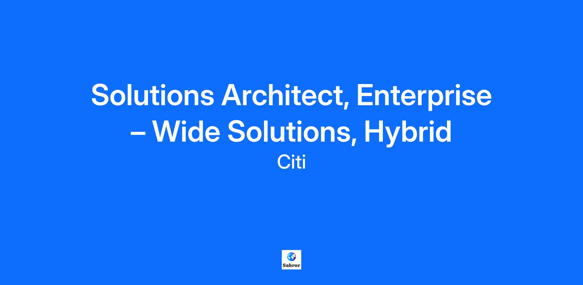 The Solutions Architect is a senior level position responsible for leading variety of architectural and engineering activities including the analysis of functional requirements, solutions design, evaluation of different options and presenting comparative analysis along with recommendation to senior stakeholders . You will apply in-depth domain knowledge of financial services to grasp all facets of the multiple dimensional business problems and develop solution options. You are a results-oriented, innovative and motivated individual who pursues opportunities to improve efficiency, enhance controls and extend scalability through well thought through system designs. You will be joining a team of experienced solutions, business, technical, and data architects designing enterprise-wide solutions for critical business needs. Your key stakeholders will be operations teams, product teams and application development teams from different parts of the organization. Your stakeholders will be based globally operating in different time-zones. Responsibilities: Develop solution design options for enterprise wide initiatives, analyze pros and cons of different options and come up with a recommendation. Serve as a technology subject matter expert for internal and external stakeholders and provide direction for all firm mandated controls and compliance initiatives, all projects within the group and in creating a technology domain roadmap Evaluates and tests potential architecture solution designs to ensure they meet functional and non-functional requirements Ensure that all integration of functions meet business goals Define necessary system enhancements to deploy new products and process enhancements Identify problem causality, business impact and root causes Exhibit knowledge of how own specialty area contributes to the business and apply knowledge of competitors, products and services Advise or mentor junior team members Impact the solution design by influencing decisions through advice, counsel or facilitating services Appropriately assess risk when business decisions are made, demonstrating particular consideration for the firm's reputation and safeguarding Citigroup, its clients and assets, by driving compliance with applicable laws, rules and regulations, adhering to Policy, applying sound ethical judgment regarding personal behavior, conduct and business practices, and escalating, managing and reporting control issues with transparency. Education and Experience: Degree / post graduate degree, preferably in computer science, computer engineering or business / management 10-15 years of relevant experience in an engineering and architectural role in Cash Management, Intra-day Liquidity, Payments, Financial Ledger, Regulatory reporting areas in Financial Services Experience working on large technology projects using industry-standard delivery methodologies (e.g., Agile/Scrum/Kanban) Experience working in enterprise architect and technology strategy roles Ability to develop working relationships Management and prioritization skills Strong decision making, forward thinking and creative problem-solving skills to anticipate and respond quickly to technological/market influences Consistently demonstrates clear and concise written and verbal communication Comprehensive knowledge of design metrics, analytics tools, benchmarking activities and related reporting to identify best practices Demonstrated analytic/diagnostic skills Ability to work independently, multi-task, and take ownership of various parts of a project or initiative Ability to work under pressure and manage to tight deadlines or unexpected changes in requirements ------------------------------------------------------ Job Family Group: Technology ------------------------------------------------------ Job Family: Systems & Engineering ------------------------------------------------------ Time Type: Full time ------------------------------------------------------ Citi is an equal opportunity employer, and qualified candidates will receive consideration without regard to their race, color, religion, sex, sexual orientation, gender identity, national origin, disability, status as a protected veteran, or any other characteristic protected by law. If you are a person with a disability and need a reasonable accommodation to use our search tools and/or apply for a career opportunity review Accessibility at Citi. View Citi’s EEO Policy Statement and the Know Your Rights poster. Click here to learn more about careers at Citi.