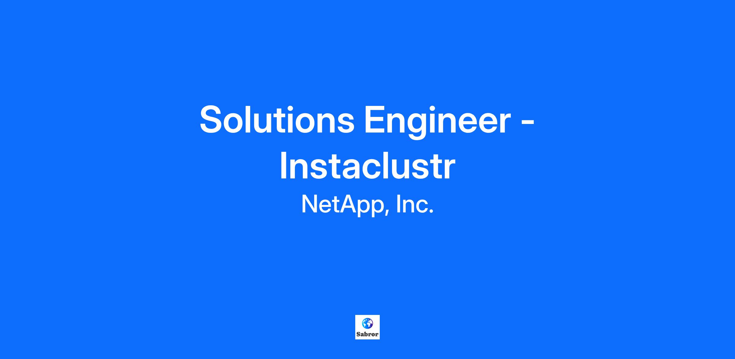 Job Summary An Instaclustr Solutions Engineer at NetApp leads the technical strategy for greenfield and installed base accounts. Working in tight collaboration with Sales colleagues, SEs align technical and service capabilities to customer needs and articulate how companies will benefit from partnering with NetApp. They also help orchestrate a team selling environment, pulling in SMEs when appropriate.SEs are usually curious people who like to learn about other companies and people and help them solve challenges with technology.Job Requirements Find and support opportunities in new and existing customers in close collaboration with Sales Translate customer business needs into technical solutions based on Instaclustr offerings, leveraging broad understanding of the competitive and technology landscape Partner with SMEs, Sales, Customer Success and other groups to create comprehensive solutions Develop and own key stakeholder relationships within the customer and partner communities Conduct demonstrations and lead POCs in collaboration with SMEs as needed Demonstrate a good understanding of both business and technology strategy, change management, and a principled approach to broad digital transformation challenges and opportunities. Use NetApp’s sales tools to effectively manage accounts, opportunities & pipeline in alignment with Sales Skills: Technical knowledge: Understand Open Source technologies, with emphasis on one or more of the Instaclustr projects, including capabilities, competitive landscape and differentiation. Understanding the services that Instaclustr provides and the value that delivers to the market. Use of or strong knowledge of these applicable technologies is required for this role: Cassandra, Kafka, PostgreSQL, OpenSearch (Elastic Search), ClickHouse. Drive results through customer obsession and being the technical authority to win opportunities Communication and planning: As a key member in the account team, able to think on their feet, ask good questions and uncover and articulate unmet needs and value. Business knowledge: able to articulate how our value proposition maps to customer requirements Leadership: Technical leadership in team selling environments Ownership of technical relationship with the customer at the O-M level Education • A minimum 8 to 12 years of experience is desired.• A bachelor's degree in computer science or a similar field is a plus but not required.