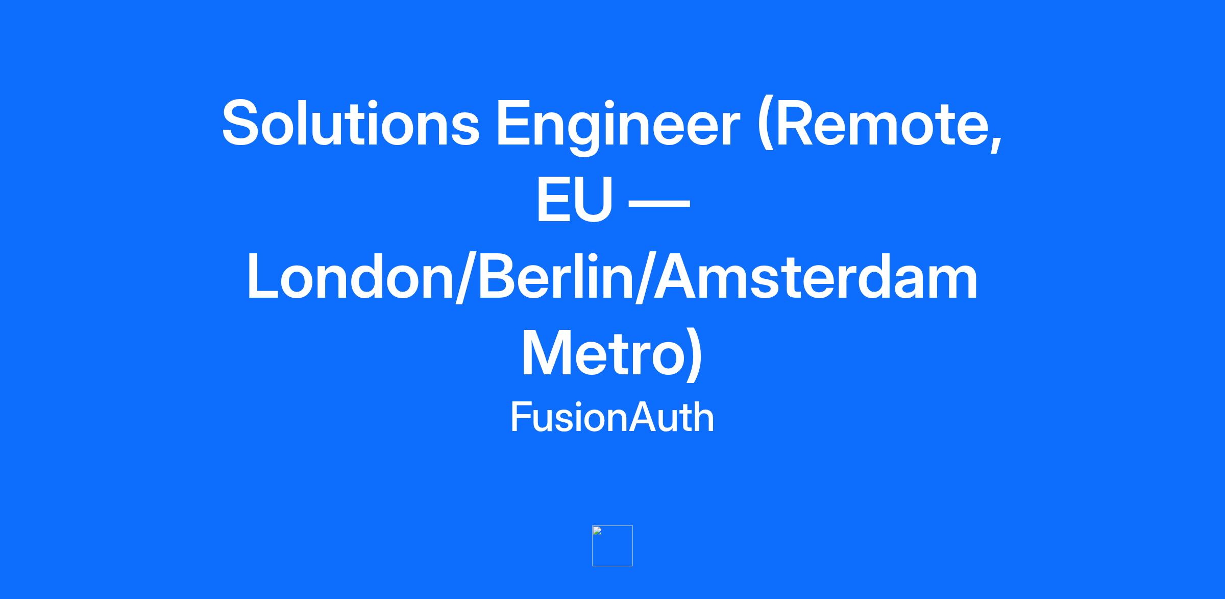 Job Title: Solutions Engineer Location: London, Berlin, or Amsterdam metro area (Remote) About FusionAuth FusionAuth is a developer-first customer identity platform that gives engineering teams complete control over authentication, authorization, and user management. We serve organizations across B2C, B2B, and B2B2C with a single-tenant architecture, flexible hosting options, and deep extensibility through APIs, webhooks, and advanced customizations. We’re a fast-growing company solving complicated identity problems for teams that care about control, performance, and security. Our Solutions Engineering team sits at the center of product, engineering, and revenue — guiding prospects through architecture decisions, supporting complex proof-of-concepts, and helping them evaluate FusionAuth with clarity and confidence. If you love talking to developers, diagramming architectures, building sample apps, and helping teams understand the “why” behind identity decisions, this role is for you. Job Summary Your Role: The Hero of Solutions Engineering As a Solutions Engineer, your mission is to drive the technical win. You’ll team up with Account Executives to run deep discovery, demonstrate FusionAuth’s capabilities, build trust with engineering teams, and guide prospects through solution design, hosting choices, and identity architecture decisions. This isn’t a “demo jockey” role — our SEs write code, build PoCs, advise on CIAM best practices, and advocate for developers. You’ll influence product direction, collaborate closely with engineering, and shape how organizations adopt FusionAuth in the real world. Responsibilities Drive Technical Discovery & Solution Design Lead discovery sessions that uncover technical requirements, constraints, and success criteria. Build and present architectural recommendations tailored to each prospect’s environment and model (B2C, B2B, B2B2C, app suites, multi-tenant SaaS, M2M). Guide prospects through modern auth patterns (OAuth, OIDC, SAML, MFA, SSO, token exchange, mTLS, DPoP, FGA, etc.). Deliver Developer-First Technical Evaluations Run demos that speak directly to engineering teams — hands-on, credible, and real. Build example apps, scripts, and integration patterns using FusionAuth, modern frameworks, and cloud tooling. Support structured proofs of concept, including async Slack support, environment setup guidance, sample payloads, and success criteria alignment. Hosting, Architecture & Deployment Guidance Advise on FusionAuth hosting tiers (Basic, Business, HA) and help prospects understand cost, scale, and operational tradeoffs. Assist with customer environments: Docker, Kubernetes, containers, microservices, cloud infra, CI/CD, and DevOps patterns. Help prospects align FusionAuth with compliance, security, and regional requirements. Collaboration, Documentation & Process Partner with product and engineering to ensure field requirements are heard and prioritized. Contribute documentation, internal runbooks, diagrams, and developer-focused content. Participate in creating Consensus workflows, Problem/Solution videos, and technical demo assets. Represent FusionAuth Externally Present at meetups, webinars, and developer-focused events. Collaborate with DevRel and Product Marketing to create authentic developer content. Serve as a credible technical voice in the identity community. Qualifications Required Dev XP: 4+ years software development or engineering experience (you can write code, debug, and reason about architecture). SE XP: 2+ years in pre-sales, customer-facing engineering, technical consulting, or similar. Hands-on IAM experience (OAuth, OIDC, SAML, MFA, SSO) with ability to explain and implement flows. Comfort working with modern frameworks (JS/TS, Python, Java, Go, etc.). Experience with cloud platforms (AWS, GCP, Azure). Familiarity with DevOps tooling (Docker, Kubernetes, CI/CD, observability). Strong communication skills — diagramming, documentation, storytelling. Curiosity and a builder mindset — SEs at FusionAuth are makers. Preferred Experience with CIAM specifically (Auth0, Keycloak, Cognito, WorkOS, Stytch, Frontegg, etc.). Security/compliance awareness (SOC2, GDPR, HIPAA). Experience in multi-region deployments, high availability, and distributed systems. Technical certifications (AWS SA, Kubernetes, security certs). Location: Based in London, Berlin or Amsterdam metro area Important Details Application Submission: We value authentic, thoughtful responses. Copy/pasted or AI-generated answers to application questions that don’t reflect your own experience may disqualify your application. In-Person Interview: Please be aware that participating in an in-person interview is a required step in the FusionAuth hiring process prior to employment. This visit allows both FusionAuth and the candidate to get to know each other better and confirm a strong mutual fit and alignment with our team and work environment. Candidates are encouraged to plan accordingly, and FusionAuth supports this process by reimbursing reasonable travel and lodging expenses associated with onsite interviews. If you are passionate about technology that solves real-world customer problems, and want to join a company that is moving the industry forward, FusionAuth is a perfect fit for you! Equal Employment Opportunity FusionAuth provides equal employment opportunities to all employees and applicants for employment and prohibits discrimination and harassment of any type without regard to race, color, religion, age, sex, national origin, disability status, genetics, protected veteran status, sexual orientation, gender identity or expression, or any other characteristic protected by federal, state or local laws. This policy applies to all terms and conditions of employment, including recruiting, hiring, placement, promotion, termination, layoff, recall, transfer, leaves of absence, compensation and training. E-Verify | Right to Work Recruiters Fusio