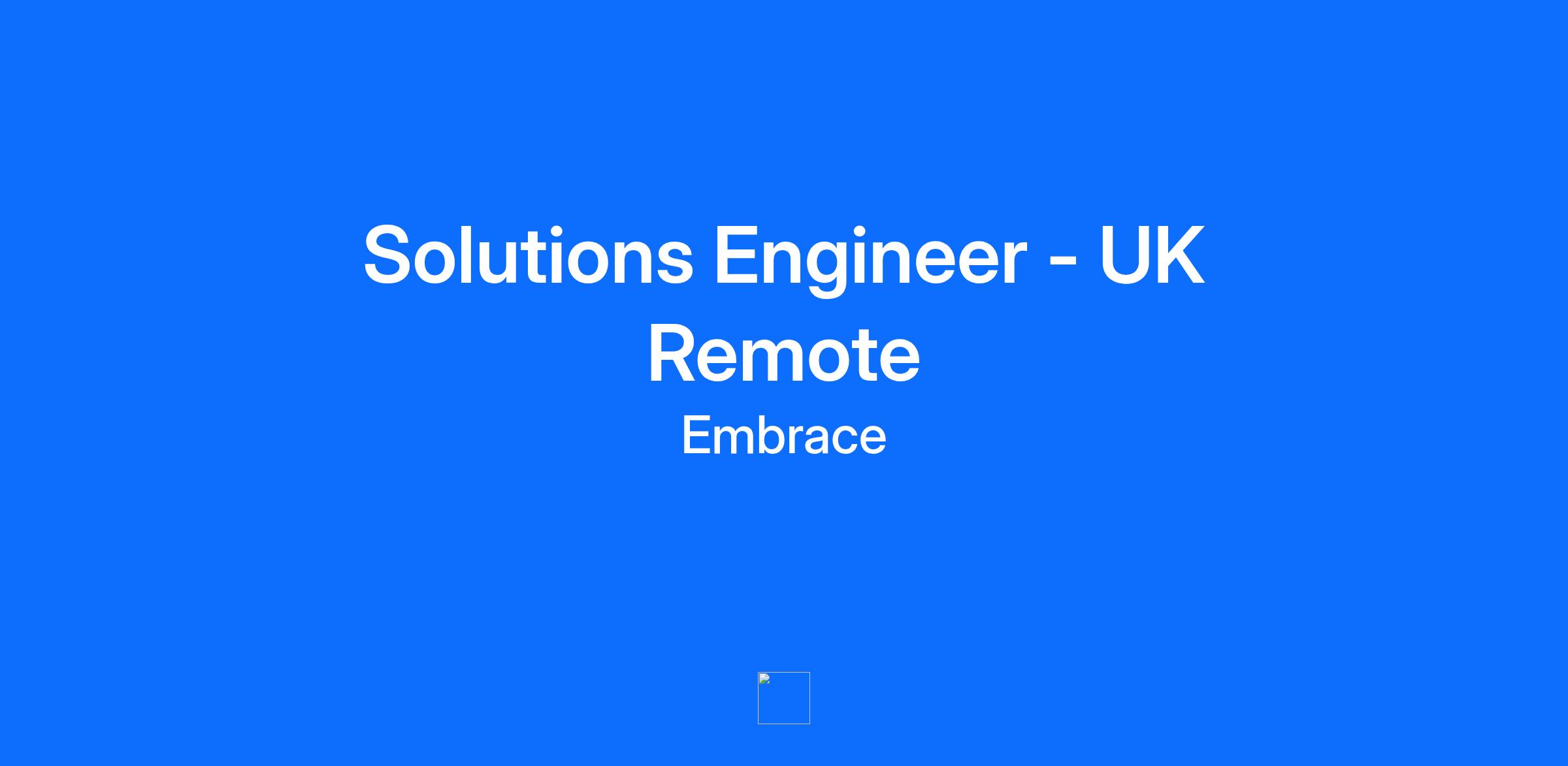 About the Role We're looking for a highly technical Solutions Engineer to help mobile and web developers build better user experiences. At Embrace, we're the only user-focused observability solution built on OpenTelemetry, providing frontend teams with the insights they need to understand real customer impact across 100M+ devices and growing. What You’ll Do Represent Embrace as both an expert communicator and technologist, and help deliver an amazing customer experience Communicate directly with customers, product and engineering teams, and work together towards a solution to the task at hand Drive the technical integration strategy and execution for both prospects and customers, leveraging deep product expertise to create customized implementation approaches tailored to each customer's technical environment and business objectives Quickly root-cause, identify technical issues, and provide clear instructions to reproduce the problems or drive new product specifications Directly impact product direction by suggesting improvements for customers day to day Ensure that our process for surfacing bugs to Engineering is fast, efficient, and effective Improve collaboration with Sales and Customer Success by developing tools and enhancing documentation Our Ideal Candidate will have: 3+ years experience in a Mobile Developer, Web Developer, Sales Engineer, or Solutions Engineer role at a B2B software technology company Experience with mobile or web development and eagerness to learn and improve your skills. Familiarity with iOS, Android and their development tools Working knowledge of Linux and/or Mac OS X command line Comfortable discussing code; ability to read and write code is a plus (Python, Java, Objective-C, Swift, Kotlin, or JS preferred) A curiosity for how things work and the ability to apply your experience of using tools and resources to come to a resolution Excellent communication skills and comfortability writing and speaking with people to help them solve their issues High competency and low ego, you have a passion for helping people both inside and outside of your company Willingness to travel for both customer-facing activities (technical workshops, integration support, relationship building) and quarterly internal team collaboration gatherings Diploma in Computer Science, Mathematics or related discipline preferred On target earnings (OTE) for this role are $130,000-$160,000. Actual compensation may vary based on level, experience, and skillset as assessed in the interview process. Benefits include equity and other benefits as detailed on our careers page. Why Join Embrace? As the only user-focused observability solution built on OpenTelemetry, Embrace delivers crucial insights across both DevOps, web and mobile teams to illuminate real customer impact – not just server impact – to deliver the best app experiences. Customers like The New York Times, Marriott, Masterclass, Home Depot, and Cameo love Embrace’s observability platform because it makes extremely complicated and voluminous data actionable. Our cultural values highlight how we seek to improve as individuals, team members, and a company each and every day.