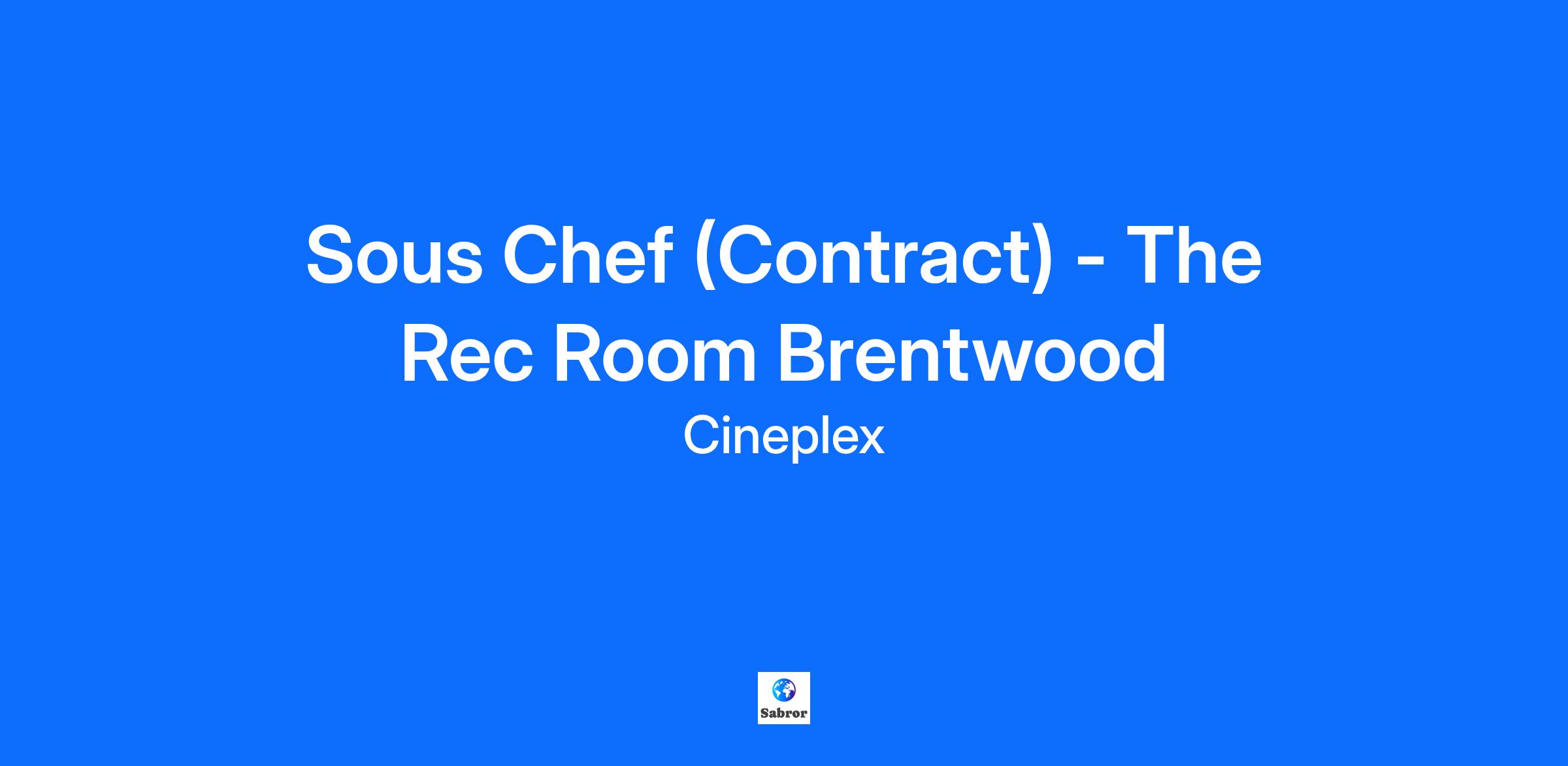 Sous Chef (Contract) - The Rec Room Brentwood