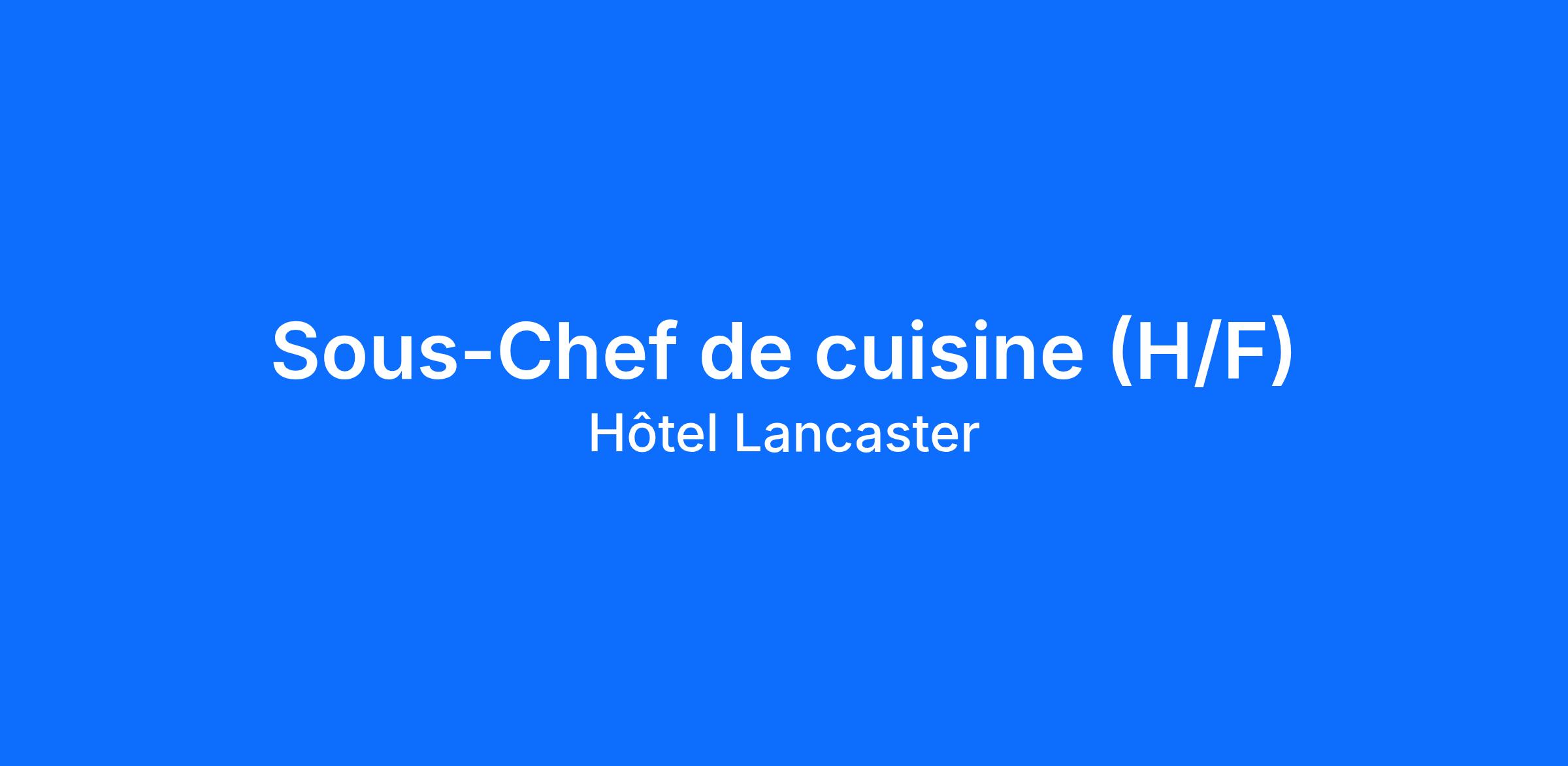 L’Hôtel Lancaster***** situé au cœur du 8e arrondissement de Paris recrute un Sous-Chef de cuisine (H/F) pour son restaurant Monsieur Lancaster, aux côtés de Sébastien Giroud, Chef exécutif.