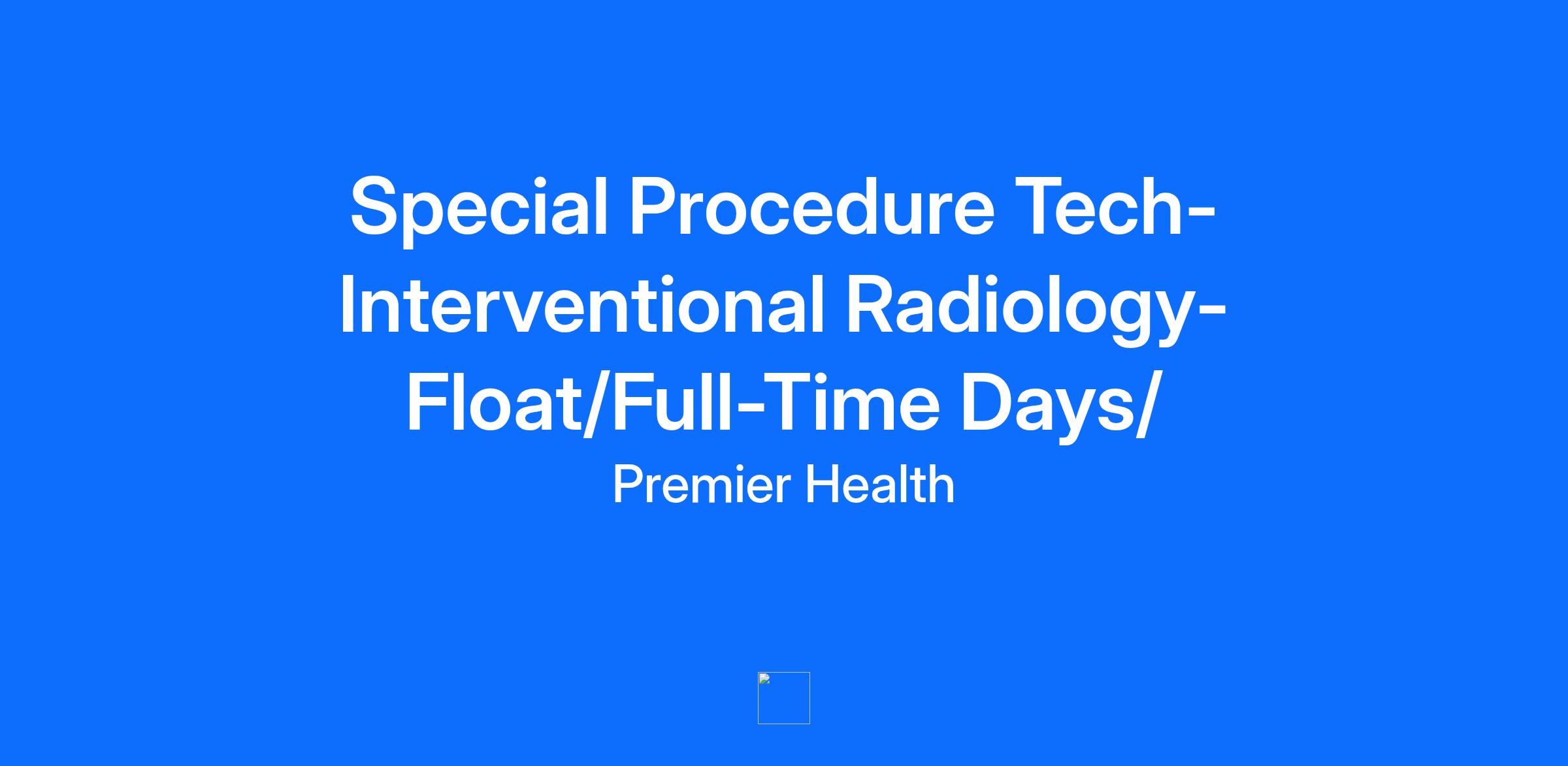 Job Title: Special Procedures Tech-Float Unit: Interventional Radiology Shift: Full-Time-Days/ 7:30 a.m.-4:00 p.m. Facility: Atrium Medical Center Responsibilities include coverage of both the AMC and MVH IR departments. Independently performs Interventional Radiology (IR) procedures utilizing proper techniques and administration of contrast media. Works under their scope of practice and in accordance with certificate/licensure in the administration of medications, operation of equipment, and venipuncture. Coordinates patient flow and the activities of the IR department. Exercises professional judgment in the performance of duties in order to maintain equipment in good working condition. May perform procedures in other imaging modalities based on departmental needs. May have on call responsibilities Education Minimum Level of Education Required: Associate degree Additional requirements: § Type of degree: Allied Health § Area of study or major: Radiologic Technology § Preferred educational qualifications: N/A § Position specific testing requirement: N/A Licensure/Certification/Registration § CPR Certification required § ACLS preferred § ARRT RT (R) registry required § Vascular-Interventional Radiography (VI) registry preferred § ODH licensure required Experience Minimum Level of Experience Required: 1 - 3 years of job-related experience Prior job title or occupational experience: Radiologic Technologist Prior specific functional responsibilities: N/A Preferred experience: 3 years of progressive Radiologic Technology experience Other experience requirements: N/A Knowledge/Skills § Human anatomy § Proficient in Electronic Medical Record (EMR) § Proficient in Radiology Information System (RIS) and Image Storage § Knowledge of advanced IR computer applications § Radiation Safety § Proven exemplary skills to productivity and teamwork § Ability to work independently with little or no supervision § Must possess effective verbal, written communication, and interpersonal skills. Physical Requirements & Working Conditions Physical Requirements: Pulling 4 - Consistently (76%25 - 100%25) Standing 4 - Consistently (76%25 - 100%25) Other sounds 3 - Frequently (41%25 - 75%25) Twisting 4 - Consistently (76%25 - 100%25) Reaching 3 - Frequently (41%25 - 75%25) Visual Acuity Near 4 - Consistently (76%25 - 100%25) Walking 4 - Consistently (76%25 - 100%25) Manual Dexterity 4 - Consistently (76%25 - 100%25) Visual Acuity Far 3 - Frequently (41%25 - 75%25) Sitting 4 - Consistently (76%25 - 100%25) Use both hands 4 - Consistently (76%25 - 100%25) Vision Color 4 - Consistently (76%25 - 100%25) Pushing 4 - Consistently (76%25 - 100%25) Talking 4 - Consistently (76%25 - 100%25) Concentrating 4 - Consistently (76%25 - 100%25) Climbing 2 - Occasionally (11%25 - 40%25) Lifting <10 pounds 4 - Consistently (76%25 - 100%25) Interpersonal Skills 4 - Consistently (76%25 - 100%25) Stooping 2 - Occasionally (11%25 - 40%25) Lifting >10 pounds 3 - Frequently (41%25 - 75%25) Reading 4 - Consistently (76%25 - 100%25) Kneeling 3 - Frequently (41%25 - 75%25) Normal hearing both ears 3 - Frequently (41%25 - 75%25) Thinking 4 - Consistently (76%25 - 100%25) Working Conditions: 1. Must be able to push, pull or lift up to 50 pounds 2. May be exposed to aggressive, violent behaviors from patients, family members, and/or visitors 3. May be exposed to blood and body fluids, including those with tuberculosis, HIV, hepatitis, or body infestations 4. Must be able to work under stressful conditions which may occur in emergency situations or with a heavy workload 5. Exposed to ionizing radiation Organizational Standards § Possess skills, knowledge, and abilities to reach the mission, vision, and values of Premier Health. § Demonstrates traits and behaviors including, but not limited to, Focusing on Patients/Customers, Walking the Talk, Being a Partner, Adding Skills/Abilities, Working Independently for all staff and Managing in a Changing Environment, Engaging the Workforce, and Managing & Improving Individual Performance for Management Staff. § Performs in such a way to honor our values of Respect, Integrity, Compassion, and Excellence. § Provides a positive and professional representation of the organization. § Promotes a culture of safety for patients and employees through proper identification, reporting, documentation, and prevention. § Maintains hospital standards for a clean and quiet patient environment to maintain a positive patient care experience. § Maintains competency and knowledge of current standards of practice, trends, and developments in related scope of job role or practice. § Adheres to infection prevention policies and protocols, medication administration and storage procedures, and controlled substance regulations. § Participates in ongoing quality improvement activities. § Maintains compliance with organization’s policies, as well as established practices, protocols, and procedures of the position, department, and applicable professional standards. § Complies with organizational and regulatory policies for handling confidential patient information. § Demonstrates excellent customer service through his/her attitude and actions, consistent with the standards contained in the Vision, Mission, and Values of the organization. § Adheres to professional standards, hospital policies and procedures, federal, state, and local requirements, and TJC standards and/or standards from other accrediting bodies. § Reports to work as required. Essential Duties & Functions Essential Duties & Functions: 1. Performs IR procedures of diagnostic quality as ordered by the referring physician and/or radiologist on patients of all ages according to established protocols. 2. Obtains clinical history and data for correlation with the IR procedure. 3. Implements screening and safety measures in accordance with prescribed IR policies / procedures. Performs daily and weekly QC as required. 4. Prepares and administers c