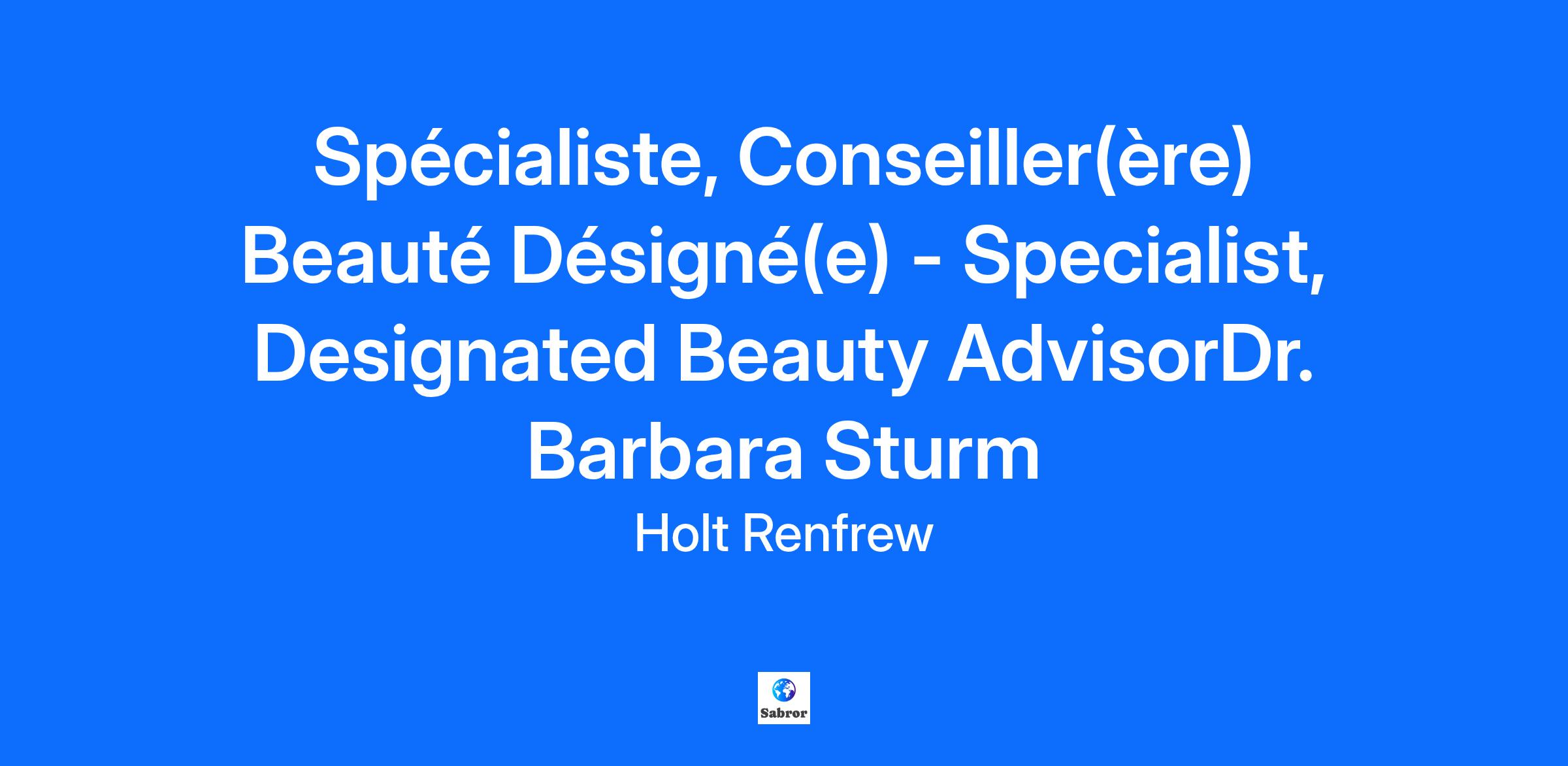 Spécialiste, Conseiller(ère) Beauté Désigné(e) - Specialist, Designated Beauty AdvisorDr. Barbara Sturm