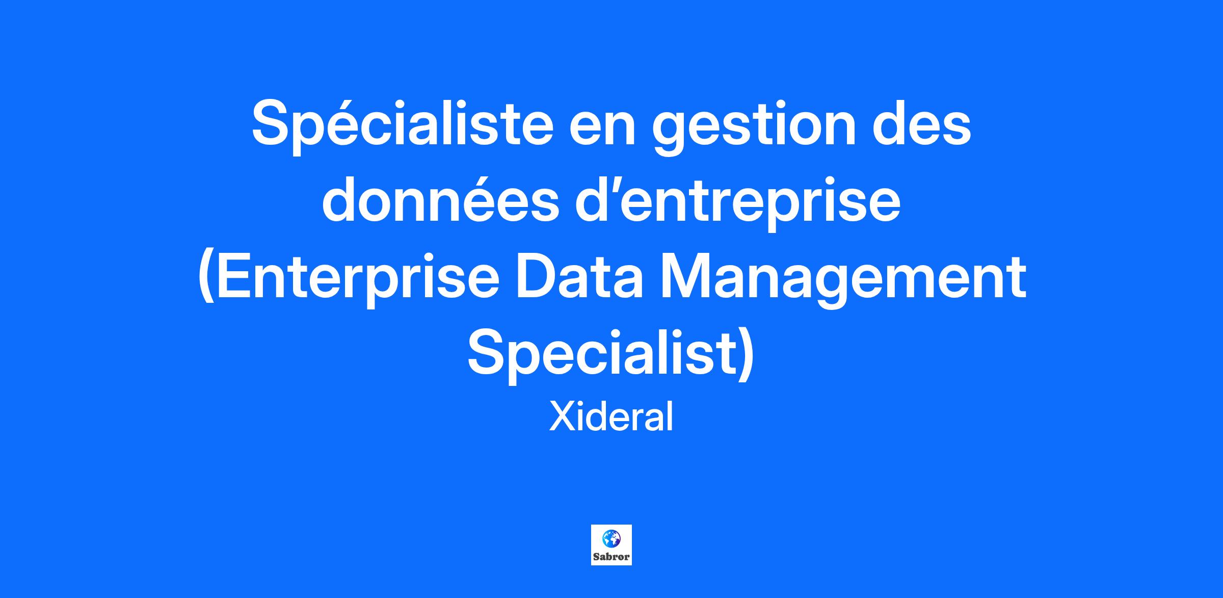 À propos du posteLa gestion des données d’entreprise est au cœur des opérations et de la stratégie analytique.