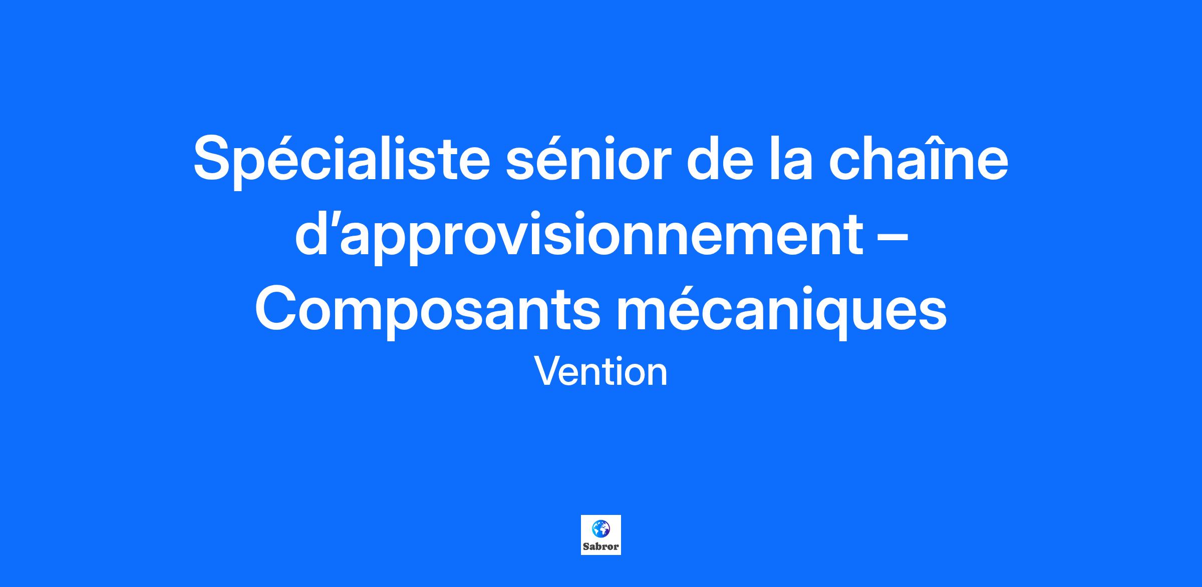 En tant que Spécialiste senior de la chaîne d’approvisionnement – Composantes mécaniques chez Vention…