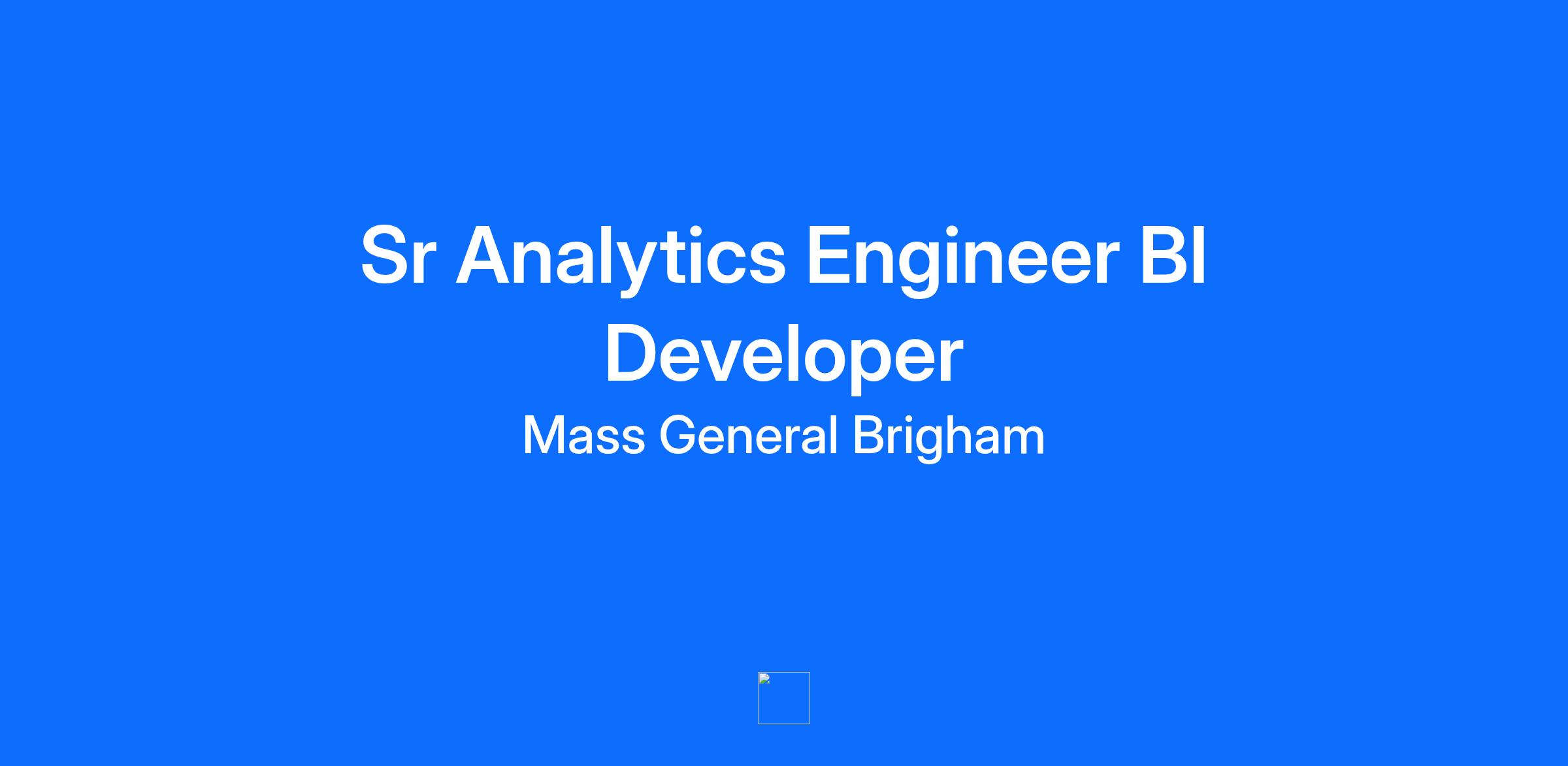 Site: Mass General Brigham Health Plan Holding Company, Inc. Mass General Brigham relies on a wide range of professionals, including doctors, nurses, business people, tech experts, researchers, and systems analysts to advance our mission. As a not-for-profit, we support patient care, research, teaching, and community service, striving to provide exceptional care. We believe that high-performing teams drive groundbreaking medical discoveries and invite all applicants to join us and experience what it means to be part of Mass General Brigham. Mass General Brigham is hiring a Full Time Senior Analytics Engineer/ Business Intelligence Developer. This role is vital to the team! The ideal candidate for this role can act as a backup to our SSAS developer but will be doing day to day work developing in Python and SQL to support Data Science/AI initiatives. Job Summary The Opportunity The Sr Business Intelligence Developer Analytics Engineer will use Microsoft Business Intelligence tools, primarily Microsoft SSMS, SSAS, and SSIS to maintain BI data structures in support of operational, clinical, and financial analysis. Support Data Scientists on the team with Microsoft SQL queries, ETL processes and Python. What You'll Do - Supports BI Development and works with the data scientists to support and learn what they are doing -Works with end users, analysts, technical staff, and team members to plan, designs, develops, implements, and enhances business intelligence capabilities using Microsoft Business Intelligence tools. -Assists with maintaining and troubleshooting issues with existing cubes, queries and processes. -Develops efficient Microsoft SQL queries and data processes for Data Scientists on the team in support of Machine Learning and Artificial Intelligence. -Assists end users, as a subject matter expert on existing company data, processes and business intelligence tools. -Create clear documentation for users and technical staff. -Follows established change control and versioning policies as pursuant with company standards and best practices. -Serves as project manager for relevant analytics projects, including meeting facilitation, resource management, and stakeholder expectation setting. -Provide training and mentorship to team, and end users on key analytic and reporting systems and databases when necessary. Qualifications Bachelor's Degree Computer Science required or Bachelor's Degree Information Systems required MGB can review and consider experience in lieu of a degree Experience as a business intelligence developer or a similar role 5-7 years required Python experience and SSIS highly preferred BI SSAS cube development experience Skills for Success Proficiency in SQL and experience with relational databases (e.g., SQL Server, Oracle, MySQL). Exposure to Azure. The newer BI tools require some Python, like Azure Data Engineering certs require you to use python for data manipulation. Expertise in Microsoft Business Intelligence data engineering tools (SSMS, SSAS and SSIS) Expertise in business intelligence and data visualization tools such as Microsoft PowerBI or similar. Solid understanding of data warehousing concepts, dimensional modeling, and ETL best practices. Knowledge of programming languages (e.g., Python, R) and statistical analysis techniques is a plus. Excellent analytical and problem-solving skills, with the ability to translate business requirements into technical solutions. Strong communication skills to effectively collaborate with stakeholders and present complex data insights in a clear and concise manner. Health Insurance industry experience is a plus. Additional Job Details (if applicable) Working Model M-F Eastern Business Hours Required All employees may be required to attend meetings, trainings, or other necessary functions onsite at our local Mass General Brigham location on an as-needed basis. Reasonable notice will be provided for any required in-person attendance,, with planning, must be flexible to meet business needs A quiet, stable, secure, compliant work station is required for remote workers Remote Type Remote Work Location 399 Revolution Drive Scheduled Weekly Hours 40 Employee Type Regular Work Shift Day (United States of America) Pay Range $92,102.40 - $134,056.00/Annual Grade 7 At Mass General Brigham, we believe in recognizing and rewarding the unique value each team member brings to our organization. Our approach to determining base pay is comprehensive, and any offer extended will take into account your skills, relevant experience if applicable, education, certifications and other essential factors. The base pay information provided offers an estimate based on the minimum job qualifications; however, it does not encompass all elements contributing to your total compensation package. In addition to competitive base pay, we offer comprehensive benefits, career advancement opportunities, differentials, premiums and bonuses as applicable and recognition programs designed to celebrate your contributions and support your professional growth. We invite you to apply, and our Talent Acquisition team will provide an overview of your potential compensation and benefits package. EEO Statement: Mass General Brigham Health Plan Holding Company, Inc. is an Equal Opportunity Employer. All qualified applicants will receive consideration for employment without regard to race, color, religious creed, national origin, sex, age, gender identity, disability, sexual orientation, military service, genetic information, and/or other status protected under law. We will ensure that all individuals with a disability are provided a reasonable accommodation to participate in the job application or interview process, to perform essential job functions, and to receive other benefits and privileges of employment. To ensure reasonable accommodation for individuals protected by Section 503 of the Rehabilitation Act of 1973, the Vietnam Veteran’s Readjustment Act of 1974, and Title 