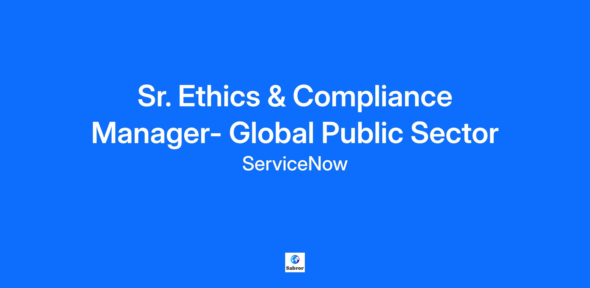 Sr. Ethics & Compliance Manager- Global Public Sector