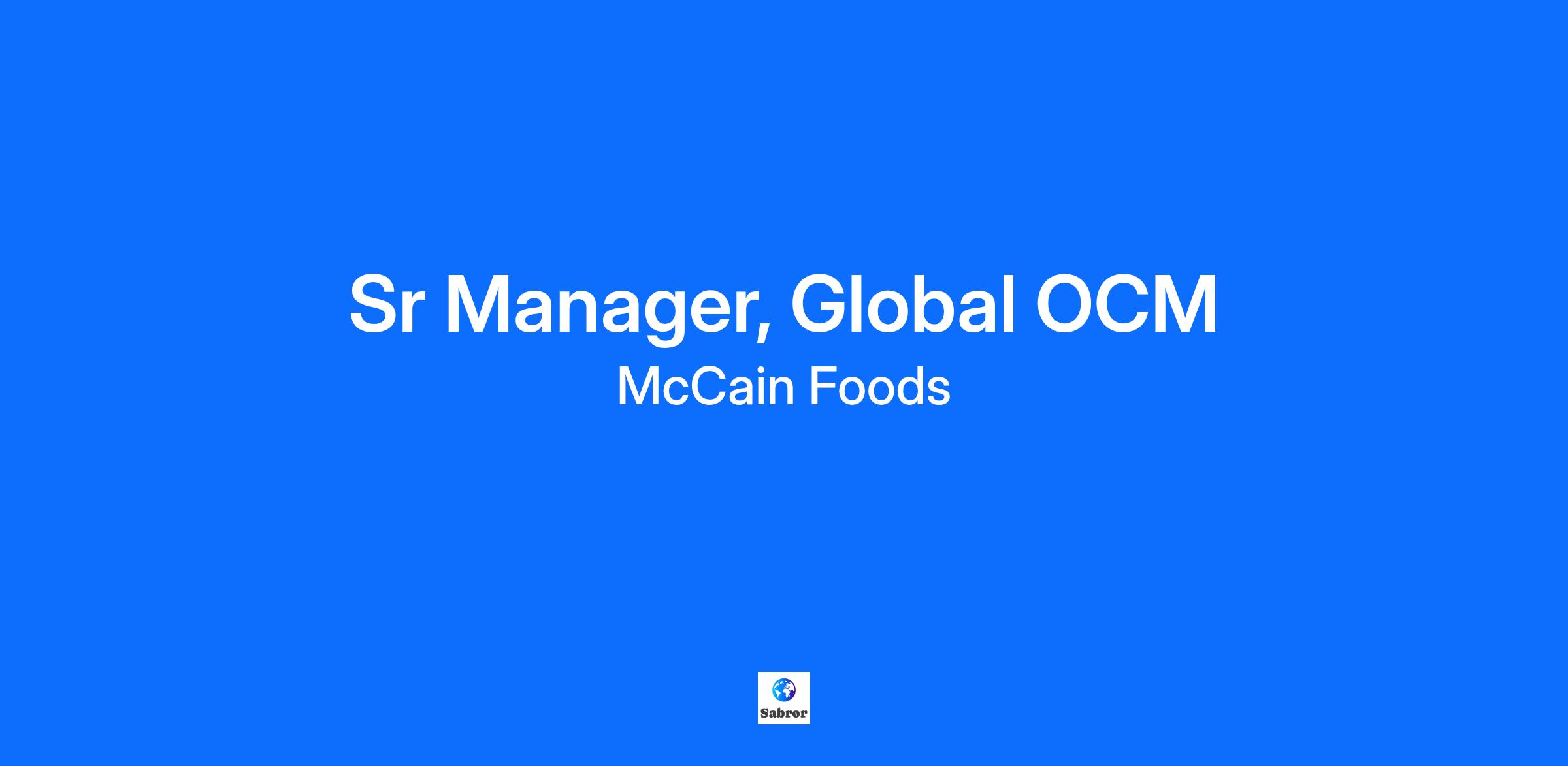 Position Title: Sr Manager, Global OCM