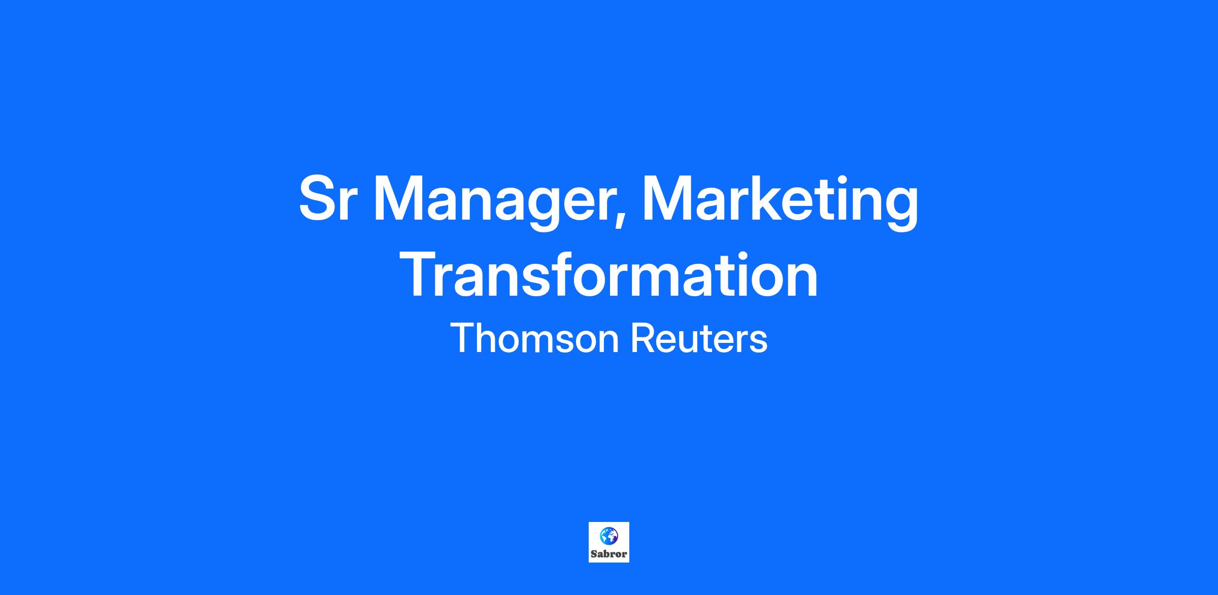 Sr Manager, Marketing Transformation