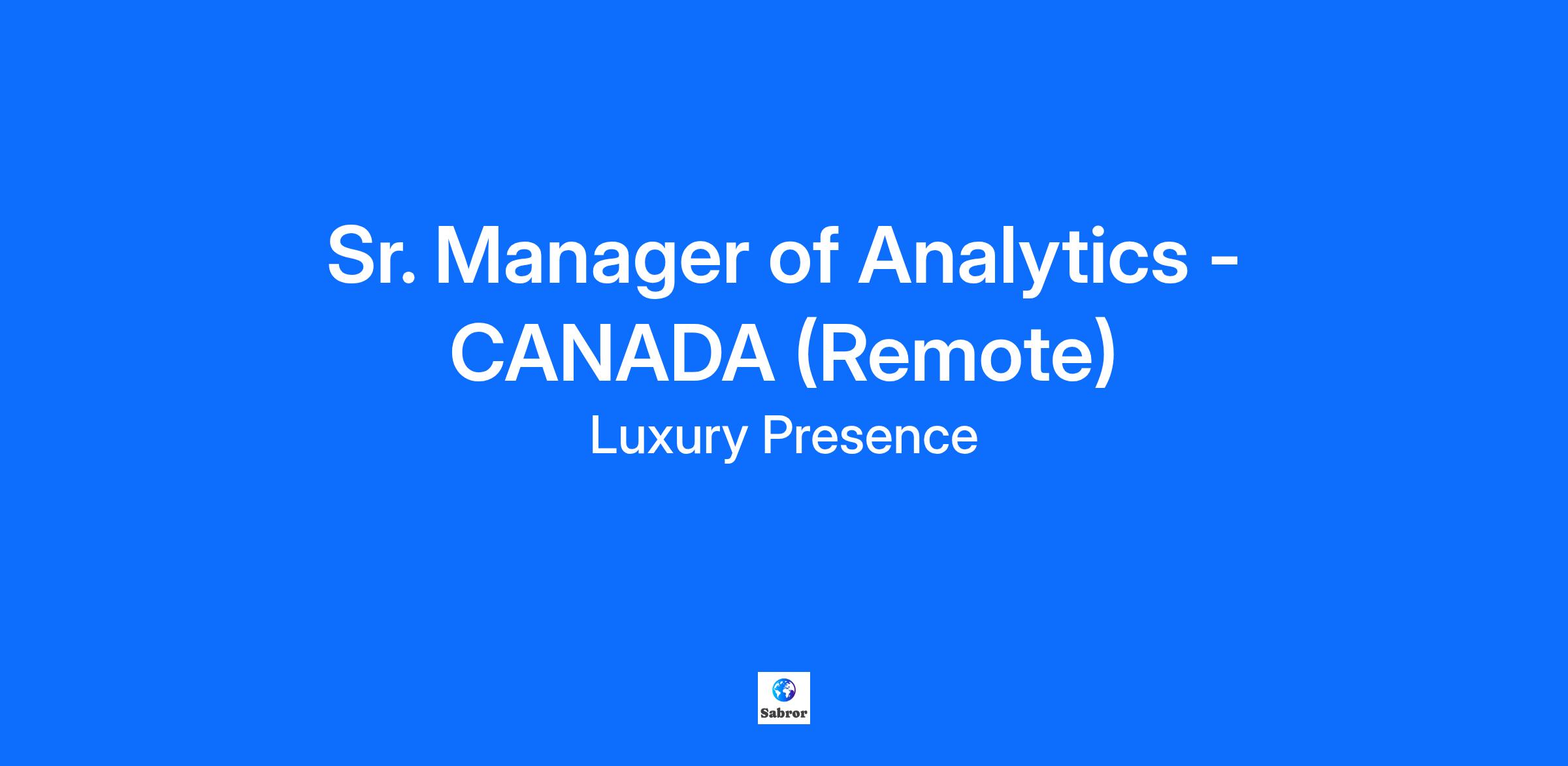 What you will do as our Sr. Manager of Analytics: