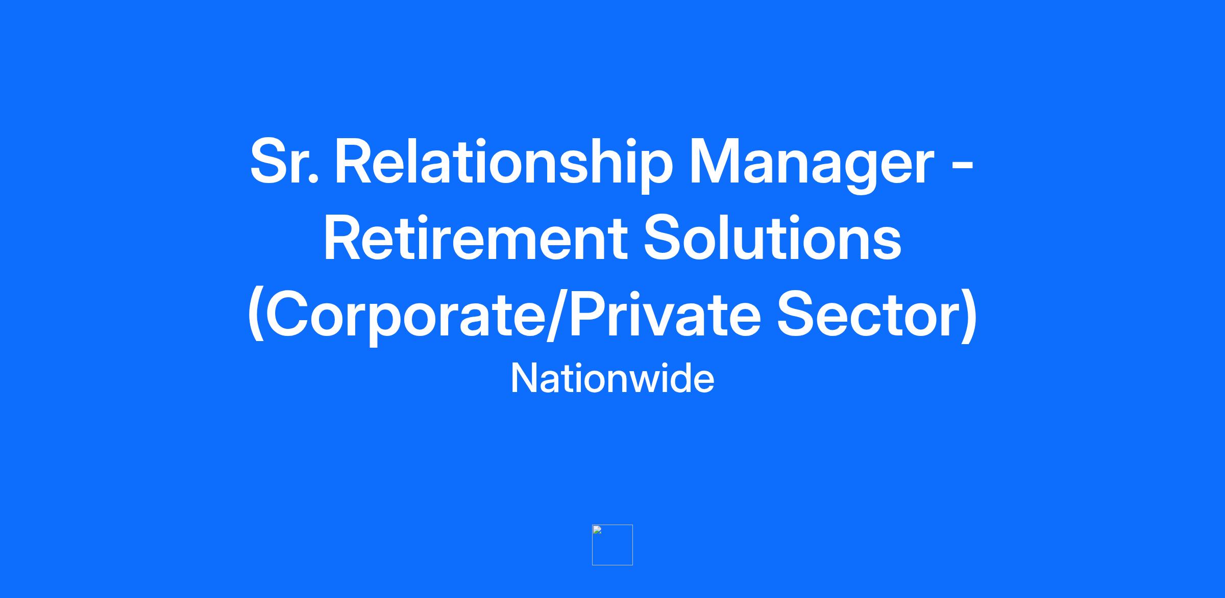 Are you passionate about being part of a team that delivers extraordinary care to help individuals and businesses prepare for and protect their retirement? If so, then Nationwide Financial could be the place for you! At Nationwide®, “on your side” goes beyond just words. Our customers are at the center of everything we do and we’re looking for associates who are passionate about delivering extraordinary care. This role will cover the territory of Ohio and Michigan for our Corporate/Private sector clients. Living within the territory is a requirement while living in the vicinity of the Columbus Metropolitan area is strongly preferred. This is a G.SD110 band role. #LI-COLE Job Description Summary At the heart of our work with retirement plans for high-profile organizations is the desire to help individuals retire successfully. Multiple decision-makers are engaged in plan selection, enhancements and retention, requiring teamwork, strategic thinking and superior relationship management on various levels. If you can collaborate, connect and communicate to build, grow and retain meaningful and productive business relationships, we want to know more about you! As a Senior Relationship Manager, you’ll be accountable for all aspects of strategic account management for a defined list of our plans including, advisor/consultant, third-party administrator and any other service provider relationships You’ll manage our mid-sized plans with average assets of $10-100M, with total responsibility for retirement assets. You’ll be focused on proactively driving plan profitability, including layering in appropriate Nationwide products and services, while increasing efficiencies. You will be responsible for deepening relationships with key decision makers on the client’s board/committee and with advisors and consultants. Job Description Key Responsibilities: Through a proactive strategic account management process, responsible for establishing, growing and retaining profitable relationships with our mid-sized plan sponsors, advisor/consultants, TPAs and other service providers. Leads the integrated service team by coordinating home office support functions and additional resources to grow and retain key relationships. Establishes, grows and retains profitable relationships with our mid-size plan sponsors, advisor/consultants, third-party administrators and other service providers through a proactive strategic account management process. Develops and executes a strategic business plan for each client that takes into consideration the goals and objectives of the client and aligns with the objectives and capabilities of Nationwide and other service providers. Supports mid-size plan sales acquisition through positioning our service model and the benefits to the plan sponsor and plan participants. Leads client onboarding process including familiarizing the plan sponsor with Nationwide tools and services and partners with implementation team to ensure a smooth onboarding process. Shares and positions the Nationwide story and drives capabilities/feature adoption that increase plan efficiency and improve client experience. Develops and implements plan participant servicing strategies in partnership with plan sponsors to drive participant engagement and retirement readiness. Represents the client voice in product and service development and enhancements. May perform other responsibilities as assigned. Reporting Relationships: Reports Director of Relationship Management and does not have direct managerial responsibilities. Typical Skills and Experiences: Education: Undergraduate studies in business or finance or related fields preferred. License/Certification/Designation: FINRA 6, 63, 65 (or 7/66) required. Associates must obtain the required federal and/or state licenses/registrations within the time period designated by the business unit. Additional licenses/registrations may be required when new products and services are implemented. If an associate fails or is unable to obtain required licenses/registrations within the time period designated by the business unit, the associate will be ineligible to continue in the position. Designations such as AIF and other Retirement Plan industry designations are strongly encouraged. Experience: Five years in the financial services industry, with at least three years focused on retirement plans. Experience managing relationships with plan sponsors and advisor/consultants of retirement plans. Experience leading matrixed team of associates to deliver on client objectives and goals. Knowledge, Abilities and Skills: In-depth understanding of the retirement plan business and 401k and 403b market. Knowledge of products and related industry practices and procedures. Working knowledge of ERISA, qualified plan design, recordkeeping, administration and plan investments and account implementation. Knowledge of federal and state regulatory requirements and quality standards. Ability to establish and grow key relationships with top clients. Excellent verbal, written communication and presentation skills to influence and negotiate with internal and external stakeholders. Attention to detail, learning agility, time management, technical and negotiation skills. Ability to drive successful results in a fast-paced environment. Ability to synthesize multiple data points to continually develop retention and growth strategies in an ever-changing environment. Strong project management and organizational skills. Other criteria, including leadership skills, competencies and experiences may take precedence. Staffing exceptions to the above must be approved by the hiring manager’s leader and HR Business Partner. Values: Regularly and consistently demonstrates the Nationwide Values. Job Conditions: Overtime Eligibility: Not Eligible (Exempt) Working Conditions: Working from a home office set-up. Requires extensive travel (up to 75%) within and occasionally outside of assigned territory. Mu