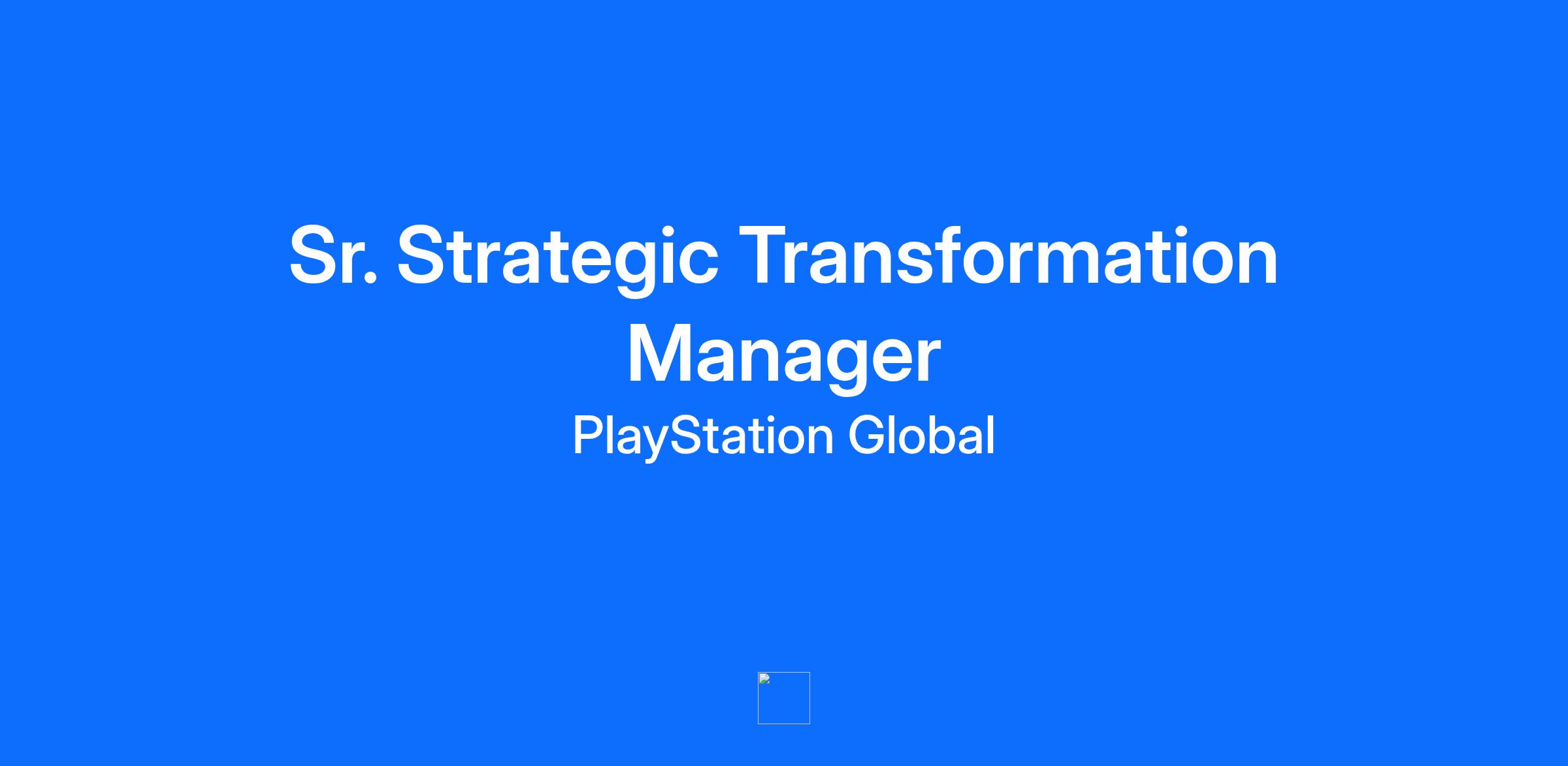 Why PlayStation? PlayStation isn’t just the Best Place to Play — it’s also the Best Place to Work. Today, we’re recognized as a global leader in entertainment producing The PlayStation family of products and services including PlayStation®5, PlayStation®4, PlayStation®VR, PlayStation®Plus, acclaimed PlayStation software titles from PlayStation Studios, and more. PlayStation also strives to create an inclusive environment that empowers employees and embraces diversity. We welcome and encourage everyone who has a passion and curiosity for innovation, technology, and play to explore our open positions and join our growing global team. The PlayStation brand falls under Sony Interactive Entertainment, a wholly-owned subsidiary of Sony Group Corporation. Sr. Strategic Transformation Manager Sony Interactive Entertainment (SIE) is looking for an experienced Sr. Strategic Transformation Manager to join our Studio Business Group (SBG) Transformation and Operations team. In this role, you will partner closely with senior leaders, cross-functional teams to lead, support, and optimize high-impact initiatives that drive our business forward. This position requires strategic and system thinking, the ability to navigate complexity, and a proactive mindset to lead change in a fast-paced environment. This role will report to the Director of Strategic Transformation and Change. Key Responsibilities The Sr. Strategic Transformation Manager will lead and support a portfolio of high-impact programs that are complex, cross-functional, and often studio-facing in nature. The role requires seamless collaboration with internal first-party studios, corporate functions, and global teams, and SBG/SIE Leadership to deliver strategic outcomes that align with long-term business objectives. A successful candidate will be able to do the following: Strategic and Systems Thinking Evaluate complex business challenges through a systems lens to identify root causes and interdependencies. Develop structured and practical solutions that align with SBG’s long-term strategic goals and support specific project objectives. Program and Risk Management Lead the planning, execution, and delivery of strategic initiatives from inception through implementation. Proactively identify, assess, and manage risks; escalate critical risks and mitigation strategies to the broader SI team and executive leadership. Process Improvement and Operational Excellence Act as a continuous improvement advocate—capturing lessons learned and implementing refinements across processes, tools, and outcomes. Exhibit a self-starter attitude by anticipating roadblocks and leading solutions before issues escalate. Transformation, Change Management and Stakeholder Communication Be the face of transformation within the business and understand the ‘right’ way to approach large scale transformation initiatives. Effectively communicate project goals, milestones, changes, and impacts to diverse stakeholder groups and leadership teams. Translate complex program activities into clear, actionable updates tailored for both executive and operational audiences. Industry Insight and Contextual Awareness Apply a foundational understanding of the gaming industry to assess external trends and how they could impact our projects. Provide contextual input that enhances strategic decision-making, especially during cross-functional planning and change execution. Qualifications Bachelor’s degree in Business, Corporate Strategy, Finance, or a related field; MBA or equivalent experience preferred. 8+ years of relevant experience across consulting, tech, strategy & transformation — preferably within the technology, gaming, or entertainment sectors. Proven track record of owning and delivering strategic initiatives that span across business units and functions. The ability to turn a high-level business priority into actionable work that can deliver measurable results. Exceptional analytical and problem-solving abilities; able to think holistically while managing detail. Skilled communicator with the ability to influence and build consensus across diverse teams. Understand the important of change management frameworks and risk assessment practices. A passion for gaming and entertainment is a must! Some domestic and international travel may be required. Equal Opportunity Statement: Sony is an Equal Opportunity Employer. All persons will receive consideration for employment without regard to gender (including gender identity, gender expression and gender reassignment), race (including colour, nationality, ethnic or national origin), religion or belief, marital or civil partnership status, disability, age, sexual orientation, pregnancy, maternity or parental status, trade union membership or membership in any other legally protected category. We strive to create an inclusive environment, empower employees and embrace diversity. We encourage everyone to respond. PlayStation is a Fair Chance employer and qualified applicants with arrest and conviction records will be considered for employment.