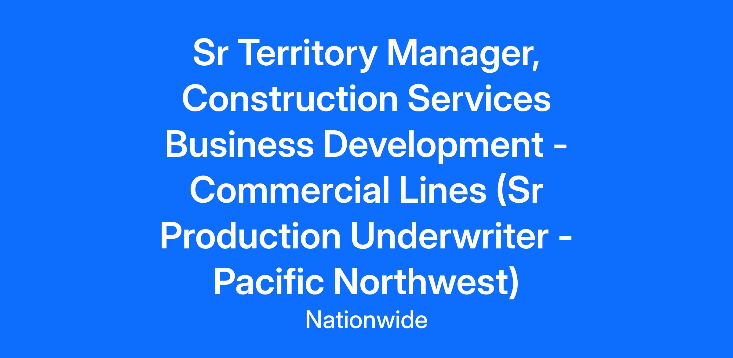 If you’re passionate about helping people protect what matters most to them, as well as innovating and simplifying processes and operations to provide the best customer value, then Nationwide’s Property and Casualty team could be the place for you! At Nationwide®, “on your side” goes beyond just words. Our customers are at the center of everything we do and we’re looking for associates who are passionate about delivering extraordinary care. This is a remote/work-from-home (WFH) production underwriting role that includes travel to key agency relationships within the ultimately assigned territory. Territory: Pacific Northwest Preferably, this individual will be based within the territory, or in close proximity. Qualified candidates must have Commercial insurance underwriting experience (with authority) and a profitability & production orientated lens along with agency management. Strong preference for commercial middle market expertise. Construction-specific insurance industry experience is ideal. Existing relationships with national firms is highly desirable. This role also requires a strong technical skillset with the ability to successfully work across multiple underwriting platforms and thrive through change. Compensation Grade: H.SD150 #LI-MS1 #LI-REMOTE Job Description Summary On our team, we look for that rare professional who is both analytical and a relationship-builder. Those who can combine those talents with their entrepreneurial drive and own and manage their territory can thrive and grow with us. If this sounds like the opportunity you've been looking for, we want to hear from you! As a Senior Territory Manager, you'll work primarily middle market accounts, with an emphasis in commercial lines construction services, representing some of our most complex and sophisticated distribution partners. You'll market, manage and underwrite business through direct contact with select agencies or brokers. We'll count on you to drive profit and premium to meet top financial goals and objectives. To succeed, it will be important to collaborate with internal business partners to support and increase the overall Nationwide presence. Job Description Key Responsibilities: Monitors market conditions, competitive landscape and confirms information gathered within market space. Researches risk, environment and factors necessary to win the account. Analyzes quality and quantity of risks underwritten and prepares reports accordingly. May review agency books of business as well as profit/growth results and trends to recommend and implement action plans. Analyzes regional underwriting performance experience, identifies problems on a territory level and proposes action plan to resolve those situations. Performs analysis of the most complex accounts that require combining experience, intuition and business savvy to make strategic territory and account decisions. Achieves production, profitability and service objectives. Quotes, prices and underwrites new and renewal policies and endorsements, primarily for complex or service sensitive accounts. Monitors risk selection and pricing decisions for entire agency plant. Decisions require review of multiple variables, using agency relationships, inspection reports and evaluation of exceptions. Navigates complex interactions necessary to influence sophisticated producers and customers. Independently reviews for acceptability and handles those within level of authority using company underwriting guidelines and standards. Manages workflow and intricacies of underwriting a significant volume of assigned work using company tools and systems. Ensures file handling quality and workflow efficiency. Manages large, complex work and coordinates work with and through others to meet service level agreements. Facilitates the successful delivery and execution of select agency business plans. Drives robust agency business planning to deliver detailed performance plans with actions, accountabilities and scheduled performance checkpoints. Ensures strong territorial objectives to maximize profit and pipeline management. Proactively finds opportunities for all lines of business and refers to appropriate business leaders. Considers sophistication of partners, navigates organizational complexities and mines for ancillary opportunities through promotion and negotiation techniques. Plans and coordinates the efforts of the team on new business, renewals, service plans, etc. Identifies prospects and recommends new agency appointments. Markets Nationwide products and services to help drive agency and company results, including all products that may improve offerings. Assists agency with strategies for pipeline management, producer development and developing new business in targeted industries and preferred markets. Assesses accounts and develops business propositions to win business. Consults with agents and internal partners to develop business solutions. Shares understanding of organizational capabilities and opportunities to drive maximum value of relationships. Consults regarding the appetite, acceptability, terms, conditions, pricing and sales techniques of large or unique businesses. Provides industry trend observations to leaders. Consults with agencies regarding risk management and coverage options and to improve retention and profitability. Proactively identifies and consults on new business and growth strategies. Communicates with agencies to establish the company as the provider of choice for the territory for all enterprise products with an emphasis on commercial lines. Communicates product, technology changes and company objectives. Communicates market intelligence to agencies and leaders. Communicates and collaborates actively with team and leaders to share industry trends, and field underwriting experience. Completes agency visits as appropriate to develop new accounts, service existing accounts, review agency performance and enhance agency relationship. Build