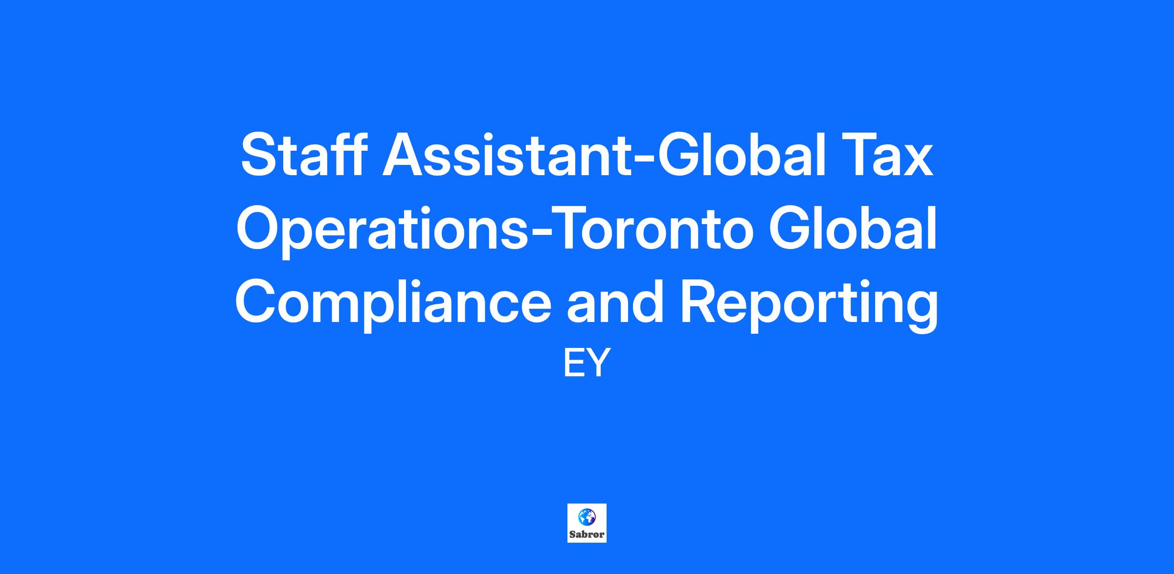 Staff Assistant-Global Tax Operations-Toronto Global Compliance and Reporting