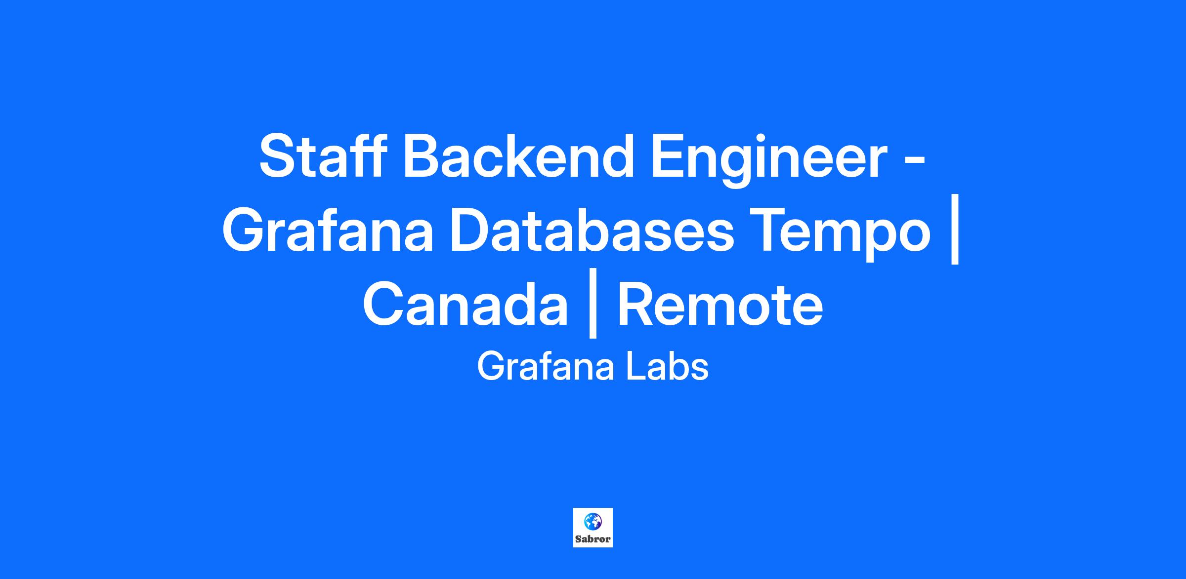 Staff Backend Engineer - Grafana Databases, Tempo