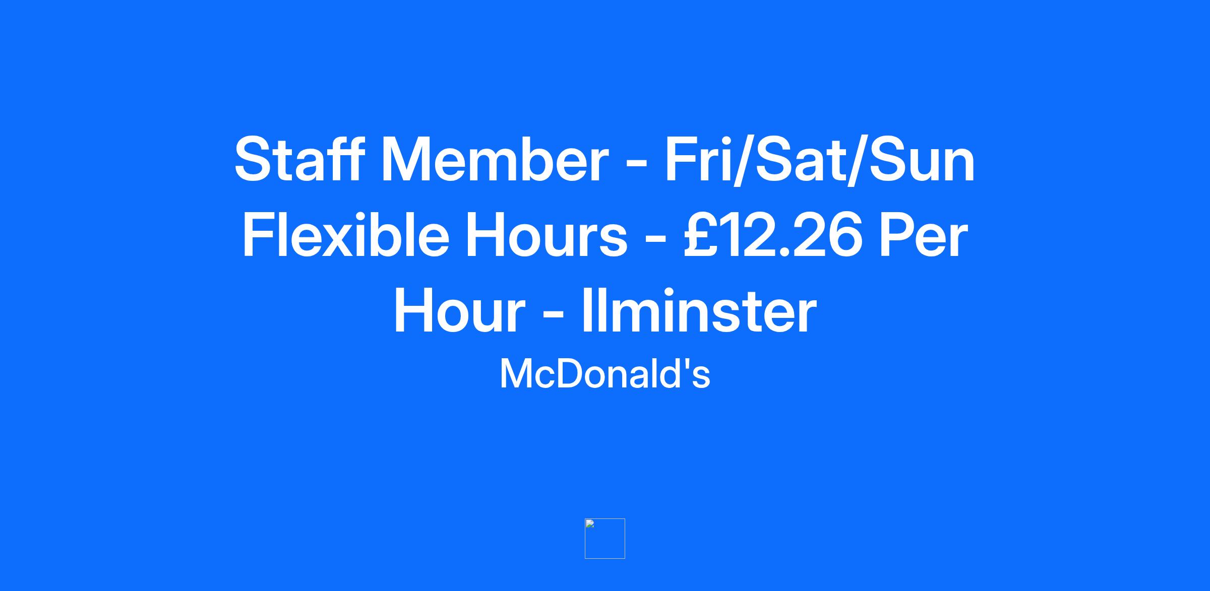 Staff Member - Fri/Sat/Sun Flexible Hours - £12.26 Per Hour - Ilminster