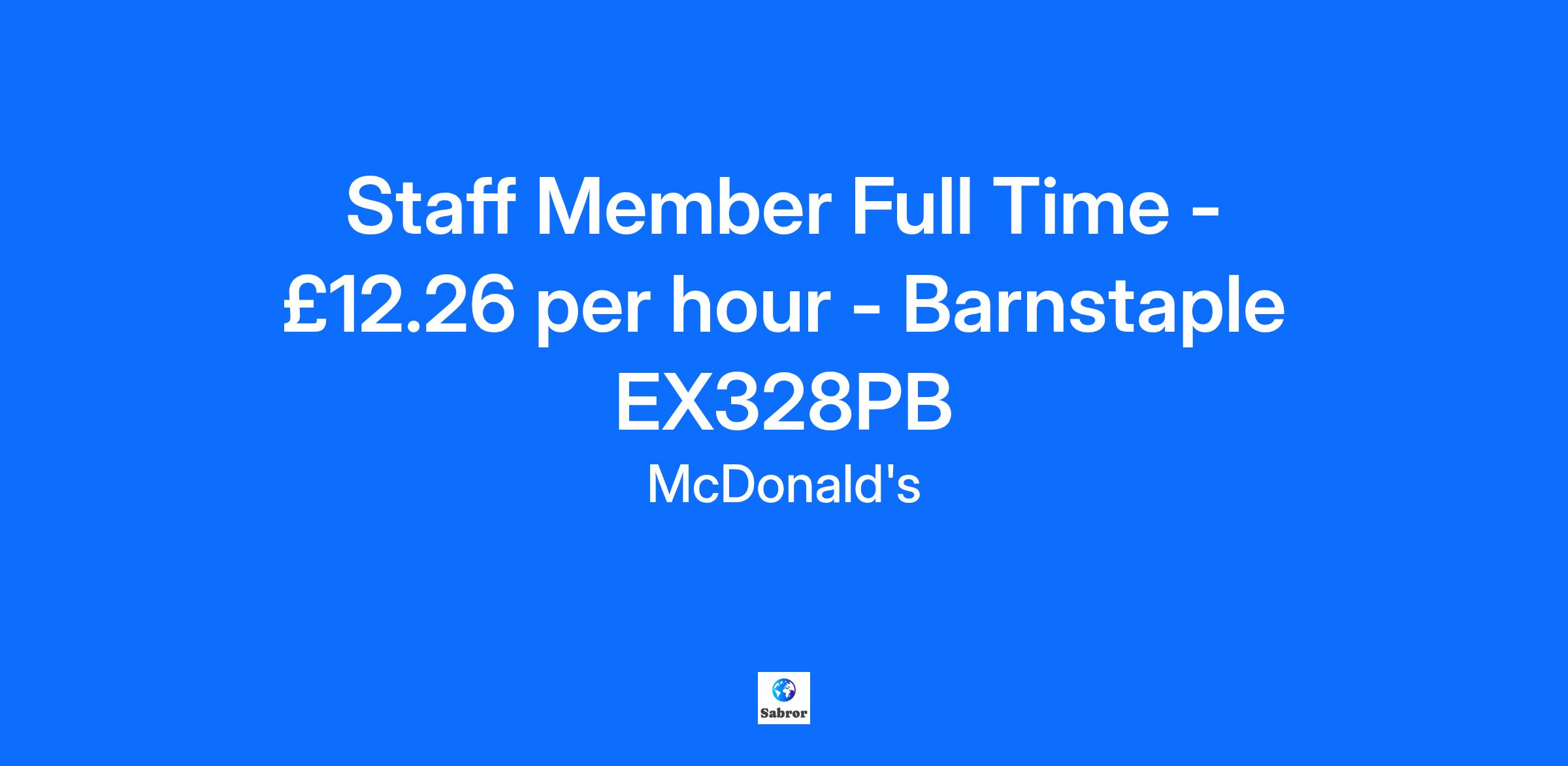 Staff Member Full Time - £12.26 per hour - Barnstaple EX328PB