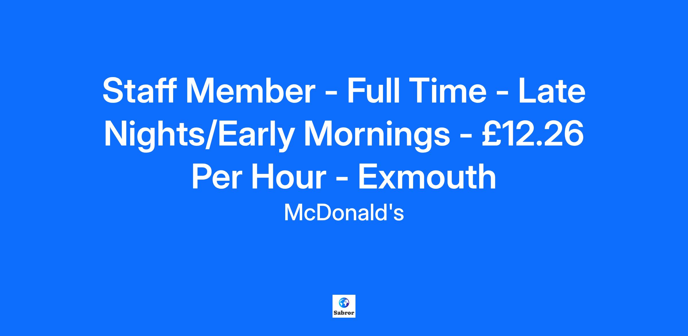Staff Member - Full Time - Late Nights/Early Mornings - £12.26 Per Hour - Exmouth