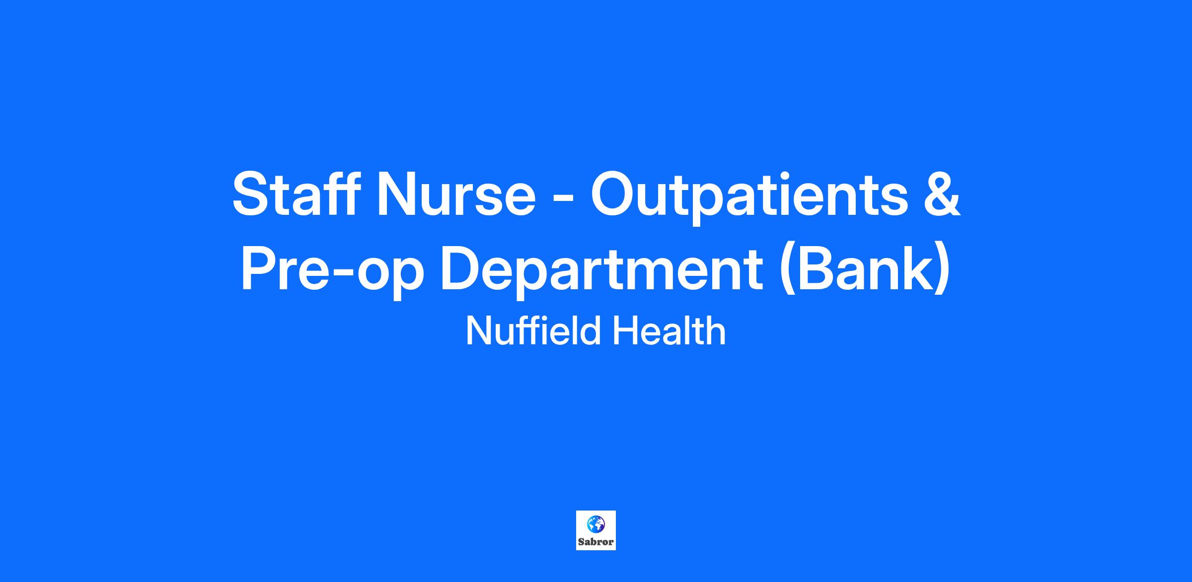 Staff Nurse - Outpatients & Pre-Op Department (Bank) Glasgow Hospital | Outpatients & Pre-op | Bank Contract | Ad-hoc Includes Evening & Weekend Work Up to £25 per hour, depending on experience Nuffield Health is the UK’s largest Healthcare Charity. From our innovative healthcare and leisure facilities to our flagship community access programmes, we’re committed to building a healthier nation. Inside our award-winning hospitals, this starts with commitment to quality and the highest standards of patient care. It starts with you. As a Staff Nurse in Outpatients & Pre-op at our Glasgow Hospital, you’re registered with the appropriate governing body. You bring the qualifications and experience that are relevant to your registration, including NMC. You’re also motivated to understand each case from a technical and personal viewpoint. And you hold post-registration experience. As an Outpatients & Pre-op Staff Nurse, you will: Show your passion for delivering excellent patient care Manage a varied and interesting caseload in Outpatients services Take part in a wide range of procedures and apply your clinical skills to aid recovery Instinctively meet the needs of patients and their families, offering comfort and reassurance Work with practitioners in other areas to ensure continuity in patient care Enjoy more time to care and get to know your patients Helping you feel good. We want you to love coming to work, feeling healthy, happy and valued. That’s why we’ve developed a benefits package with you in mind. From Holiday in line with the Working Time Directive, Access to our Pension Scheme and discounted gym membership at £25.00 a month. Working on the bank means you are not contracted to a set number of hours per week but instead work on an ad-hoc basis to suit the needs of the business and your availability. Nuffield Health Glasgow Hospital Located in the heart of the West End of Glasgow; you will be working at one of Scotland’s leading private hospitals. This year, we embarked on phase three of our multi-million-pound refurbishment, adding state of the art equipment like our Mako robotic arm for orthopedic surgery and a new ambulatory theatre. We have a special focus in the areas of orthopedics, spinal surgery, ophthalmology, weight loss surgery and cosmetic treatment. Join Nuffield Health and create the future you want, today. If you like what you see, why not start your application now? We consider applications as we receive them and reserve the right to close adverts early (for example, where we have received an unprecedented high volume of applications). So, it’s a good idea to apply right away to ensure you’re considered for this role. It starts with you. Nuffield Health, is the UK’s largest healthcare charity. For over 60 years, we’ve been working to make the UK fitter, healthier, happier and stronger. All for the public benefit. We do this through our family of 31 award-winning hospitals, 113 fitness and wellbeing centres, healthcare clinics and over a 100 workplace wellbeing services. As a charity, we invest all our income back in to our services, in to pioneering improvements in care, and most importantly, we invest in to our flagship programmes, which have been developed to help people who could normally afford or access our services. Its all part of our mission to give everyone the care they need and to build a healthier nation.