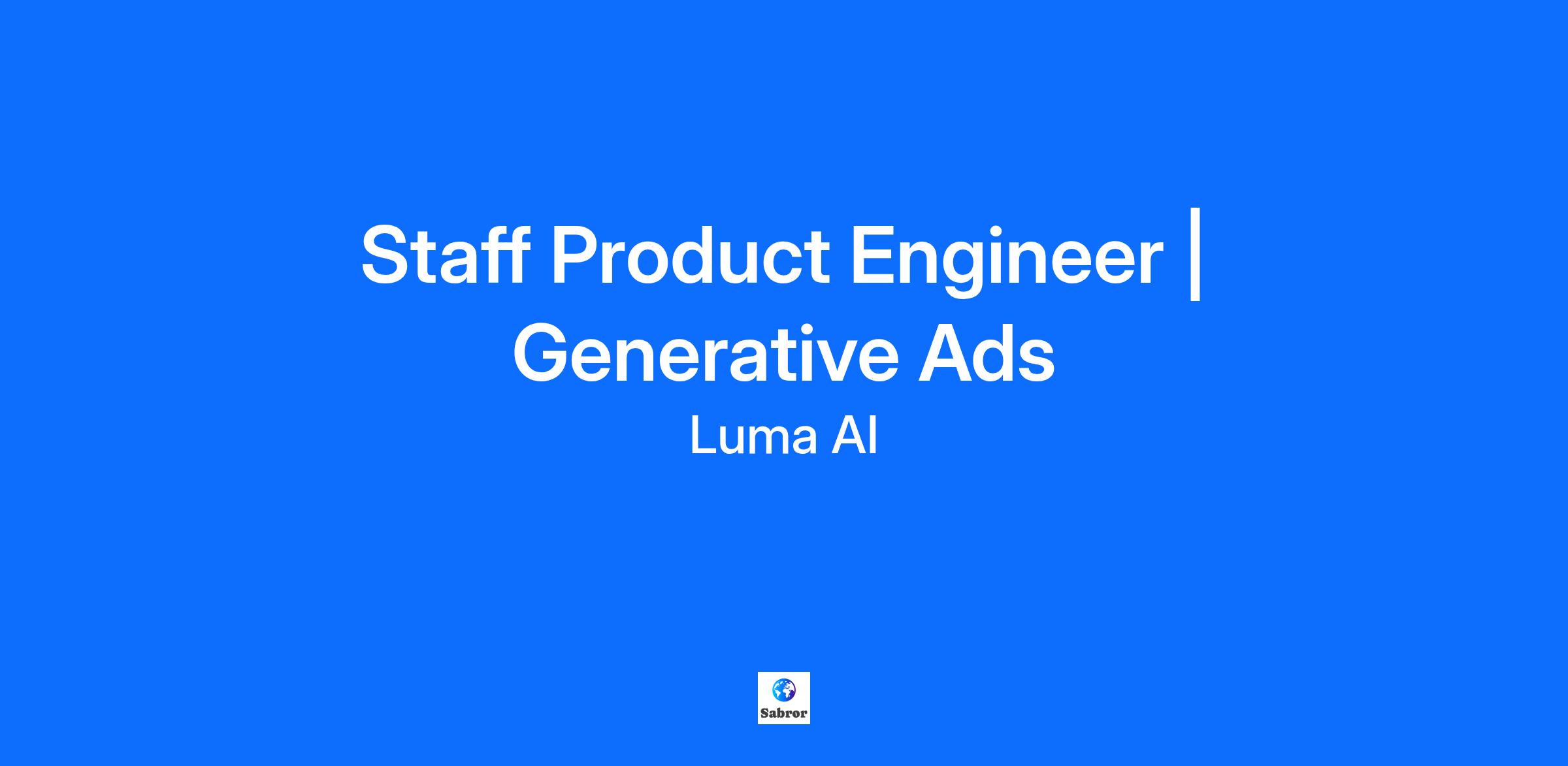 The Opportunity Luma AI is building the next era of AI with Omni models that can see, hear, and understand the world. As a full-stack company, we integrate research, engineering, and product into a single unified loop. This unique position allows us to deploy resources that few other companies can match to solve the hardest problems in multimodal intelligence. Where You Come In You will join the core engineering group to productionize novel research capabilities for a new high-impact product. This role requires an engineer who can translate the complexity of large vision-language models (VLMs) into magical user experiences. You will work directly with our research team to rapid-prototype and optimize inference pipelines that power automated creative workflows. What You Will Build Research-to-Product Pipelines: Build the systems that take frontier research concepts and turn them into reliable product capabilities, such as automated video generation and editing. Generative Feedback Loops: Design systems where real-time performance data informs the generation process, creating a continuous loop of creative improvement. Applied ML Strategy: Lead the technical definition of how we apply GenAI to the advertising domain, navigating trade-offs between model quality, latency, and control. The Profile We Are Looking For Applied AI Expert: You have hands-on experience with LLMs or GenAI tools and know how to leverage them to solve tangible product problems. Research Collaboration: You are comfortable operating in a fast-paced environment where engineering influences research, and you want to be in the room where core decisions are made. Ads Intuition: You understand the core metrics that drive value for advertisers and can translate creative quality into technical evaluation metrics.