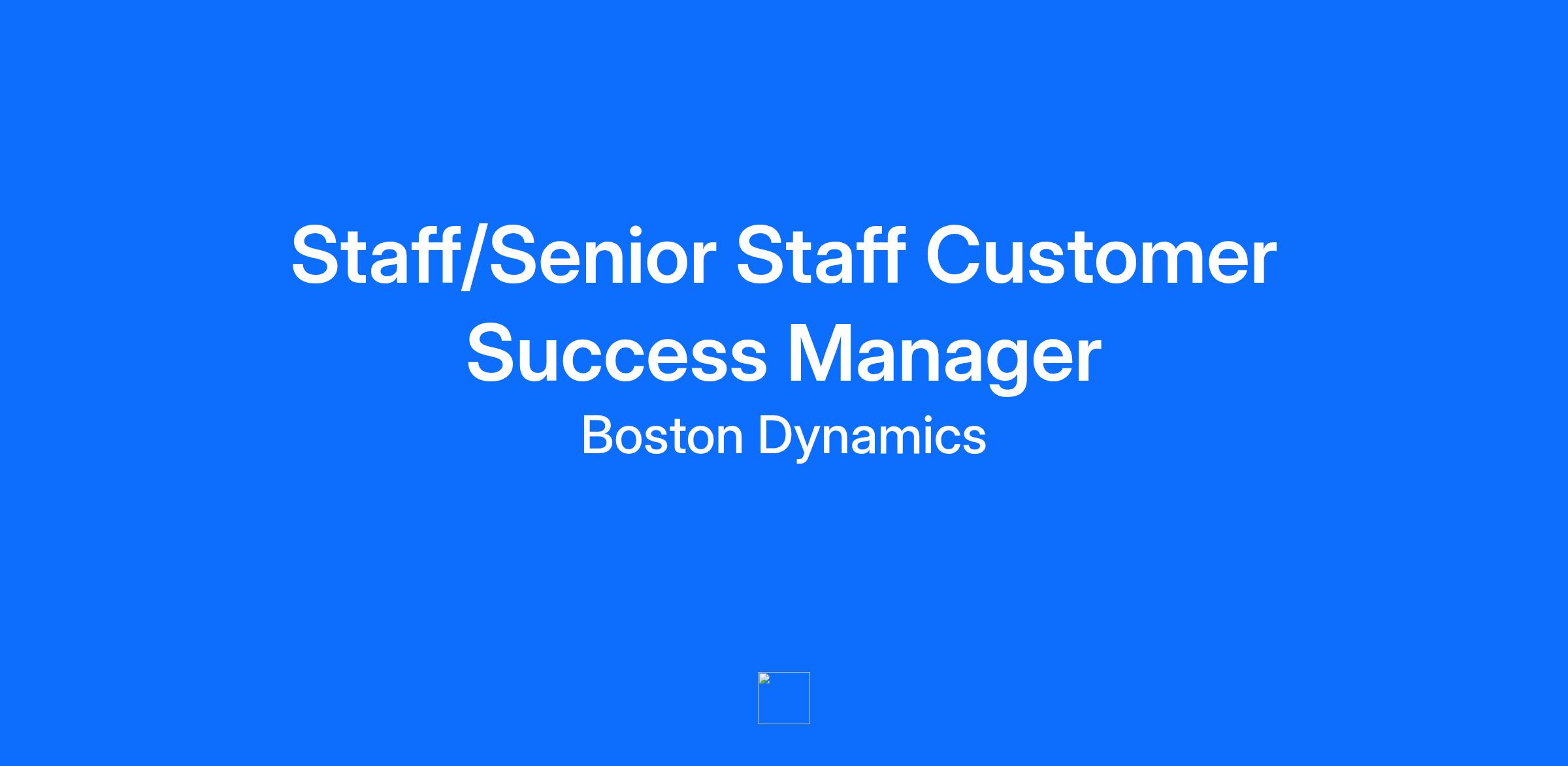 We are seeking a highly motivated, self-starting, and customer-focused Customer Success Manager to join our growing team. This role is crucial in ensuring our clients achieve their desired impact and value from our robotic solutions. You will be trusted to advocate for Boston Dynamics to the customer, and equally, to be the customer's advocate internally. You will thrive working in ambiguity, driving success with minimal oversight. As a strategic partner to our customers, you will play a key role in helping them adopt cutting-edge technology and realize its full potential. Key Responsibilities Serve as the ongoing relationship lead for strategic accounts, maintaining ongoing post-sale engagement to ensure satisfaction and retention. Lead regular client meetings, Quarterly Business Reviews and issue-resolution discussions with minimal oversight. Conduct onsite visits with customers to build relationships and better understand their robotics applications. Build and maintain strong relationships with customer stakeholders; serve as a trusted advisor in their robotics journey Collaborate with Sales to identify upsell opportunities and support strategic account planning, ensuring high customer retention and expansion. Build strong cross-functional partnerships to support product feedback loops, service innovation, and continuous improvement, serving as a champion for customer needs within the company. Responsible for skillfully managing relationships with both internal teams and external customer stakeholders, ensuring effective communication and alignment to achieve customer goals Analyze client performance data and service trends to identify improvement areas and advocate for process and product improvements, leveraging data to understand customer needs and drive positive outcomes. Contribute to the design and rollout of the broader Customer Success organization including processes, tools, and customer playbooks Serve as an escalation point for client issues and partner with internal teams to develop resolution strategies, acting as a critical bridge between customers and internal teams. This involves aligning internal teams to resolve complex customer challenges. Knowledge, Skills & Abilities Deep expertise in Customer Success Management and service delivery best practices, with proven ability to manage customer relationships and drive customer satisfaction with complex, highly technical products Strong analytical skills with the ability to interpret client data and propose actionable recommendations. Analytical capabilities with a knack for leveraging data to understand customer needs and drive positive outcomes. Proven ability to influence internal stakeholders and lead through complex client issues. Exceptional skills in stakeholder management (internal and external) and a proven ability to synthesize complex concepts and challenges. Skilled in managing multiple priorities and dynamic customer environments independently. Advanced communication and presentation skills, including executive-level interactions. Strong communication and interpersonal skills, with the ability to engage and influence both internal teams and external partners. Proficiency with CRM tools and client success platforms; familiarity with analytics/reporting tools is a plus. Experience mentoring peers or junior staff in a professional setting. Basic Qualifications for Staff Customer Success Manager Minimum 5 years of experience in customer relationship management, client success, or strategic account support. Minimum of 3 years of experience in a customer-facing role within the technology, robotics, or related industry. Track record of managing complex accounts and leading client-facing initiatives. Experience in cross-functional project work and continuous service improvement efforts. Previous experience in coaching or mentoring capacity preferred. Ability to travel as needed (up to 50% domestically and internationally). Basic Qualifications for Senior Staff Customer Success Manager Minimum 8 years of experience in customer relationship management, client success, or strategic account support. Minimum of 5 years of experience in a customer-facing role within the technology, robotics, or related industry. Track record of managing complex accounts and leading client-facing initiatives. Experience in cross-functional project work and continuous service improvement efforts. Previous experience in coaching or mentoring capacity preferred. Ability to travel as needed (up to 50% domestically and internationally). Staff Level Base Salary Range: $$99,554.86 - $136,887.93 Senior Staff Base Level Salary Range: $131,763.78 - $181,175.20 Base pay will depend on multiple individualized factors, including, but not limited to, internal equity, job-related knowledge, skills, and experience. This range represents a good-faith estimate of compensation at the time of posting. Boston Dynamics offers a generous Benefits package including medical, dental, vision, 401(k), paid time off, and an annual bonus structure. Additional details regarding these benefit plans will be provided if an employee receives an offer for employment. We are interested in every qualified candidate who is eligible to work in the United States. However, we are not able to sponsor visas for this position. #LI-CG1 We are growing rapidly, building a commercial company that delivers cutting edge technology and solutions to our customers from industrial applications to logistics and warehouse solutions.