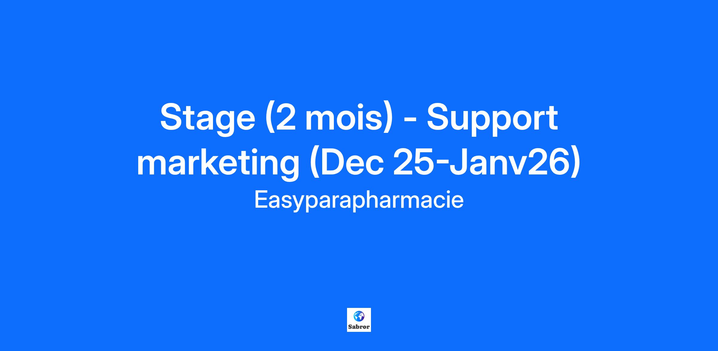Rejoignez Easypara, Leader Innovant de la Parapharmacie en Ligne Depuis 18 ans, Easypara s’impose comme un acteur majeur de la parapharmacie en ligne, facilitant ainsi la vie de nombreuses familles. Notre succès est le résultat d’une collaboration unique entre pharmaciens, logisticiens et spécialistes du e-commerce. Au cœur de notre réussite, notre équipe de plus de 60 professionnels incarne nos valeurs d’engagement, de motivation et de dynamisme. Ensemble, nous partageons une vision commune : rendre notre entreprise toujours plus performante et agile. En constante évolution, notre structure est animée par une dynamique de développement exceptionnelle et une multitude de projets innovants. Chez nous, l’ennui n’existe pas ! Notre engagement envers le bien-être de nos collaborateurs est souligné par notre certification GREAT PLACE TO WORK®, obtenue pour la 4ème année consécutive. Rejoignez l’équipe Easypara, où innovation et collaboration sont les piliers de notre culture. Nous offrons un environnement dynamique, combinant l’esprit d’une start-up à la robustesse d’une entreprise leader. Chaque membre de notre équipe joue un rôle clé dans notre succès. Si vous êtes prêt à relever des défis stimulants et à vous épanouir professionnellement, explorez nos offres d’emploi et embarquez dans une aventure passionnante. OPPORTUNITÉ DE CARRIÈRE : Stagiaire marketing VOS MISSIONS : Dans le cadre d’un renfort de l’équipe marketing, nous recrutons un stagiaire afin de participer à différentes tâches opérationnelles et soutenir les équipes. Tes missions principales seront : Participer aux différentes missions du service marketing : création de bannières publicitaires rédaction de newsletters rédaction de reporting d’indicateurs de mesure rédaction de textes SEO PROFIL RECHERCHÉ : Tu es en licence ou en master communication et/ou marketing digital Tu as une excellente maîtrise du français Tu connais le e-commerce et/ou tu possèdes un fort intérêt pour le secteur Qualités Chez Easyparapharmacie, le savoir-être est aussi important que le savoir-faire, à ce titre il fait partie intégrante des critères de recrutement et est indispensable à l’accomplissement de tes missions et ton épanouissement au sein de l’entreprise. A ce titre tu sauras te démarquer par ta capacité d’adaptation, et d’apprentissage, ton enthousiasme, ta maîtrise du multitâches, et ta curiosité. Démarrage: au plus vite
