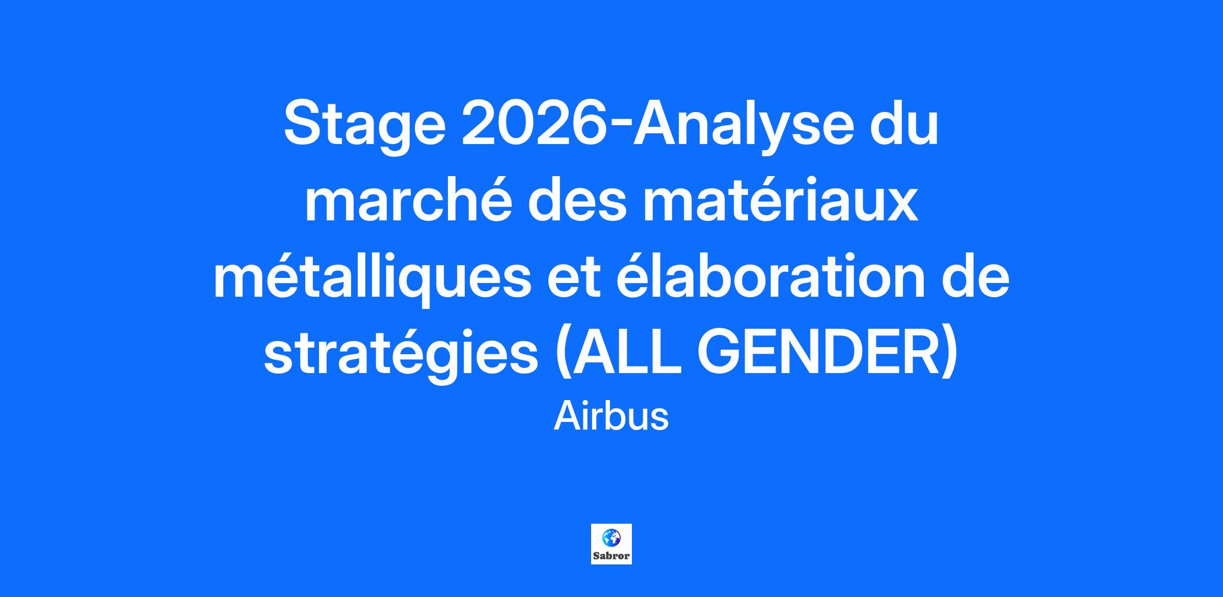 Job Description: Envie de déployer vos ailes ? Et si votre aventure commençait avec nous ? Quel que soit le métier de vos rêves, nous avons peut-être le stage qu’il vous faut ! Vous êtes étudiant(e) et à la recherche d'un stage ou d'une année de césure vous permettant de valider votre diplôme et qui fera décoller votre carrière ? Imaginez-vous au cœur d’une entreprise reconnue à l’international, implantée sur tous les continents du monde et riche d’une diversité de parcours, d’expertise et de culture. Tournée vers le digital, à la pointe de la recherche et de l’innovation, vous avez l’opportunité de faire partie de cette aventure passionnante. Votre mission, si vous l'acceptez : Une nouvelle opportunité de stage vient de s’ouvrir au sein du département Matériaux Métalliques, en charge de l'approvisionnement de toutes les matières premières métalliques, forgings, castings et fasteners pour toutes les Business Units d'Airbus et nombre de leurs sous-traitants. Au sein de l'équipe Achats de Matériaux Métalliques, nous avons pour objectif de diversifier notre base de fournisseurs et de renforcer la résilience et la compétitivité de notre chaîne d'approvisionnement dans les années à venir. C'est pourquoi nous proposons un stage de six mois pour piloter un projet stratégique sur l'approvisionnement mondial en matériaux métalliques. Votre stage consistera à réaliser une étude de marché détaillée, sur l'ensemble du périmètre de notre département, afin d'identifier et d'analyser de nouveaux fournisseurs potentiels à l'échelle mondiale. Ce projet soutiendra la définition de notre stratégie d'approvisionnement à long terme en fournissant des informations clés pour sécuriser une chaîne d'approvisionnement robuste et pérenne. Ce stage, d'une durée de 6 mois, débutera idéalement en Février 2026 (cette période est indicative et pourra être ajustée). Vos principales missions consisteront à : - Cartographie des fournisseurs mondiaux : Mener une recherche de marché à l'échelle mondiale pour identifier et créer une liste de fournisseurs potentiels de nouveaux matériaux métalliques, en se concentrant sur les régions clés et les marchés émergents. - Sélection des fournisseurs : Développer une matrice de sélection pour évaluer les fournisseurs en fonction de leurs capacités techniques, de leur solidité financière et de leur respect des certifications de qualité. - Analyse des risques et des opportunités : Évaluer les risques géopolitiques, logistiques et opérationnels pour chaque nouveau fournisseur et analyser son potentiel à améliorer notre chaîne d'approvisionnement. - Analyse comparative des coûts et de la compétitivité : Comparer les prix et le coût total de Airbus Amber classified per A/M1044 possession (TCO) des fournisseurs potentiels par rapport à la performance de notre chaîne d'approvisionnement actuelle. - Rapport final et présentation : Synthétiser toutes les conclusions dans un rapport complet et une présentation de niveau direction, proposant une liste restreinte de fournisseurs recommandés, un plan d'action et une feuille de route. Votre tuteur ou tutrice vous accompagnera tout au long de votre stage, vous aidant à développer vos compétences et à atteindre vos objectifs professionnels. Ce stage vous permettra notamment de développer les compétences suivantes : ● Achats et chaîne d'approvisionnement ● Gestion de projet ● Analyse stratégique ● Synthèse de données et reporting ● Gestion des parties prenantes ● Communication transversale Votre carte d’embarquement pour cette aventure : Vous êtes actuellement en Master 2, 5ème année d'école de commerce, d’école d’ingénieur ou équivalent. Vous possédez idéalement les compétences suivantes : ● Compétences techniques : ○ Gestion de projet ○ Notions de base en finance ○ Gestion de la chaîne d'approvisionnement et achats sont un plus ○ Google suite ● Compétences non techniques (Soft Skills) : ○ Proactif et autonome ○ Compétences en communication et en présentation ○ Compétences en coordination et en relations interpersonnelles ○ Structuré(e) et capacité à mener le changement ○ Curiosité et goût pour l'analyse de données ● Compétences linguistiques : ○ Anglais : niveau négociation ○ Français : niveau avancé Notre processus de recrutement : Votre candidature sera analysée attentivement par notre équipe de recrutement. Si votre profil correspond à nos attentes, vous serez invité(e) à réaliser un entretien vidéo. Suite à cette étape, si votre candidature est retenue, elle sera alors proposée au manager pour un entretien. Envie de faire partie de l'aventure Airbus ? Postulez dès maintenant et rejoignez-nous! --------------------------------------------------------------------------------------------------------------------------------- Feeling ready to spread your wings ? What if your adventure started with us? Whatever your dream job, we might have the internship for you! Are you a student looking for an internship that will validate your degree and launch your career? Imagine yourself at the heart of an internationally recognized company, established on every continent, and rich in diverse backgrounds, expertise, and cultures. Focused on digital and at the forefront of research and innovation, you have the opportunity to be part of this exciting adventure. Your Mission: A new internship opportunity has just opened in the Metallic Material department, in charge of supplying all metallic raw materials, forgings, casings and fasteners for all Airbus Business Units and many of their subcontractors on the other hand. In the department of Metallic Material Procurement, we have the objective of diversifying our supplier base and enhancing our supply chain resilience and competitiveness in the upcoming years. Therefore, we propose a six-month internship to lea