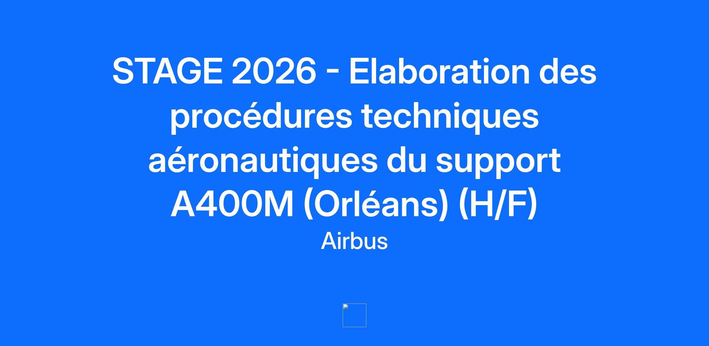 Job Description: Une offre de stage intitulée « STAGE 2026 - Elaboration des procédures techniques aéronautiques du support A400M (Orléans) (H/F) » vient de s'ouvrir au sein d'Airbus Defence and Space sur la base d’Orléans. Vous rejoindrez le centre de support A400M en charge de supporter les activités du client (logistiques, pannes techniques, veille technologiques, préparation et suivi des activités de maintenance, management des outillages. Votre stage consistera à écrire toutes les procédures qui sont liées aux activités techniques de l’équipe d’Orléans. A ce jour, la caractérisation des processus a été établie, il reste à mettre en place les procédures de ce secteur. Ce stage d’une durée de 6 mois commencera début 2026 (date de démarrage modifiable). Ce poste nécessite une habilitation de sécurité ou nécessite d'être éligible à une habilitation par les autorités reconnues. Tâches et responsabilités : Votre tuteur/tutrice vous aidera à identifier vos objectifs professionnels et vous accompagnera dans le développement de vos compétences. Vos principales activités seront les suivantes : Compréhension des process aéronautiques en place des activités. Proposer des améliorations pour simplifier les activités. Rédaction des procédures associées à chaque secteur pour les pérenniser. Ce stage vous permettra notamment de développer les compétences suivantes : Services support client (customer Satisfaction) Participer au monde opérationnel tout en étant lié à une grosse entreprise comme Airbus Se perfectionner dans le milieu aéronautique en management de projet Se perfectionner dans la langue Anglaise (technique orale et écrite) Votre carte d’embarquement : Vous préparez actuellement un diplôme de niveau Bac +5 (ou équivalent) orienté qualité, rédaction de process, complété d'un stage dans un environnement industriel exigent. Vous possédez les compétences suivantes : Rédaction de procédure et esprit de synthèse Management de projet Compétences aéronautiques Soft Skills: Esprit d'équipe, Communication, Analytical thinking Compétences linguistiques: Anglais : avancé Français : courant This job requires an awareness of any potential compliance risks and a commitment to act with integrity, as the foundation for the Company’s success, reputation and sustainable growth. Company: Airbus Defence and Space SAS Employment Type: Internship ------- Experience Level: Student Job Family: Quality Management System By submitting your CV or application you are consenting to Airbus using and storing information about you for monitoring purposes relating to your application or future employment. This information will only be used by Airbus. Airbus is committed to achieving workforce diversity and creating an inclusive working environment. We welcome all applications irrespective of social and cultural background, age, gender, disability, sexual orientation or religious belief. Airbus is, and always has been, committed to equal opportunities for all. As such, we will never ask for any type of monetary exchange in the frame of a recruitment process. Any impersonation of Airbus to do so should be reported to emsom@airbus.com. At Airbus, we support you to work, connect and collaborate more easily and flexibly. Wherever possible, we foster flexible working arrangements to stimulate innovative thinking. Airbus pioneers sustainable aerospace for a safe and united world. The Company constantly innovates to provide efficient and technologically-advanced solutions in aerospace, defence, and connected services. In commercial aircraft, Airbus offers modern and fuel-efficient airliners and associated services. Airbus is also a European leader in defence and security and one of the world's leading space businesses. In helicopters, Airbus provides the most efficient civil and military rotorcraft solutions and services worldwide. From sending your resume to participating in successful interviews, here you can access all important pieces of information to guide you in your candidate journey. 👉 Learn more