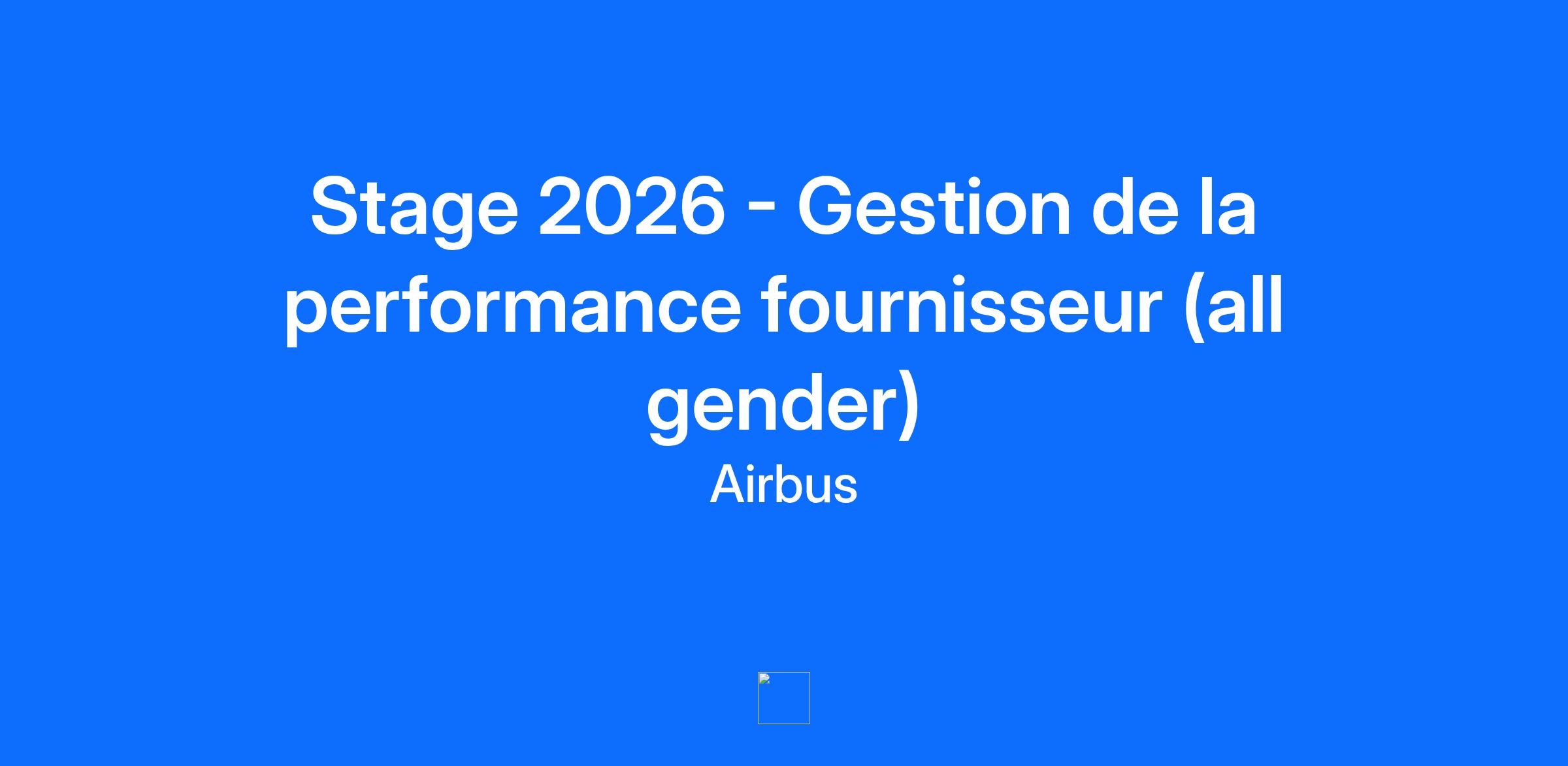 Job Description: En quête d’une première expérience qui fait la différence ? Ce stage chez Airbus Atlantic pourrait bien être le début d’un grand voyage. Nous sommes un leader mondial sur le marché des aérostructures, des sièges pilotes et des fauteuils passagers premium. Dans le cadre d'un cursus scolaire en formation initiale, vous recherchez un stage obligatoire ou intégré dans une année de césure, d'une durée allant de 4 à 6 mois maximum, vous permettant de valider votre année. Une offre de stage intitulée « Stage 2026 - Gestion de la performance fournisseur (all gender)» vient de s'ouvrir au sein d’Airbus Atlantic sur le site de Montoir de Bretagne. Cette mission débutera en janvier 2026 (date sujette à flexibilité) pour une durée de 6 mois. Retrouvez Airbus Atlantic en vidéo et la Présentation du site de Montoir de Bretagne Tâches et responsabilités : Vous rejoindrez une équipe de 15 personnes en charge de concevoir, construire, opérer et maintenir les biens immobiliers, les infrastructures et les installations techniques. Encadré par votre tuteur, vous développerez vos compétences en travaillant sur les activités suivantes : Etudier l'existant Analyser les missions des prestations Capitaliser les informations dans les cahiers des charges Synthétiser les données disponibles concernant ces prestations Rechercher des solutions existantes de suivi de la performance Etablir un diagnostic des forces et faiblesses du suivi en place Proposer une solution de monitoring de la performance Parlons de VOUS ! Vous préparez actuellement un diplôme de niveau Bac +5 (ou équivalent) dans le domaine du management des achats et de la qualité fournisseur ou une discipline apparentée. Vous avez les connaissances et compétences suivantes : Solide compétence en communication Bon sens relationnel Capacité d’analyse Savoir être : Curiosité, Esprit d'équipe, Bonne communication,Capacité d'adaptation Anglais : avancé Français : avancé Vous pourrez, selon les offres proposées, être amené(e) à vous déplacer. Parlons de NOUS ! Rejoindre Airbus Atlantic en tant que stagiaire, c'est : Participer à des projets ambitieux, à la pointe de la technologie, visant à construire l’avion de demain tout en répondant aux défis environnementaux, Acquérir des compétences dans un environnement dynamique qui encourage la créativité et l'initiative, avec une approche entrepreneuriale, Évoluer au sein d'une organisation solidaire, qui valorise la proximité et l'humain. Notre processus de sélection Toutes les candidatures seront soigneusement examinées par un recruteur. Si votre candidature est présélectionnée, vous serez invité à réaliser un entretien vidéo afin de vous présenter. Après évaluation, les candidats retenus seront contactés pour un entretien avec le manager ou le tuteur qui procédera alors à la sélection finale. This job requires an awareness of any potential compliance risks and a commitment to act with integrity, as the foundation for the Company’s success, reputation and sustainable growth. Company: Airbus Atlantic Contract Type: Final-year Thesis ----- Experience Level: Student Job Family: Support to Management By submitting your CV or application you are consenting to Airbus using and storing information about you for monitoring purposes relating to your application or future employment. This information will only be used by Airbus. Airbus is committed to achieving workforce diversity and creating an inclusive working environment. We welcome all applications irrespective of social and cultural background, age, gender, disability, sexual orientation or religious belief. Airbus is, and always has been, committed to equal opportunities for all. As such, we will never ask for any type of monetary exchange in the frame of a recruitment process. Any impersonation of Airbus to do so should be reported to emsom@airbus.com. At Airbus, we support you to work, connect and collaborate more easily and flexibly. Wherever possible, we foster flexible working arrangements to stimulate innovative thinking. Airbus pioneers sustainable aerospace for a safe and united world. The Company constantly innovates to provide efficient and technologically-advanced solutions in aerospace, defence, and connected services. In commercial aircraft, Airbus offers modern and fuel-efficient airliners and associated services. Airbus is also a European leader in defence and security and one of the world's leading space businesses. In helicopters, Airbus provides the most efficient civil and military rotorcraft solutions and services worldwide. From sending your resume to participating in successful interviews, here you can access all important pieces of information to guide you in your candidate journey. 👉 Learn more