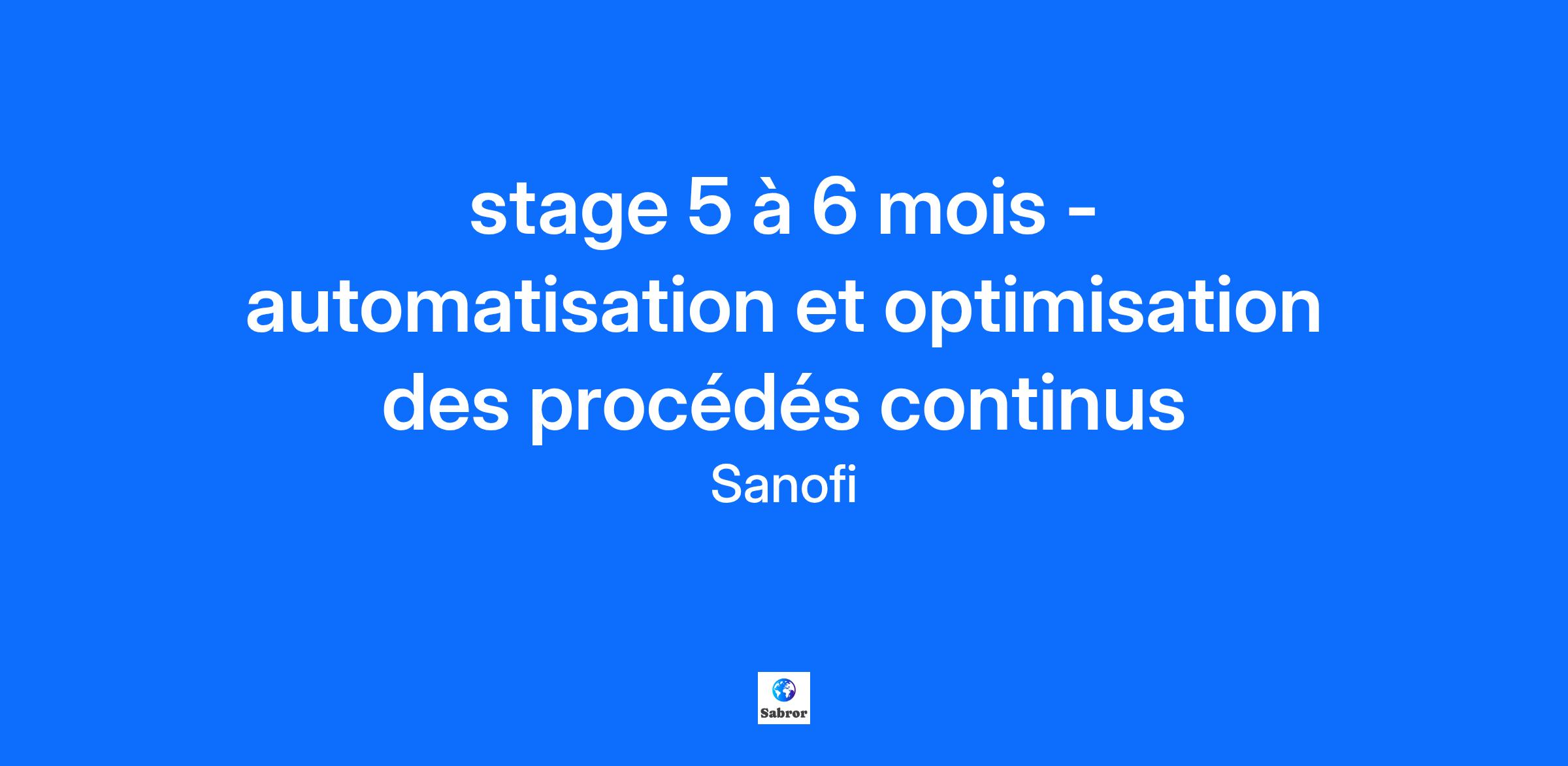 Intitulé du poste: stage 5 à 6 mois - automatisation et optimisation des procédés continus Lieu : Sisteron A partir de : janvier À propos du poste En tant que stagiaire en automatisation et optimisation des procédés continus au sein des équipes R&D dans un laboratoire Génie des Procédés, vous participerez à l’optimisation des procédés continus en R&D chimique par l'automatisation des installations et le développement d'algorithmes d'analyse de données à l'échelle du laboratoire dans l’optique d’une industrialisation. Prêt à commencer ? Prêt(e) à développer tes compétences tout en participant à l’avenir de la santé ? Chez Sanofi, tu auras la liberté d’apprendre, de poser des questions et de donner vie à tes idées, le tout soutenu par des mentors inspirants et des équipes collaboratives. À propos de Sanofi : Sanofi est une entreprise biopharmaceutique qui innove en R&D et exploite l'IA à grande échelle pour améliorer la vie des gens et créer de la croissance à long terme. Notre compréhension approfondie du système immunitaire – et notre pipeline innovant – nous permet d’inventer des médicaments et des vaccins qui traitent et protègent des millions de personnes dans le monde entier. Ensemble, nous poursuivons les miracles de la science pour améliorer la vie des gens. Principales responsabilités : Participer à l’automatisation d’une installation de chimie en continu Prendre part à la mise en œuvre d’algorithmes d’optimisation dans le cadre de l’élaboration d’une stratégie de développement des procédés continus Contribuer à la récupération et le traitement des données issues des analyses Collaborer avec le pôle automatisation dans la réalisation de vos missions À propos de vous Compétences techniques et relationnelles : autonomie, rigueur, curiosité. Connaissance de python et de l’environnement labview. Intérêt pour le digital. Éducation : bac +4 ou +5 en informatique industrielle ou informatique Langues : anglais intermédiaire Pourquoi nous choisir ? Lance ta carrière dans une entreprise qui investit en toi, et te donne les moyens de réinventer ce qui est possible. Construis ton avenir avec les outils les plus récents, l’innovation digitale et un apprentissage continu pour toujours garder une longueur d’avance. Évolue dans une entreprise engagée où ta voix compte et où ton travail améliore la vie de millions de personnes. Épanouis-toi dans des environnements inclusifs et flexibles qui soutiennent ton bien-être personnel et professionnel. Une gratification de stage attractive. Selon votre site de rattachement, l’accès à un restaurant d’entreprise avec une participation de Sanofi. Notre processus de recrutement a été pensé pour être rapide et efficace. Si votre candidature est retenue, vous recevrez un appel de notre recruteur.se pour un premier échange téléphonique puis pour rencontrer rapidement le ou la manager. Toujours Progresser. Découvrir l’Extraordinaire. Rejoignez Sanofi et entrez dans une nouvelle ère de la science – où votre parcours peut être aussi transformateur que le travail que nous accomplissons. Nous investissons en vous pour que vous alliez plus loin, accélériez votre réflexion et accomplissiez ce qui n’a jamais été fait auparavant. Vous contribuerez à repousser les limites, à bousculer les conventions et à concevoir des solutions plus intelligentes pour les communautés que nous servons. Prêt·e à poursuivre les miracles de la science et à améliorer la vie des gens ? Poursuivons le progrès et découvrons l’extraordinaire – ensemble. Chez Sanofi, nous croyons dans l’égalité des chances, sans distinction de race, de couleur, d’ascendance, de religion, de sexe, d’origine, d’orientation sexuelle, d’âge, de citoyenneté, d’état civil, de handicap, d’identité de genre ou de tout autre critère protégé par la loi. Pursue progress, discover extraordinary Better is out there. Better medications, better outcomes, better science. But progress doesn’t happen without people – people from different backgrounds, in different locations, doing different roles, all united by one thing: a desire to make miracles happen. So, let’s be those people. At Sanofi, we provide equal opportunities to all regardless of race, colour, ancestry, religion, sex, national origin, sexual orientation, age, citizenship, marital status, ability or gender identity. Watch our ALL IN video and check out our Diversity Equity and Inclusion actions at sanofi.com! Global Terms & Conditions and Data Privacy Statement Sanofi is dedicated to supporting people through their health challenges. We are a global biopharmaceutical company focused on human health. We prevent illness with vaccines, provide innovative treatments to fight pain and ease suffering. We stand by the few who suffer from rare diseases and the millions with long-term chronic conditions. With more than 100,000 people in 100 countries, Sanofi is transforming scientific innovation into healthcare solutions around the globe. Discover more about us visiting www.sanofi.com or via our movie We are Sanofi As an organization, we change the practice of medicine; reinvent the way we work; and enable people to be their best versions in career and life. We are constantly moving and growing, making sure our people grow with us. Our working environment helps us build a dynamic and inclusive workplace operating on trust and respect and allows employees to live the life they want to live. All in for Diversity, Equity and Inclusion at Sanofi - YouTube