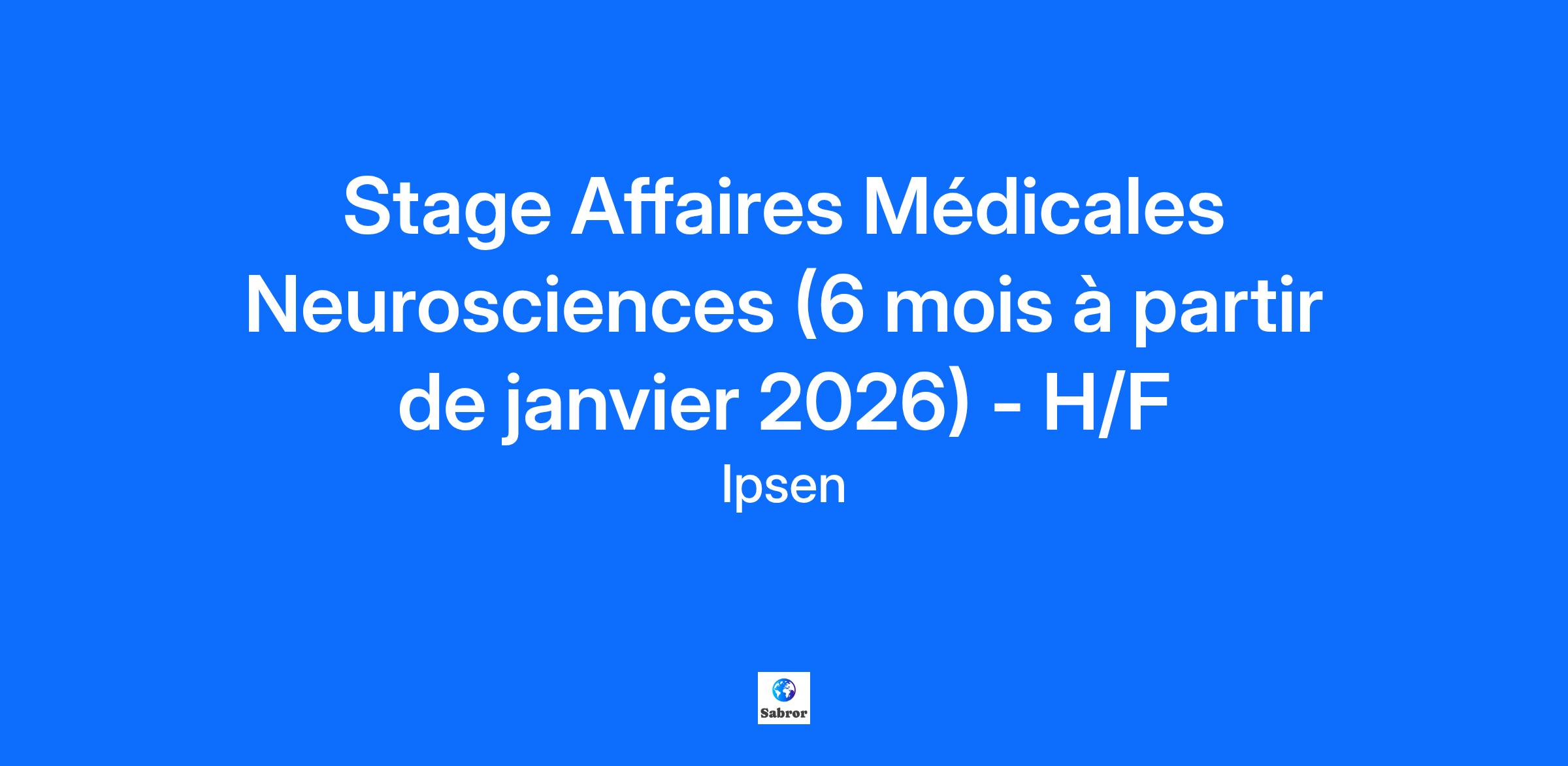 Title:Stage Affaires Médicales Neurosciences (6 mois à partir de janvier 2026) - H/F Company:Ipsen Pharma (SAS) About Ipsen: Ipsen is a mid-sized global biopharmaceutical company with a focus on transformative medicines in three therapeutic areas: Oncology, Rare Disease and Neuroscience. Supported by nearly 100 years of development experience, with global hubs in the U.S., France and the U.K, we tackle areas of high unmet medical need through research and innovation. Our passionate teams in more than 40 countries are focused on what matters and endeavor every day to bring medicines to patients in 88 countries. We build a workplace that champions human-centric leadership and fosters a culture of collaboration, excellence and impact. At Ipsen, every individual is empowered to be their true selves, grow and thrive alongside the company’s success. Join us on our journey towards sustainable growth, creating real impact on patients and society! For more information, visit us at https://www.ipsen.com/ and follow our latest news on LinkedIn and Instagram. Job Description: Rattaché au Directeur des affaires médicales Neurosciences/Maladies Rares, le stagiaire sera amené à travailler de façon transversale avec l’équipe médicale siège et terrain. Quelques déplacements sont possibles en région sur des congrès ou d’autres manifestations scientifiques organisées par IPSEN. Missions principales : 1/ Support opérationnel terrain (MSL) En coordination avec le MSL manager, préparation des diaporamas des MSL destinés aux Professionnels De Santé (PDS) Préparation des supports de communication destinés à la formation des MSL Aide à l’organisation logistique des Réunions d’Echanges Scientifiques (RES) régionales d’envergure Assurer une présence logistique à certaines RES Recueil, formalisation et analyse des insights provenant des PDS 2/ Support opérationnel siège (MAM) Aide à l’organisation de manifestations scientifiques nationales d’envergure (congrès scientifiques notamment) y compris la préparation des diaporamas ; En coordination avec le MAM, interagir avec certains PDS sur des projets spécifiques ; préparer des supports de communication destinés aux PDS Assurer une présence à certains congrès Recueil des demandes d’information médicale et déclaration des cas de pharmacovigilance s’il y a lieu Assurer une veille concurrentielle sur des sujets ciblés y compris la présentation de synthèses sous forme de diaporama Préparer certains documents destinés aux autorités de santé dans le cadre d’un accès précoce à un médicament Travailler en équipe pluridisciplinaire (vente, marketing, règlementaires, events excellence) sur des projets ciblés et être capable de présenter l’avancement en brand team Interactions avec le global (en anglais) sur des suivis de projets 3/ Préparation et participation aux réunions IPSEN : Préparation & participation à des réunions médicales internes Présence en séminaire / coordination avec les ventes – participation à la réflexion des plans opérationnels médicaux régionaux Expérience/ Qualification Profil Bac+5 formation scientifique / stage de fin d’études Médecin, Pharmacien , Ingénieur Anglais bon niveau souhaité Nous nous engageons à créer un lieu de travail où chacun se sent écouté, valorisé et soutenu, où nous incarnons « The Real Us*». La valeur que nous accordons aux différentes perspectives et expériences motive notre engagement en faveur de l'inclusion et de l'égalité des chances. Lorsque nous intégrons des modes de pensée diversifiés, nous prenons des décisions plus réfléchies et découvrons des solutions plus innovantes. Ensemble, nous nous efforçons de mieux comprendre les communautés que nous servons. Cela signifie que nous voulons également vous aider à donner le meilleur de vous-même lorsque vous postulez à un poste chez nous. Si vous avez besoin d'aménagements ou d'aide pendant le processus de candidature, veuillez en informer l'équipe de recrutement. Ces informations seront traitées avec soin et n'auront aucune incidence sur le résultat de votre candidature. *Soyons nous-même At Ipsen, each employee makes a real impact. Our teams are passionate about what they do because they care about making a difference in patients’ lives. We invest in our employees to support life-changing projects that create positive impact for patients and society. Introduce yourself to our recruiters and we'll get in touch if there's a role that seems like a good match. Learn more about careers with us