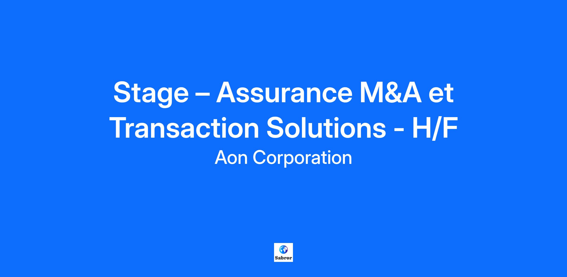 Stage – Assurance M&A et Transaction Solutions - H/F 6 mois (janvier-juin 2026) Vous souhaitez intégrer une équipe relevant chaque jour de nouveaux défis ? Vous souhaitez mettre à profit vos connaissances académiques dans le cadre d’un stage ? Rejoignez notre équipe M&A et Transaction Solutions ! Aon aide ses clients à prendre de meilleures décisions Chez Aon, nous accompagnons nos clients pour les protéger des différents risques, nous sommes à leur écoute pour les servir et leur apporter des solutions concrètes à forte valeur ajoutée. En tant qu’organisation, nous constituons une équipe inclusive et diversifiée, unie par la confiance. Nous avons pour volonté d’assurer la réussite de nos collaborateurs et de nos clients. Vos missions au quotidien : Dans le cadre du développement de notre activité Transaction Solutions, nous recherchons un(e) stagiaire souhaitant évoluer au cœur des opérations M&A et accompagner nos clients fonds d’investissement, corporates et cabinets d’avocats dans la mise en place de solutions d’assurance dédiées aux transactions. Le/la stagiaire interviendra en appui de l’équipe sur l’ensemble du processus de souscription, notamment : Analyse de documents juridiques (rapports de due diligence, SPA, documents fiscaux…) Préparation des soumissions et rédaction des supports destinés aux assureurs Échanges et coordination avec les assureurs durant les phases de revue et de souscription Accompagnement des clients : organisation des échanges, suivi des étapes clés, coordination des parties Pourquoi vous ne devez pas manquer cette opportunité En intégrant l’équipe M&A et Transaction Solutions, vous rejoindrez une équipe dynamique, engagée et collaborative, intervenant sur un large volume d’opérations, avec une exposition directe aux dossiers et aux enjeux M&A. Vos compétences et expériences qui feront votre succès Nous recherchons un(e) candidat(e) issu(e) d’un parcours juridique (droit des affaires, M&A, private equity) ou d’une école de commerce avec un fort intérêt pour les sujets juridiques et transactionnels. Vous êtes rigoureux(se), doté(e) de bonnes capacités d’analyse et d’excellentes qualités rédactionnelles. Vous avez un goût marqué pour le travail en équipe et la collaboration dans un environnement dynamique. Vous êtes curieux(se), impliqué(e) et désireux(se) d’évoluer dans un cadre exigeant et stimulant. Comment accompagnons-nous nos collaborateurs ? Aon propose, en plus de la rémunération fixe, un package global attractif composé d’avantages performants (mutuelle, participation, intéressement, télétravail, congés…). Nous créons un environnement de travail agile, inclusif et propice à l’innovation qui encourage chaque personne à donner le meilleur d’elle-même et à s’épanouir professionnellement. Tous les collaborateurs se sentent responsabilisés, connectés et valorisés ce qui leur permet de réaliser leur plein potentiel professionnel. De plus, nos collaborateurs sont incités chaque année à consacrer deux journées « Global Wellbeing Days » à leur bien être personnel. Aon a créé un environnement de travail apprenant qui permet à tous ses salariés de se développer en continu et d’acquérir de nouvelles compétences. Enfin nous sommes fiers d’être une société favorisant l’équité des chances où chacun peut s’épanouir de manière authentique. Aonrecrute! 2570588