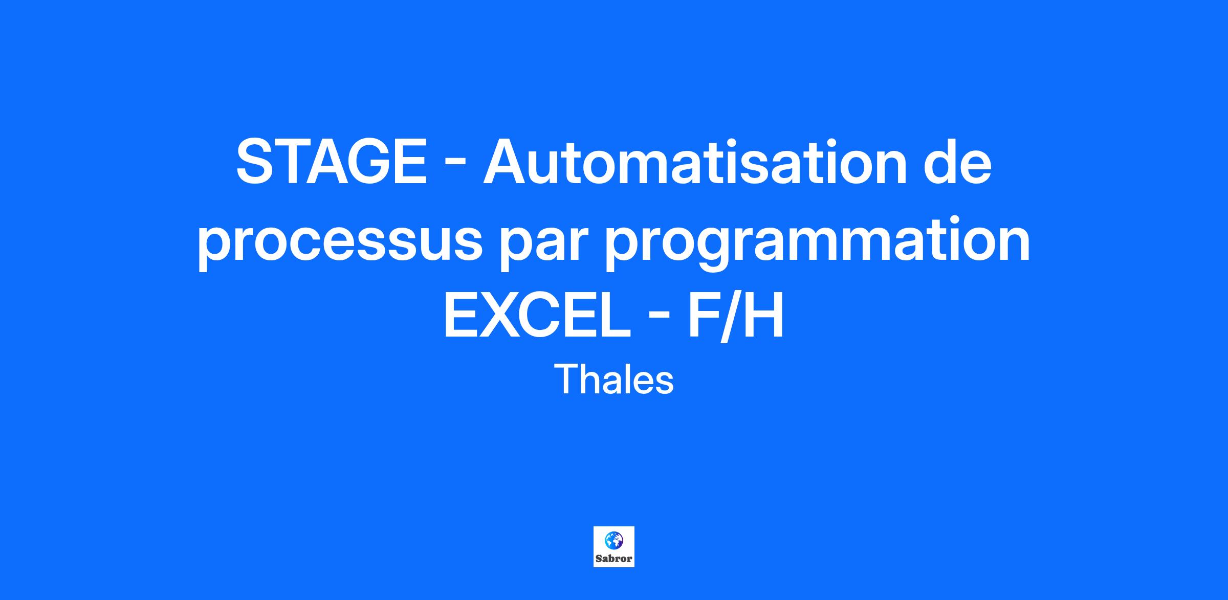 Lieu : Elancourt, France Construisons ensemble un avenir de confiance Thales est un leader mondial des hautes technologies spécialisé dans trois secteurs d’activité : Défense & Sécurité, Aéronautique & Spatial, et Cyber & Digital. Il développe des produits et solutions qui contribuent à un monde plus sûr, plus respectueux de l’environnement et plus inclusif. Le Groupe investit près de 4 milliards d’euros par an en Recherche & Développement, notamment dans des domaines clés de l’innovation tels que l’IA, la cybersécurité, le quantique, les technologies du cloud et la 6G. Thales compte près de 81 000 collaborateurs dans 68 pays. Nos engagements, vos avantages Notre savoir-faire technologique Notre attention portée à l’équilibre des collaborateurs Un environnement inclusif et bienveillant Un engagement sociétal et environnemental reconnu (Thales Solidarity, indice CAC 40 ESG…) Votre quotidien Au coeur de Saint Quentin en Yvelines, le site d'Elancourt est un des centres d’excellence technologique Thales les plus importants. La diversité et la technicité des systèmes et équipements mobilisent des savoir-faire dans plus de 80 métiers dans les solutions de défense, de sécurité de haute technologie et de services numériques. Vous intégrerez le pôle Dossiers et Opérations du Bureau d’Etudes électriques dans l’automatisation de ses processus. En nous rejoignant, vous vous verrez confier les missions suivantes : -Analyser les besoins des différents pôles et recueillir leurs attentes afin de comprendre précisément les processus à optimiser. -Concevoir, optimiser et automatiser des fichiers Excel en VBA ou Python pour améliorer la performance et réduire les tâches répétitives. -Proposer et mettre en place des améliorations de processus internes, visant à simplifier et fluidifier le travail du service. -Créer des supports pédagogiques (tutoriels, learning moments…) pour faciliter la prise en main des outils développés. -Documenter les code et les solutions créées pour garantir leur maintenabilité Votre profil Vous suivez un cursus niveau BAC+2/BAC+3 avec une spécialisation en gestion de données et recherchez un stage de 2 à 4 mois? Vous avez des compétences solides en Excel, Visual Basic ? Idéalement, vous avez déjà une première expérience avec Python (projet ou stage) ? Vous faites preuve de qualités d'analyse et de synthèse, de rigueur ainsi que de pragmatisme dans le choix des solutions envisagées ? Tous nos stages sont conventionnés et soumis à une gratification dont le montant est déterminé selon votre niveau d’études. Thales, entreprise Handi-Engagée, reconnait tous les talents. La diversité est notre meilleur atout. Postulez et rejoignez nous ! Interested in finding out more about Thales and why you should join us? Say HI* to new career opportunities.