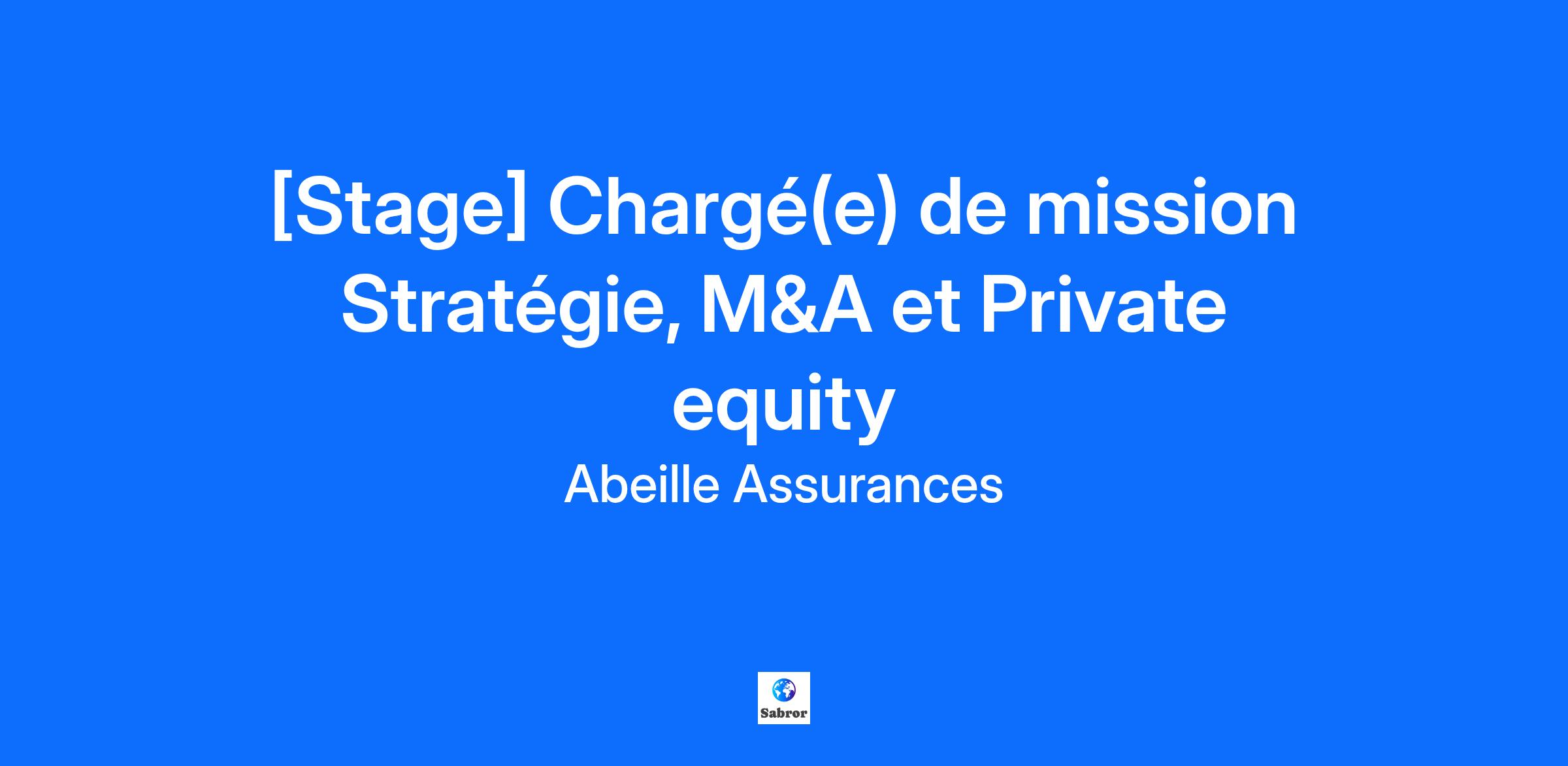 Rejoignez une entreprise à taille humaine et en croissance, au service de plus de 3 millions de clients, et qui se positionne sur tous les segments de l’assurance. Equipe et missions : Au sein d’une équipe de 3 personnes et rattaché au Directeur du Corporate Development, vous interviendrez de manière transverse sur l’ensemble du périmètre de l’équipe. A ce titre, vous : Participerez aux travaux et à la réflexion stratégique d’Abeille Assurances: analyses stratégiques ad-hoc (veille externe / diagnostics internes), suivi de la mise en œuvre du plan stratégique, production de supports à destination de la Direction ou des organes de gouvernance d’Abeille Assurances. Contribuerez à des opérations de fusions-acquisitions : assistance au screening de marché / à la prospection, exécution et suivi des transactions ; Participerez à des transactions de private equity, via notre fond de Corporate Venture Capital (Abeille Assurances Ventures) : assistance à la prospection et à la veille de marché, au suivi des participations en portefeuille, à l’instruction de nouvelles opportunités d’investissement et à la gestion de l’entité; Etes-vous la personne qui saura relever ce challenge ? Vous préparez un Bac+4/5 en école d’Ingénieurs / Ecole de Commerce ou équivalent universitaire, avec idéalement une spécialisation en finance ou stratégie. Vous possédez des compétences rédactionnelles, un bon esprit d’analyse et de synthèse. Vous avez une excellente maîtrise de PowerPoint ainsi qu'un très bon niveau d'anglais. Vous avez une bonne aisance relationnelle, un bel esprit d’équipe et une forte implication. Modalités pratiques : Lieu : Bois-Colombes (92) Durée : 6 mois Date de démarrage : Janvier 2026 (stage césure) ou Avril 2026 (stage PFE) Ce que nous avons à vous proposer ? Une gratification fixe, Un remboursement de transport flexible, encadré par un forfait mobilité durable, pour favoriser les mobilités douces. Un environnement de travail chaleureux et convivial 100 % en flex-office, facilement accessible en transport. Et après ? Chez Abeille Assurances, la mobilité interne est un vrai levier pour développer la carrière et les compétences de nos collaborateurs et collaboratrices, avec un objectif ambitieux de 50% des postes pourvus en interne. Nous favorisons les mobilités au sein du Groupe Aéma, de Macif, Aesio Mutuelle, Ofi Invest. Ensemble, nous formons le 5ème groupe d’assurance en France. Quels sont nos engagements ? L’assurance d’être soi-même : Chez Abeille Assurances nous sommes convaincus que la diversité est une richesse. Nous nous engageons à traiter les candidatures sans considération de sexe, d’âge, d’origine, de handicap ou de conviction. La direction et les collaborateurs s’engagent au quotidien sur les sujets de diversité et d’inclusion, en témoigne nos différentes communautés : LGBT+, Egalité professionnelle et Handicap. Et nous ? Compagnie majeure de l’assurance en France forte de ses 3000 collaborateurs, 1000 agents généraux d’assurance et de ses 180 ans d’expérience, Abeille Assurances dispose d’une gamme étendue de produits et services d’assurance, de protection, d’épargne et de retraite. Abeille Assurances est par ailleurs le partenaire historique de l’AFER, la première association d’épargnants en France (avec près de 754 000 adhérents). Plus d’informations sur abeille-assurances.fr Abeille Assurances est une entité d’Aéma Groupe, né en janvier 2021 du rapprochement entre Aésio Mutuelle, Macif, et Ofi Invest. Ce groupe imagine chaque jour les contours d’un monde plus juste et plus humain en plaçant la prévenance au cœur de la relation avec ses adhérents, sociétaires et entreprises clientes. Il couvre les besoins de protection de 11 millions de personnes et répond aux besoins assurantiels et serviciels de 1 français sur 6. Plus d’infos sur aemagroupe.fr Compagnie majeure de l’assurance en France forte de 4200 collaborateurs, 1000 agents généraux d’assurance et de 170 ans d’expérience, Abeille Assurances dispose d’une gamme étendue de produits et services d’assurance, de protection, d’épargne et de retraite à destination de plus de 3 millions de clients. Abeille Assurances propose ainsi ses produits à travers une approche multicanale adaptée aux besoins des clients : un réseau de distribution implanté sur l’ensemble du territoire français (1000 agents généraux, 1800 courtiers, 110 conseillers Albéa Patrimoine), une banque patrimoniale (UFF avec 25 agences en France et près de 1 000 collaborateurs) et une distribution via le canal Direct avec 185 conseillers téléphoniques (dont Eurofil). Abeille Assurances est par ailleurs le partenaire historique de l’AFER, la première association d’épargnants en France (avec près de 754 000 adhérents). Plus d’informations sur abeille-assurances.fr