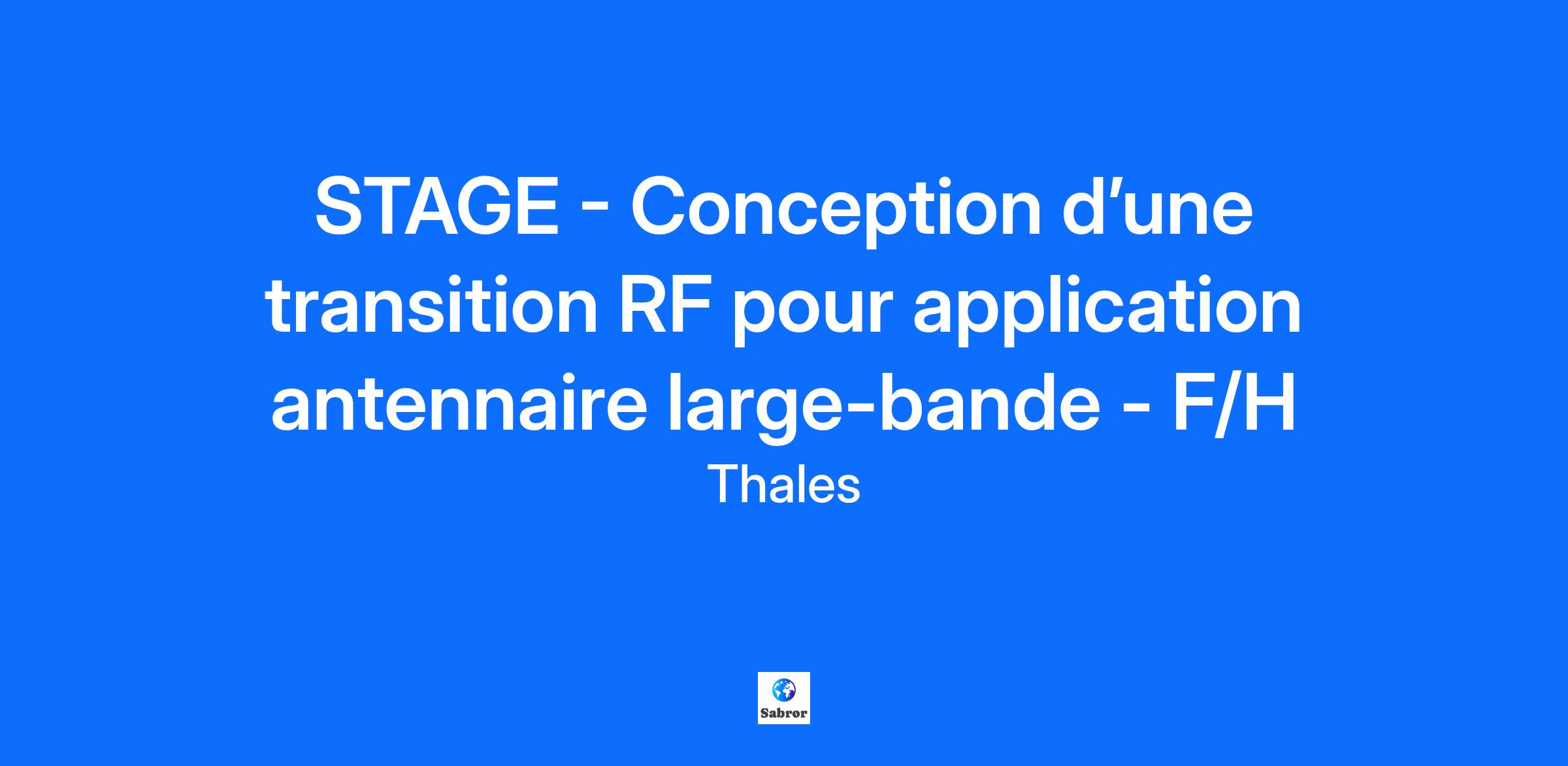 Lieu : Elancourt, France Construisons ensemble un avenir de confiance Thales est un leader mondial des hautes technologies spécialisé dans trois secteurs d’activité : Défense & Sécurité, Aéronautique & Spatial, et Cyber & Digital. Il développe des produits et solutions qui contribuent à un monde plus sûr, plus respectueux de l’environnement et plus inclusif. Le Groupe investit près de 4 milliards d’euros par an en Recherche & Développement, notamment dans des domaines clés de l’innovation tels que l’IA, la cybersécurité, le quantique, les technologies du cloud et la 6G. Thales compte près de 81 000 collaborateurs dans 68 pays. Nos engagements, vos avantages Notre savoir-faire technologique Notre attention portée à l’équilibre des collaborateurs Un environnement inclusif et bienveillant Un engagement sociétal et environnemental reconnu (Thales Solidarity, indice CAC 40 ESG…) Votre quotidien Au coeur de Saint Quentin en Yvelines, le site d'Elancourt est un des centres d’excellence technologique Thales les plus importants. La diversité et la technicité des systèmes et équipements mobilisent des savoir-faire dans plus de 80 métiers dans les solutions de défense, de sécurité de haute technologie et de services numériques. Vous intégrerez l'équipe "Antennes, AESA et IVV rayonnée" de l'entité Systèmes de Missions de Défense qui dispose d’un banc de caractérisation de matériaux. L’objectif de ce stage est de concevoir une transition RF d’un type spécifique pour alimenter une antenne 3D réalisée en fabrication additive (dont un design préliminaire est issu d’un stage précédent). Le stage permettra: - d’acquérir des connaissances solides sur les critères de performance des antennes - de prendre en main de façon approfondie un logiciel de conception full-wave (HFSS) - de se familiariser avec les enjeux de conception RF dans un contexte industriel En nous rejoignant, vous vous verrez confier les missions suivantes : - Etude de l’état de l’art et des travaux internes sur le sujet - Prise en main du logiciel de simulation full-wave HFSS - Conception de la transition selon un cahier des charges donné Il y a une possibilité de poursuite en thèse. Votre profil Vous suivez un cursus niveau BAC+5 en électronique et les télécommunications et vous recherchez un stage pour une durée de 6 mois ? Vous avez des compétences sur les logiciels de simulation antenne (HFSS ou CST) ? Vous faites preuve de curiosité et de rigueur, êtes force de proposition, et appréciez le travail en équipe ? La connaissance de logiciels de calcul technique (Matlab, Python) est un plus. Tous nos stages sont conventionnés et soumis à une gratification dont le montant est déterminé selon votre niveau d’études. Thales, entreprise Handi-Engagée, reconnait tous les talents. La diversité est notre meilleur atout. Postulez et rejoignez nous ! Interested in finding out more about Thales and why you should join us? Say HI* to new career opportunities.