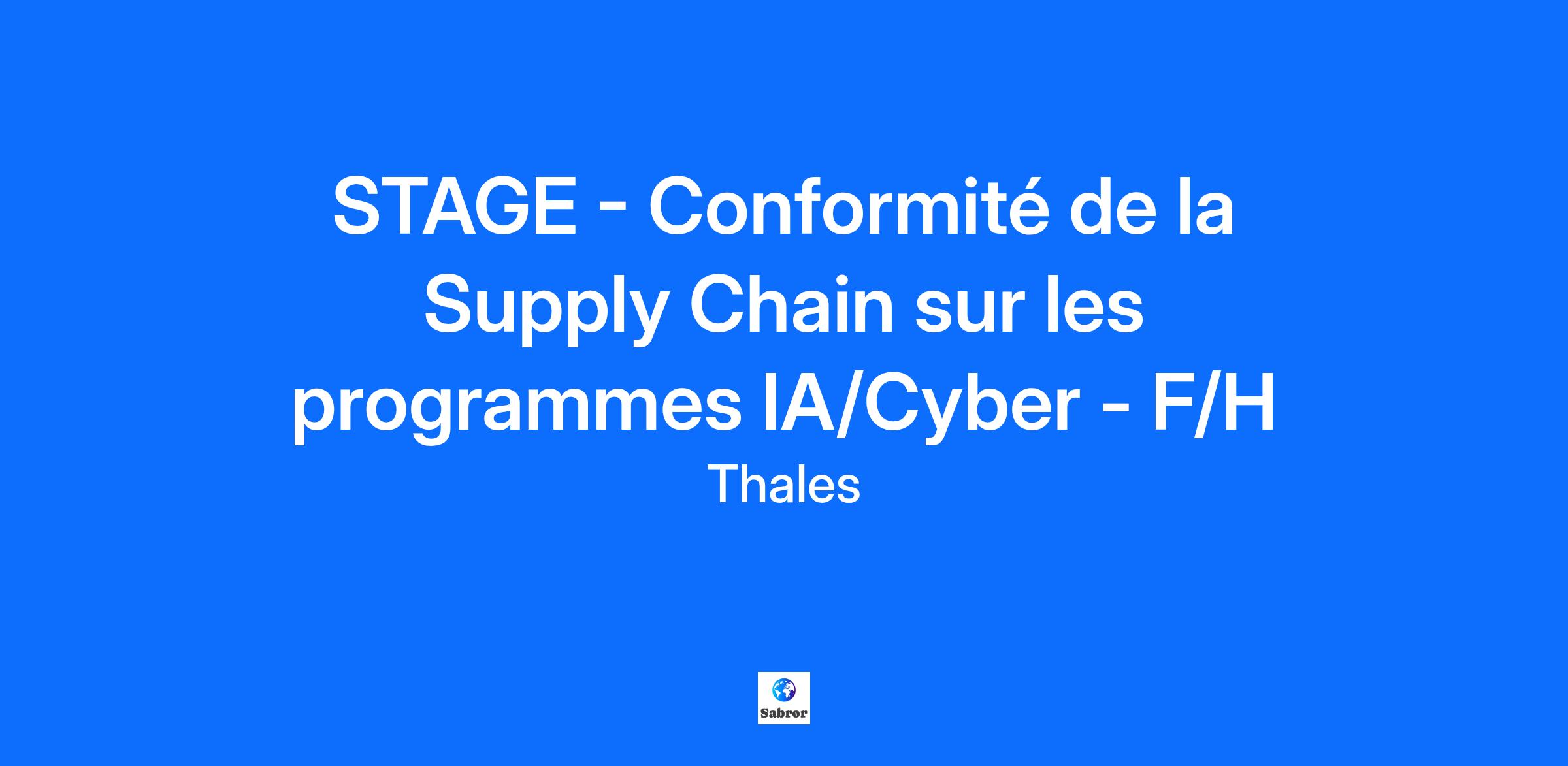 Lieu : Vélizy-Villacoublay, France Construisons ensemble un avenir de confiance Thales est un leader mondial des hautes technologies spécialisé dans trois secteurs d’activité : Défense & Sécurité, Aéronautique & Spatial, et Cyber & Digital. Il développe des produits et solutions qui contribuent à un monde plus sûr, plus respectueux de l’environnement et plus inclusif. Le Groupe investit près de 4 milliards d’euros par an en Recherche & Développement, notamment dans des domaines clés de l’innovation tels que l’IA, la cybersécurité, le quantique, les technologies du cloud et la 6G. Thales compte près de 81 000 collaborateurs dans 68 pays. Nos engagements, vos avantages Notre savoir-faire technologique Notre attention portée à l’équilibre des collaborateurs Un environnement inclusif et bienveillant Un engagement sociétal et environnemental reconnu (Thales Solidarity, indice CAC 40 ESG…) Votre quotidien Rejoignez-nous sur le campus Vélizy qui héberge une grande diversité d’activités Thales, aéro, défense, civile,... A l'ouest de Paris, ce site offre un environnement de travail équipé des dernières innovations technologiques et propose des services permettant de concilier vie professionnelle et personnelle. La Direction Achats désire renforcer sa politique de gestion des risques fournisseurs afin d'améliorer la résilience de sa Supply Chain. Dans ce cadre vous reporterez directement au Directeur Intégrité et Cybersécurité Achats et vous participerez au déploiement de notre programme Cybersécurité /IA auprès de notre Supply Chain. Vous aurez pour principales missions : La mise à jour du process d’évaluations de nos fournisseurs, basées sur l’ISO 27001 L’optimisation des processus en place et leur digitalisation L’animation et la sensibilisation du réseau de référents et de la population Achats sur les nouvelles réglementations et l’IA ACT La réalisation d’un guide de sensibilisation aux risques liés à l’utilisation de l’IA Ce stage sera l’opportunité pour vous de travailler en équipe au sein d’une entreprise innovante, de valoriser les acquis académiques en environnement industriel et développer de nouvelles compétences. Votre profil : Vous préparez une formation de niveau Bac +4/5 en droit avec une spécialisation IA/data et vous recherchez un stage de 6 mois ? Vous disposez de solides compétences en cybersécurité et en intelligence artificielle. Vous maîtrisez les méthodes de gestion de projets. Vous faites preuve de curiosité et possédez une bonne capacité d’analyse. Vous savez travailler en autonomie, avec rigueur et fiabilité. Vous avez une bonne maîtrise de l’anglais à l’oral. Une connaissance du domaine des achats et de la gestion des risques serait un atout. Tous nos stages sont conventionnés et soumis à une gratification dont le montant est déterminé selon votre niveau d’études. Thales, entreprise Handi-Engagée, reconnait tous les talents. La diversité est notre meilleur atout. Postulez et rejoignez nous ! Interested in a CAREER IN THE RAIL transportation sector? To see our jobs in the railway market, please visit our dedicated site here