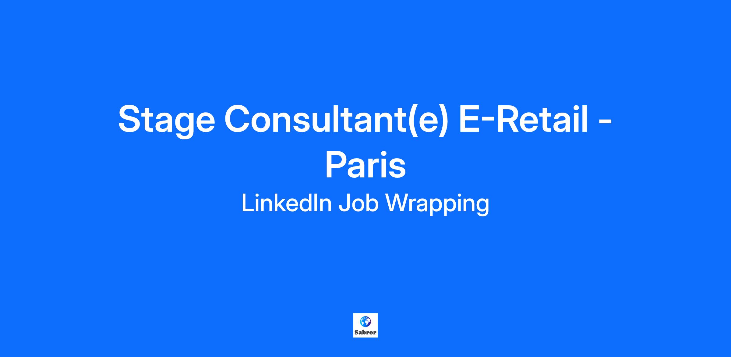Stage Consultant(e) E-Retail - Paris