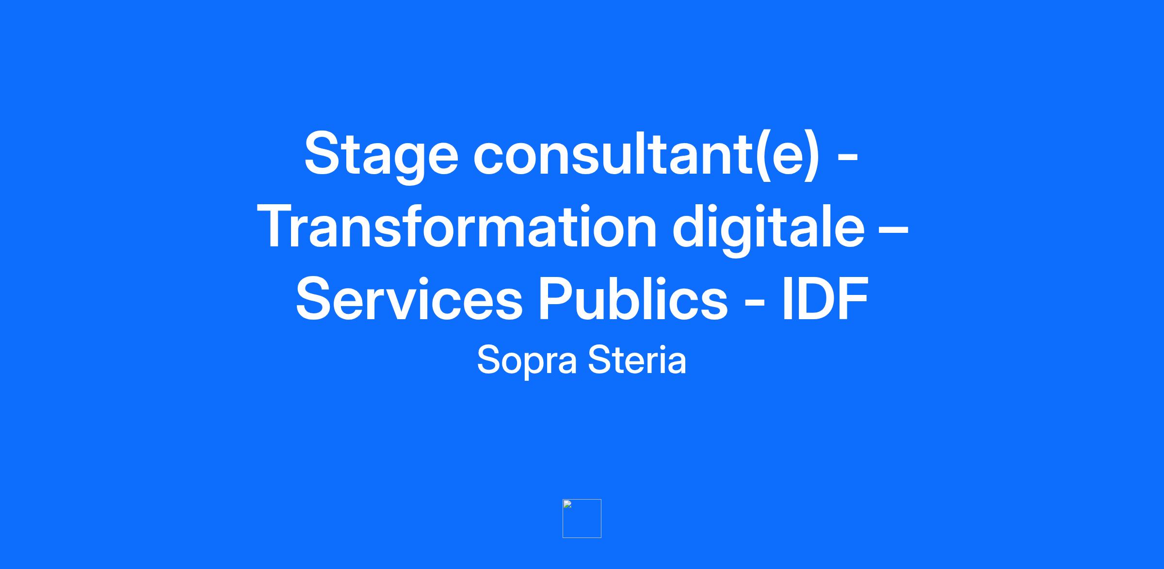 Description de l'entreprise Vous êtes curieux·se, motivé·e par les transformations humaines et technologiques ? Vous avez envie d’apprendre en continu au contact de nos équipes, d’être confronté·e à de nouveaux clients / contextes et à des problématiques variées ? Alors vous êtes au bon endroit. Chez Sopra Steria Next, vous rejoignez un cabinet de conseil qui conjugue expertise business et technologique, et qui figure parmi les meilleurs en transformation digitale*. Grâce à une connaissance fine des secteurs d’activité, à une expertise reconnue en transformation digitale et en conduite du changement, et à une approche résolument collaborative, nous accompagnons les grandes entreprises et organisations dans leurs enjeux de performance et de compétitivité. Sopra Steria Next, c’est avant tout une aventure entrepreneuriale, avec une dynamique de croissance, où vos idées comptent et vos compétences sont valorisées. Vous bénéficiez d’une formation sur nos méthodes et outils, et êtes accompagné·e par votre People Manager pour évoluer rapidement et devenir un·e consultant·e qui allie vision globale et maîtrise du terrain, reconnu·e pour son impact auprès de ses clients. Ce qui nous anime : avoir un impact concret sur l’expérience et l’engagement des collaborateurs au sein de grandes entreprises et d’organisations publiques dans des secteurs variés : aéronautique, ministères, transports, énergie, services financiers, ect. Notre approche : explorer en profondeur les sujets, monter en compétence en permanence, innover et rester à l’écoute des meilleures pratiques de notre spécialité afin de mieux servir les enjeux de nos clients. Nos forces : un collectif qui s’entraide pour trouver les meilleures solutions pour nos clients, une équipe solidaire et un esprit de confiance. (*) source Décideurs Magazine Classements 2024 et 2025 Incontournable Description du poste Votre futur environnement de travail : La practice Conseil Services Publics intervient au cœur des sujets d’actualité et des grands enjeux métier des ministères, des grands opérateurs du social, de l’emploi et de la santé ainsi que les acteurs territoriaux. Rejoindre notre équipe c’est intégrer un collectif constitué de plus d’une centaine de femmes et d’hommes animés par l’intérêt général et engagés dans la transformation numérique de la société de demain. Au quotidien, nous accompagnons les projets de transformation métiers et numériques, d’innovation et d’excellence opérationnelle. Votre rôle et vos missions : En immersion totale au sein de l'équipe, vous contribuez à des missions à forte valeur ajoutée telles que : Le cadrage et la mise en œuvre de projets de transformations métiers et digitales, L'optimisation des processus et de la fluidification des parcours usagers, La mise en place des nouvelles méthodes de travail (agilité, co-design, Lean-IT). Les apports du stage : Comprendre les apports d'une équipe de Consultants sur un processus de transformation métier de bout en bout ; Appréhender les outils de base du métier de consultant ; Être au coeur de l'innovation de grands organismes et des stratégies SI ; Découvrir l'environnement du conseil et les métiers du secteur public ; Appréhender la complexité des projets de transformation. Progresser et développer vos compétences Construire un avenir positif en mettant le digital au service de l'humain Evoluer dans une entreprise qui encourage l'audace, la curiosité et l'envie d'entreprendre Qualifications Et vous ? Vous êtes diplômé·e d’une école d’ingénieur ou de commerce, vous avez envie d’apprendre, de relever des défis concrets et de grandir dans une équipe dynamique. Vous vous projetez dans notre projet ? Envie d’y contribuer et d’y trouver du sens ? Alors n’hésitez plus, rejoignez-nous ! Informations complémentaires A propos de Sopra Steria Next – Driving meaningful impact * Avec plus de 4 000 consultants dans 30 bureaux en Europe, Sopra Steria Next, cabinet de conseil en management et transformation digitale du groupe Sopra Steria, œuvre chaque jour pour concevoir et déployer les projets et les transformations qui façonnent l’avenir. Dans un monde en pleine révolution — technologique, écologique —, Sopra Steria Next allie business et technologie pour créer de la valeur au-delà du simple aspect économique, en donnant du sens aux données, en innovant grâce à l'intelligence artificielle et en engageant toutes les parties prenantes à chaque étape. Grâce à cette vision et à son expertise, Sopra Steria Next accompagne ses clients dans la priorisation de leurs actions, pour un résultat concret et durable, pour eux, leurs employés, les citoyens et la Société dans son ensemble. Il s'agit de donner une impulsion tangible à ce qui compte vraiment, ce qui est essentiel. * Impulsons l’essentiel, pour un impact positif. Employeur inclusif et engagé, notre société œuvre chaque jour pour lutter contre toute forme de discrimination et favoriser un environnement de travail respectueux. C’est pourquoi, attachés à la mixité et à la diversité, nous encourageons toutes les candidatures et tous les profils. Employeur inclusif et engagé, notre société œuvre chaque jour pour lutter contre toute forme de discrimination et favoriser un environnement de travail respectueux. C’est pourquoi, attachés à la mixité et à la diversité, nous encourageons toutes les candidatures et tous les profils. https://www.soprasteria.fr/nous-connaitre/nos-engagements Employeur inclusif et engagé, notre société œuvre chaque jour pour lutter contre toute forme de discrimination et favoriser un environnement de travail respectueux. C’est pourquoi, attachés à la mixité et à la diversité, nous encourageons toutes les candidatures et tous les profils. https://www.soprasteria.fr/nous-connaitre/nos-engagements
