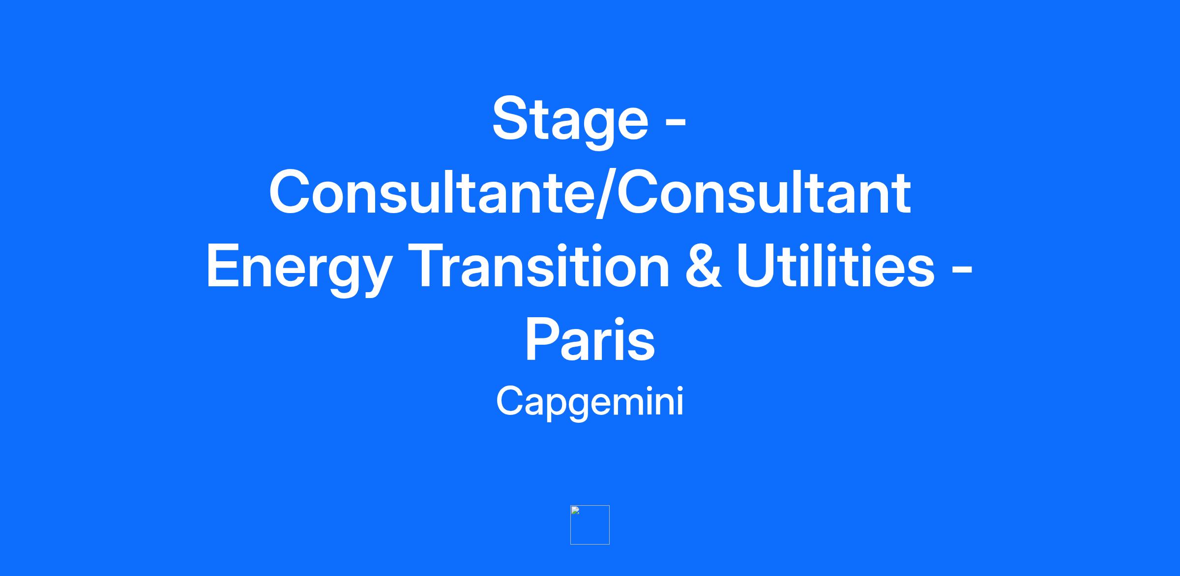 Chez Capgemini Invent, nous croyons que l'innovation est le moteur du changement. En tant que consultants en transformation digitale, nous combinons nos capacités stratégiques, créatives et scientifiques, en collaborant étroitement avec nos clients pour leur fournir des solutions de pointes. Rejoignez-nous pour conduire une transformation adaptée aux défis d'aujourd'hui et de demain. Stage à pourvoir dès janvier 2026 Vos missions Au sein de l'entité Energy Transition & Utilities, les activités s’inscrivent dans un contexte riche en innovations depuis la transition énergétique et environnementale, l’amélioration de la performance jusqu'à l'émergence de nouveaux business models ou encore la réflexion autour de services digitaux. Nos missions appellent à la fois le recul, la vision et l’apport opérationnel d'experts du domaine. En tant que consultant junior stagiaire en transformation et innovation, vous interviendrez auprès de clients du secteur de l'énergie, de fonds d'investissement ou de consommateurs d'énergie. Vous mènerez à bien des missions de conseil stratégique, de conseil en innovation et technologies, de diversification et d’appui au business development et aux projets au sein des directions métiers de nos clients, telles que : Redéfinir l’operating model de la branche renouvelable d’un acteur majeur de l’énergie Sensibiliser et déployer sur le terrain la nouvelle stratégie groupe d’un grand acteur de l’énergie Accompagner la transformation digitale des opérations Appréhender toutes les étapes de mise en œuvre de nos missions : constitution d’offre, cadrage et stratégie, modèles d’affaires, transformation d’organisation, gestion de projet, conduite du changement Maîtriser les dernières technologies (IoT, IA, data…) et leurs cas d’usage Votre profil Vous êtes en 5ème année d’école de commerce, d’ingénieur ou d’université d'un cursus orienté énergie, Vous êtes à la recherche d'un stage de fin d'études, Vous avez une appétence marquée pour les sujets liés aux transformations des entreprises, à l’innovation digitale et au secteur de l'énergie, Pratiquant couramment l’anglais et le français, Curiosité intellectuelle et grande capacité d’adaptation, Vous souhaitez intégrer un environnement professionnel motivant où vous valoriserez votre esprit d’équipe, vos capacités d’analyse et de synthèse au service de nos clients. 3 raisons de nous rejoindre Qualité de vie au travail : accord de télétravail en France et à l’international, accord sur l’égalité professionnelle, la parentalité, l’équilibre des temps et la mobilité durable. Apprentissage en continu : certifications et formations en libre accès, accompagnement sur mesure avec votre career manager, parcours d’intégration sur plusieurs mois. Avantages groupe & CSE : plan actionnariat, tarifs préférentiels, remboursement partiel vacances, remboursement de votre abonnement sportif ou culturel. Nos engagements et priorités Le groupe Capgemini encourage une culture inclusive dans un cadre multiculturel et handi-accueillant. En nous rejoignant, vous intégrez un collectif qui valorise la diversité, développe le potentiel de ses talents, s’engage dans des initiatives solidaires avec ses partenaires, et se mobilise pour réduire son impact environnemental sur tous ses sites et auprès de ses clients.Capgemini Invent est la marque d’innovation digitale, de design et de transformation du groupe Capgemini. Etablie dans plus de 30 studios et plus de 60 dans le monde, elle compte une équipe de plus de 12 500 experts en stratégie, data scientists, concepteurs de produits et d’expériences ou encore experts en marques et en technologie qui développent de nouveaux services digitaux, produits, expériences et modèles d’affaire pour une croissance durable. Get The Future You Want* | www.capgemini.com/fr *Capgemini, le futur que vous voulez