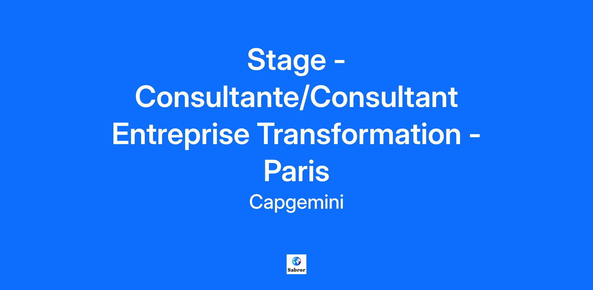 Chez Capgemini Invent, nous croyons que l'innovation est le moteur du changement. En tant que consultants en transformation digitale, nous combinons nos capacités stratégiques, créatives et scientifiques, en collaborant étroitement avec nos clients pour leur fournir des solutions de pointes. Rejoignez-nous pour conduire une transformation adaptée aux défis d'aujourd'hui et de demain. Stage à pourvoir dès janvier 2026 Vos missions Entreprise Transformation accompagne les directions d'entreprise dans l'optimisation de la performance de l'entreprise par l'amélioration des pratiques et processus IT, en intégrant des enjeux humains dans son modèle opérationnel. Les capabilities présentes : Business Technology: Optimisation de la performance de l'entreprise, amélioration des pratiques et processus au sein de la DSI. Corporate Expérience : Accompagnement des directions d'entreprise dans les fonctions achats, finance et opérations afin de garantir une excellence opérationnelle. Workforce & Organisation : Transformation RH et organisationnelle, conduite du changement. En tant que consultant(e) junior, vous serez amené(e) à accompagner les équipes sur des problématiques de stratégie, d’organisation et d’efficacité opérationnelle. Au sein d'une équipe projet et au contact du client : Vous serez en charge de collecter et d’analyser des données, via la conduite d’entretiens ou l’animation d’ateliers de co-construction, Vous établirez des présentations pour nos clients et contribuerez à la formalisation des recommandations stratégiques, Vous aurez également la possibilité de vous investir dans la vie interne du cabinet (coreteam, formations...). Votre profil Vous êtes en 5ème année d’école de commerce, d’ingénieur ou d’université, Vous êtes à la recherche d'un stage de fin d'études, Vous avez une appétence marquée pour les sujets liés aux transformations des entreprises et à l’innovation digitale, Pratiquant couramment l’anglais et le français, Curiosité intellectuelle et grande capacité d’adaptation, Vous souhaitez intégrer un environnement professionnel motivant où vous valoriserez votre esprit d’équipe, vos capacités d’analyse et de synthèse au service de nos clients. 3 raisons de nous rejoindre Qualité de vie au travail : accord de télétravail en France et à l’international, accord sur l’égalité professionnelle, la parentalité, l’équilibre des temps et la mobilité durable. Apprentissage en continu : certifications et formations en libre accès, accompagnement sur mesure avec votre career manager, parcours d’intégration sur plusieurs mois. Avantages groupe & CSE : plan actionnariat, tarifs préférentiels, remboursement partiel vacances, remboursement de votre abonnement sportif ou culturel. Nos engagements et priorités Le groupe Capgemini encourage une culture inclusive dans un cadre multiculturel et handi-accueillant. En nous rejoignant, vous intégrez un collectif qui valorise la diversité, développe le potentiel de ses talents, s’engage dans des initiatives solidaires avec ses partenaires, et se mobilise pour réduire son impact environnemental sur tous ses sites et auprès de ses clients. Capgemini Invent est la marque d’innovation digitale, de design et de transformation du groupe Capgemini. Etablie dans plus de 30 studios et plus de 60 dans le monde, elle compte une équipe de plus de 12 500 experts en stratégie, data scientists, concepteurs de produits et d’expériences ou encore experts en marques et en technologie qui développent de nouveaux services digitaux, produits, expériences et modèles d’affaire pour une croissance durable. Get The Future You Want* | www.capgemini.com/fr *Capgemini, le futur que vous voulez